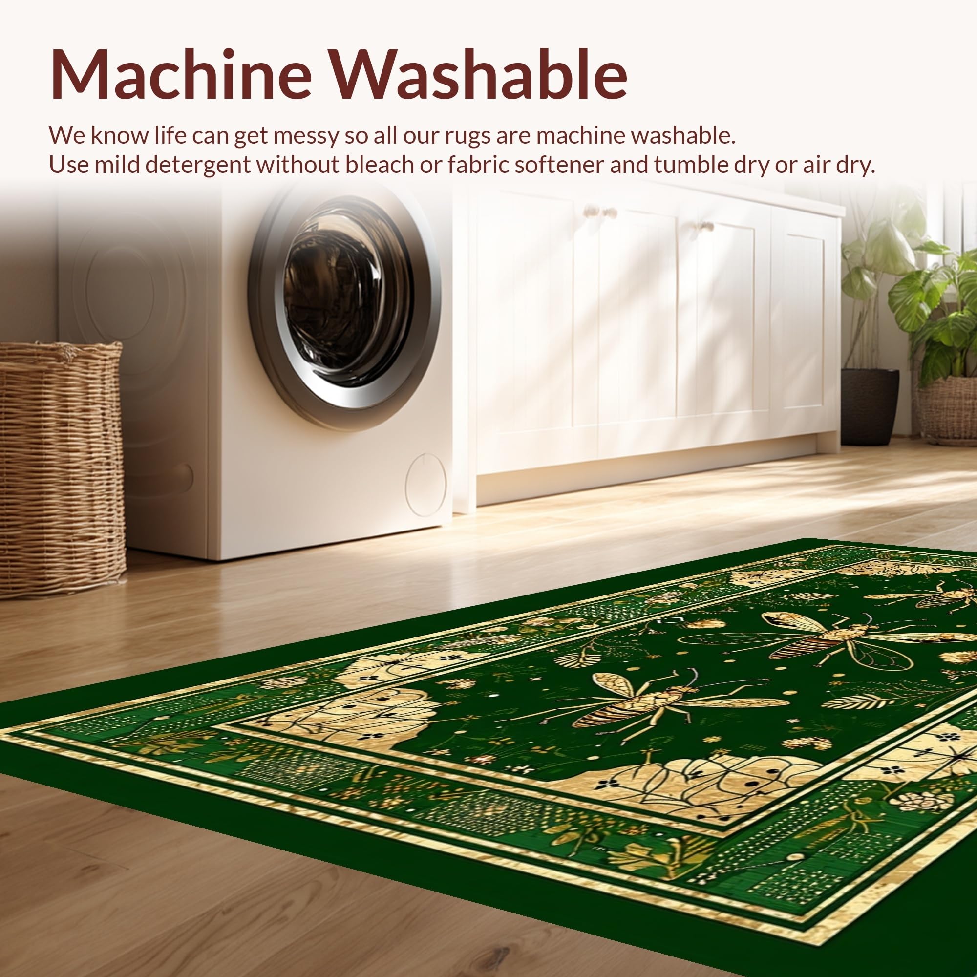 - Machine Washable: Our rugs can be easily thrown in the wash machine.