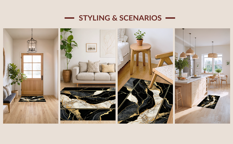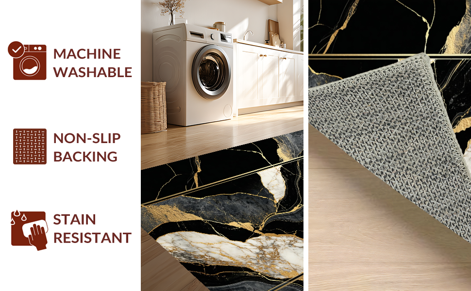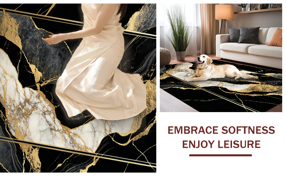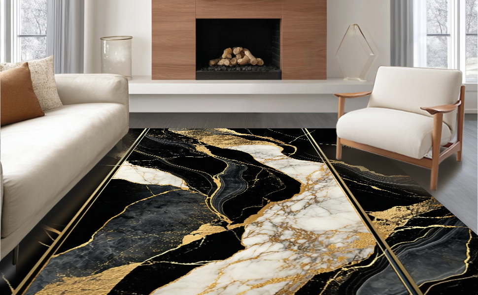Ultra Soft Area Rug, Non Slip, Stain Resistant, Washable Area Rugs for Living Room, Bedroom, Striking Metallic Marble Impression(Black) Overview: