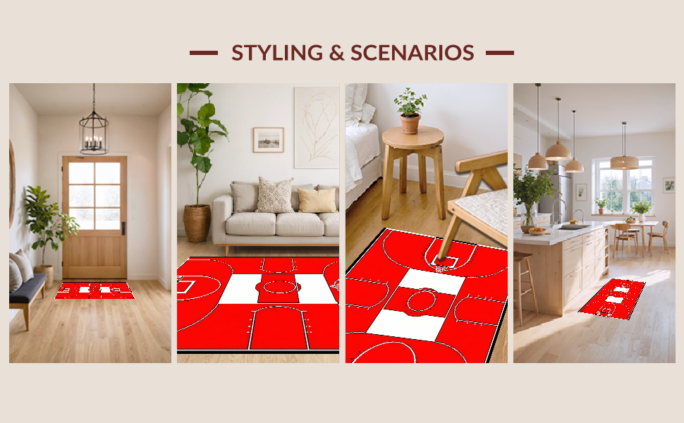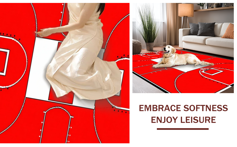 Ultra Soft Area Rug, Non Slip, Stain Resistant, Washable Area Rugs for Living Room, Bedroom, Striking Modern Sport Motif(Red) Overview: