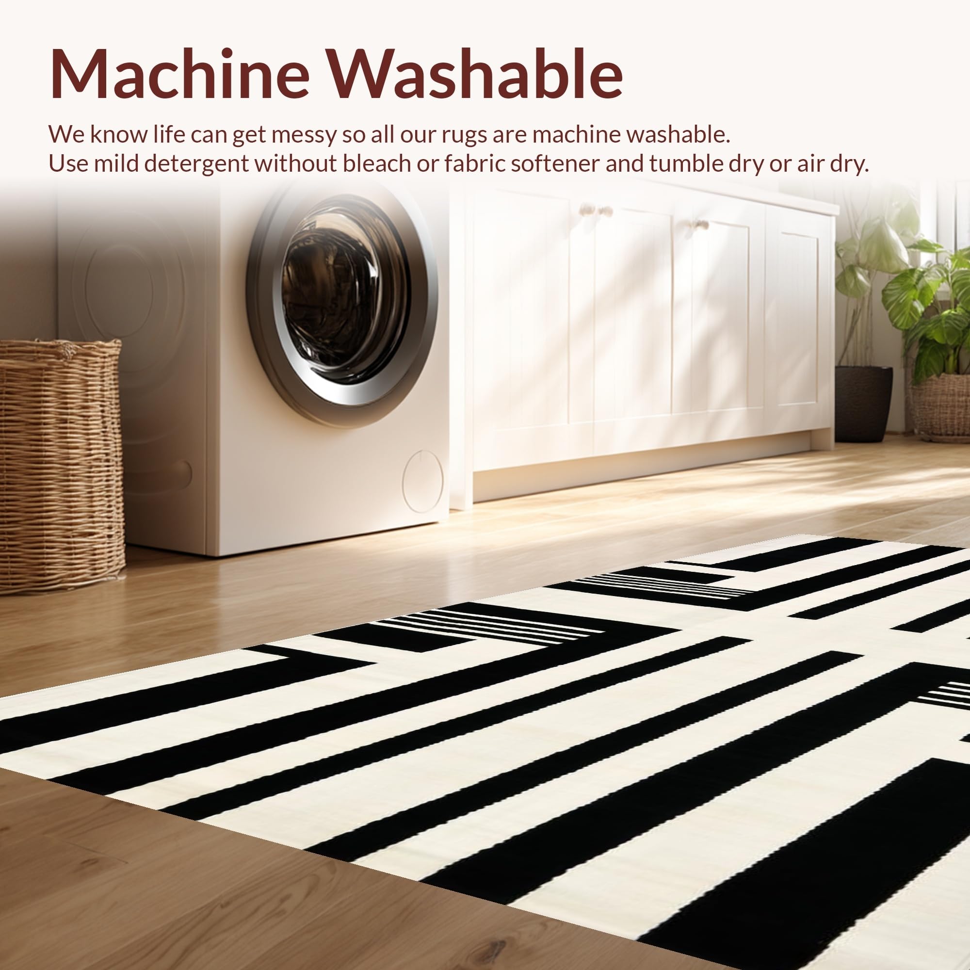 - Machine Washable: Our rugs can be easily thrown in the wash machine.