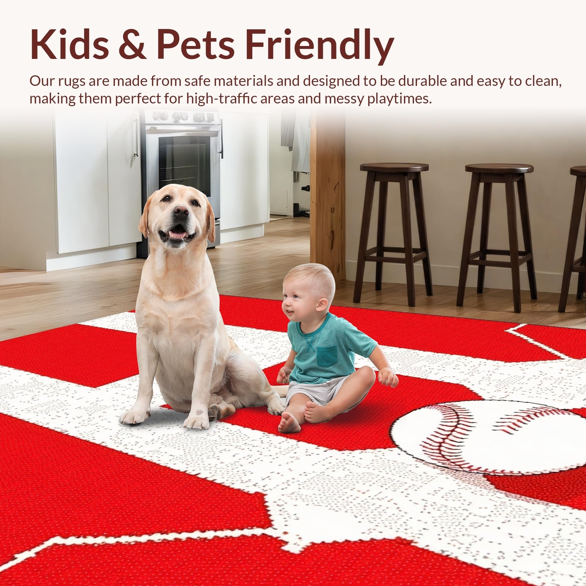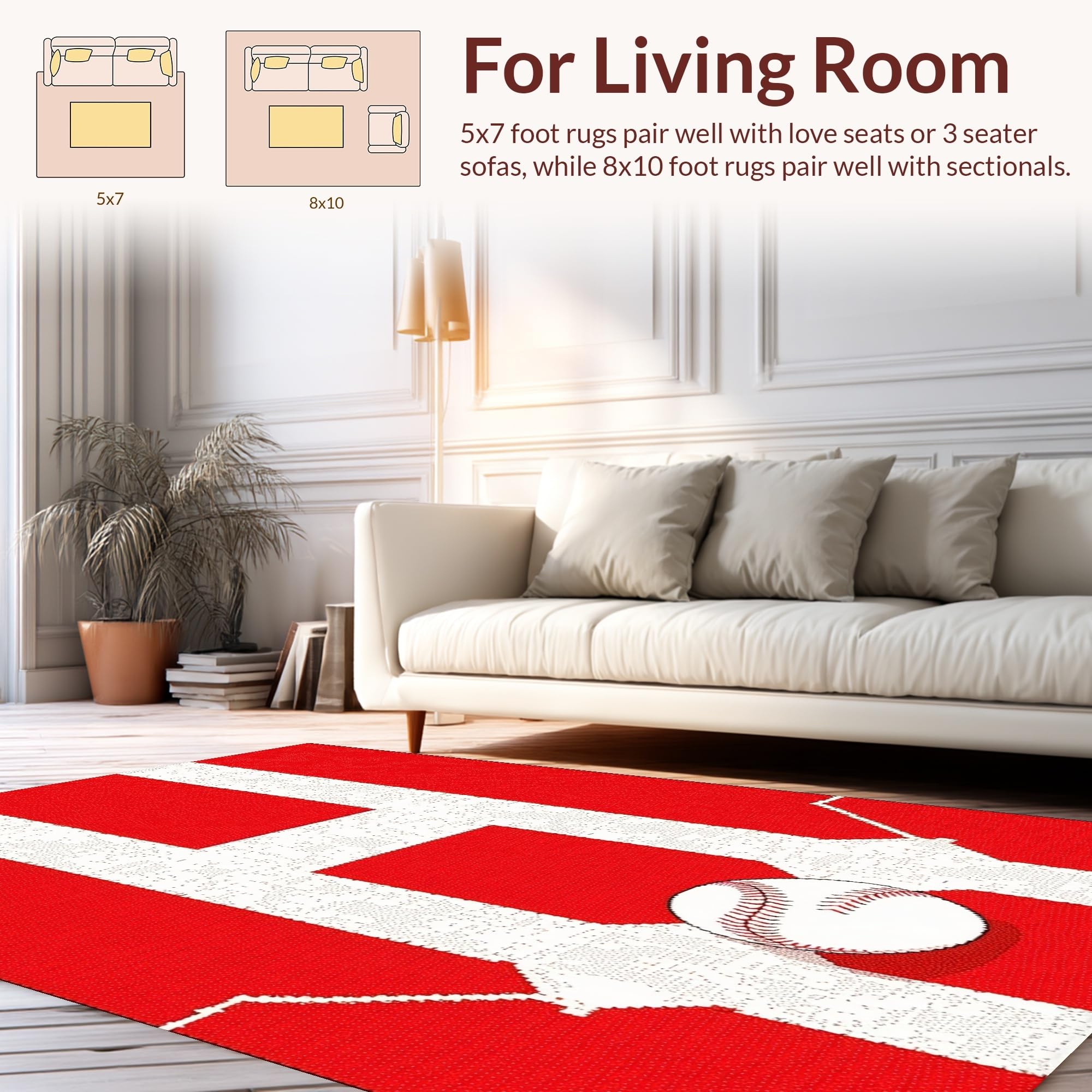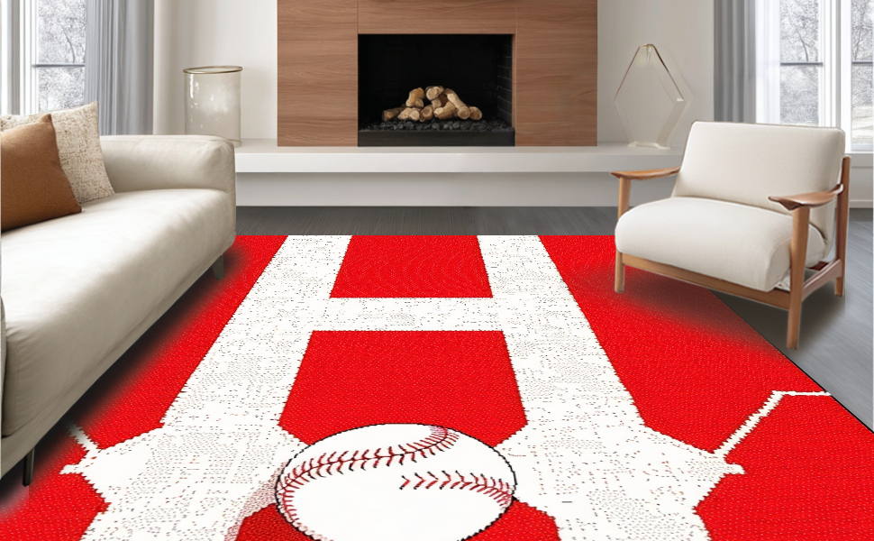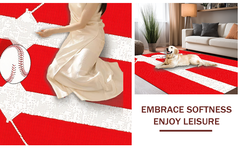 Ultra Soft Area Rug, Non Slip, Stain Resistant, Washable Area Rugs for Living Room, Bedroom, Striking Red and White Contrast(Red) Overview: