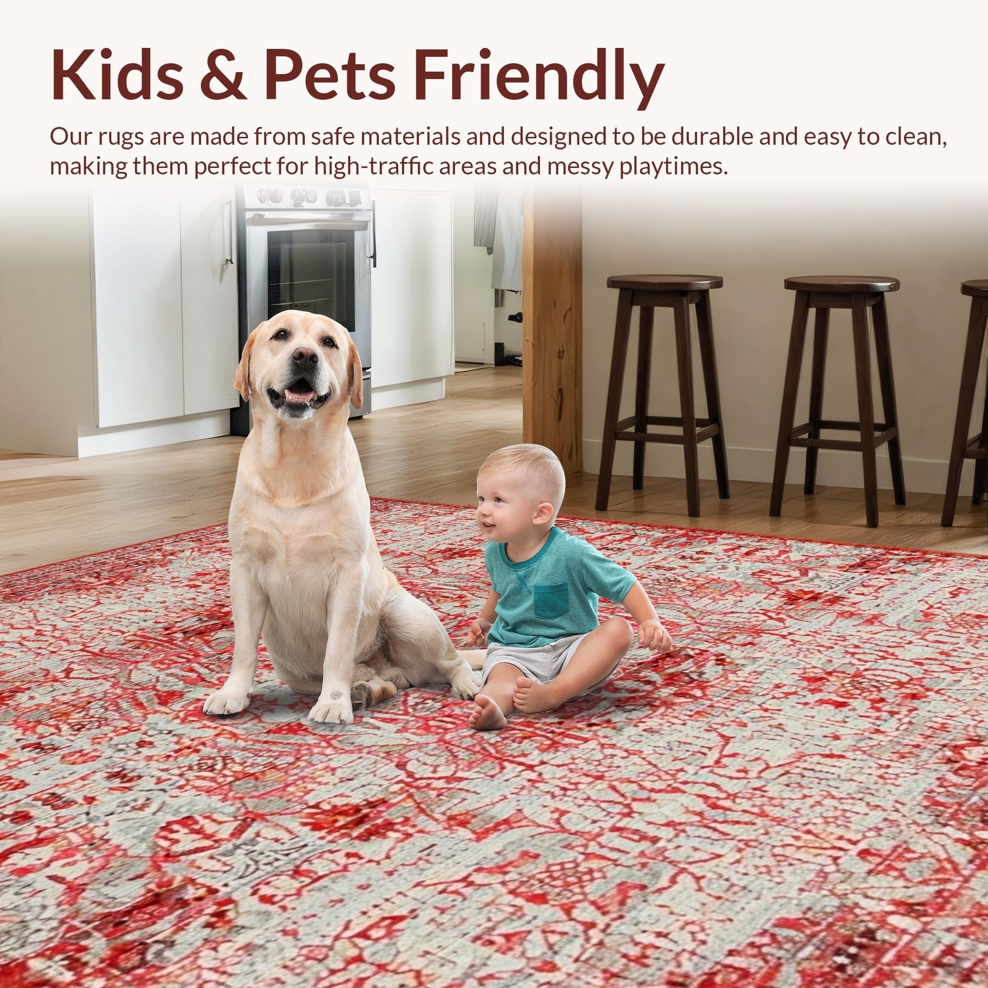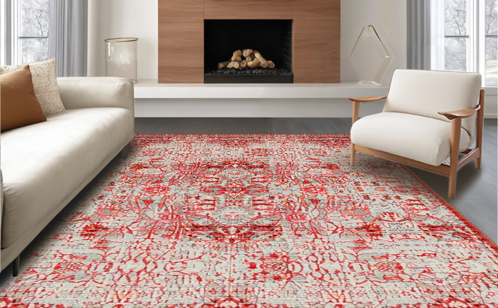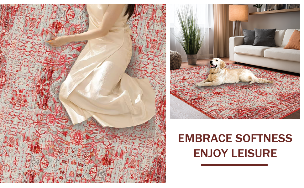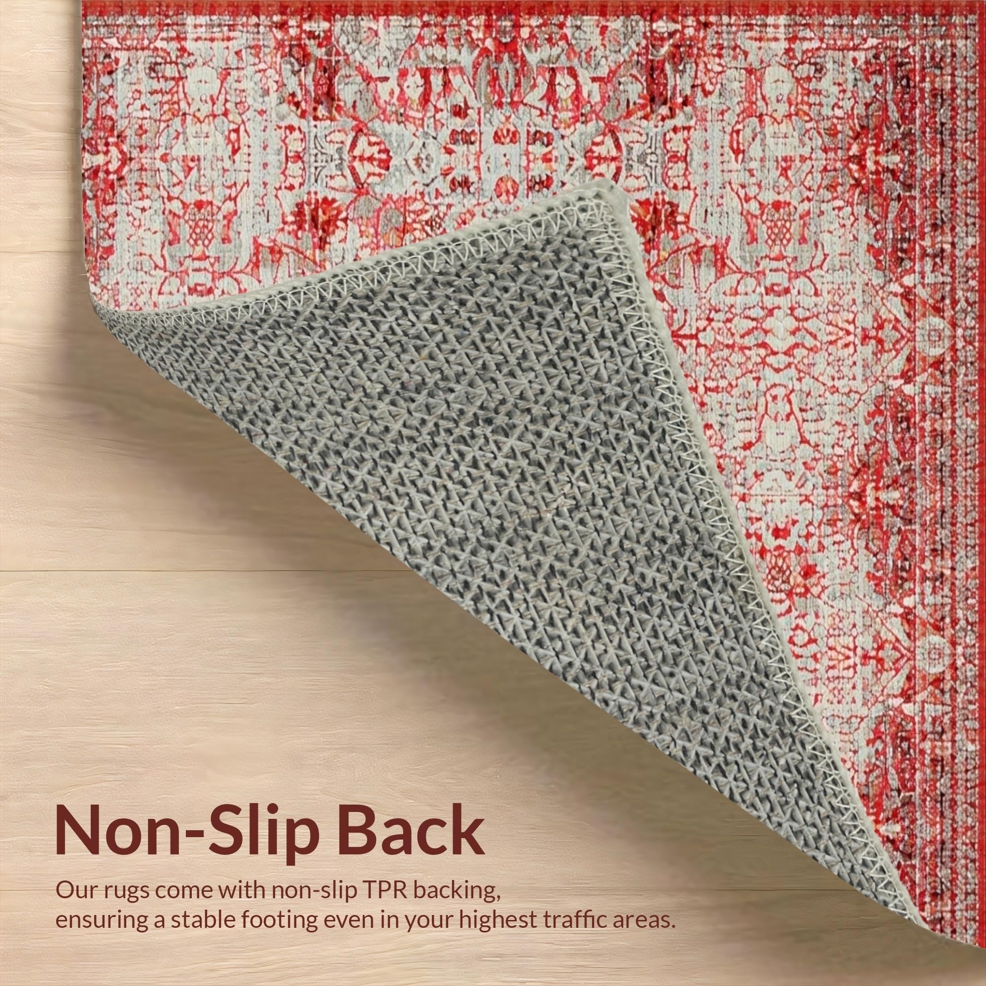 Ultra Soft Area Rug, Non Slip, Stain Resistant, Washable Area Rugs for Living Room, Bedroom, Striking Round Geometric Arrangement(Red) Overview:
