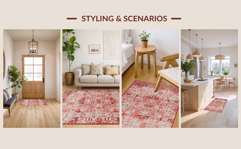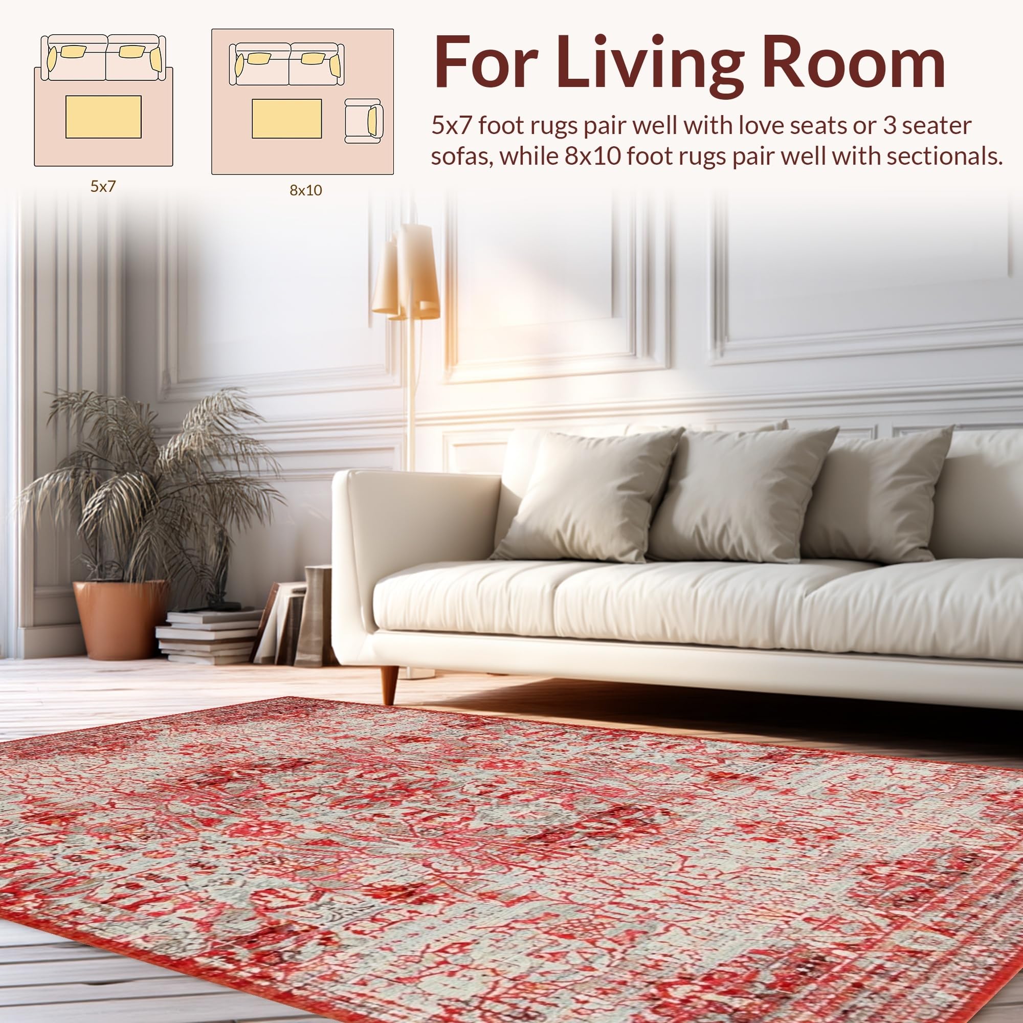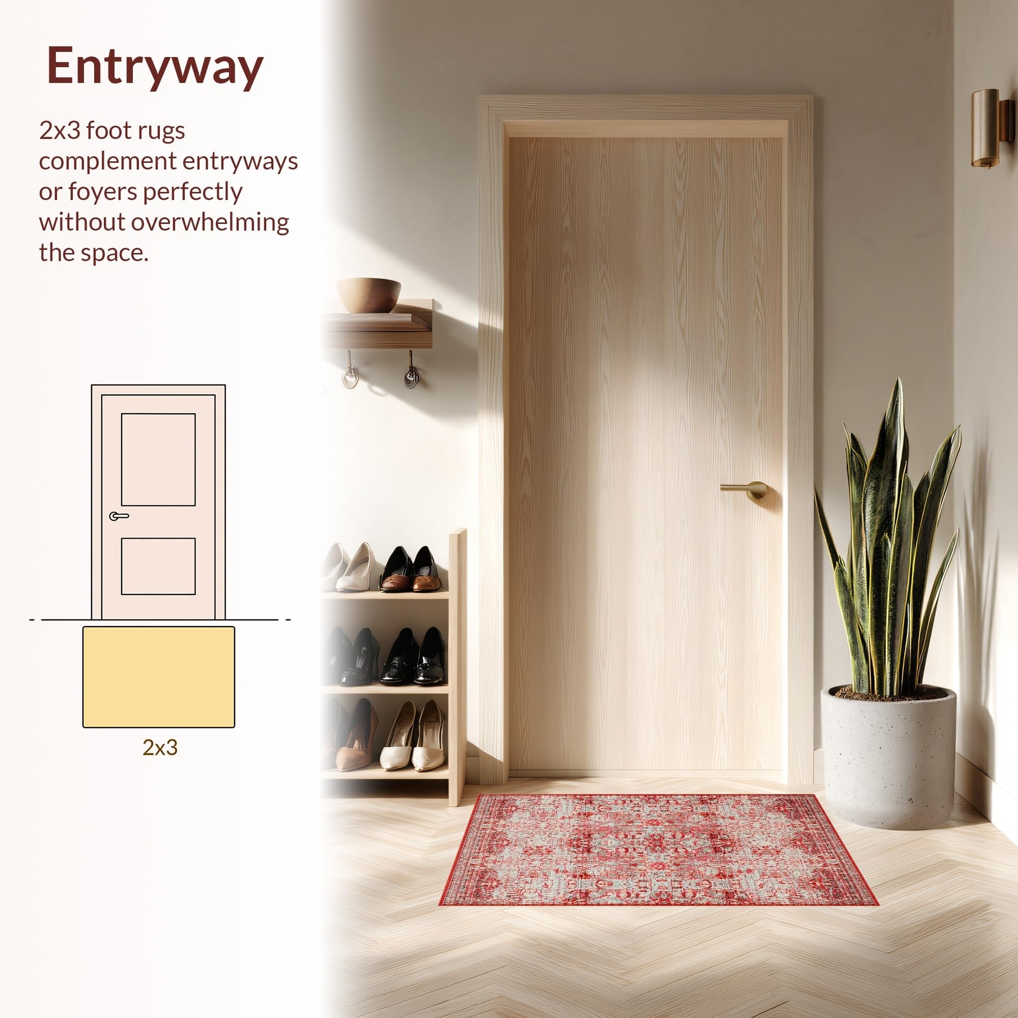 Ultra Soft Area Rug, Non Slip, Stain Resistant, Washable Area Rugs for Living Room, Bedroom, Striking Round Geometric Arrangement(Red) Overview: