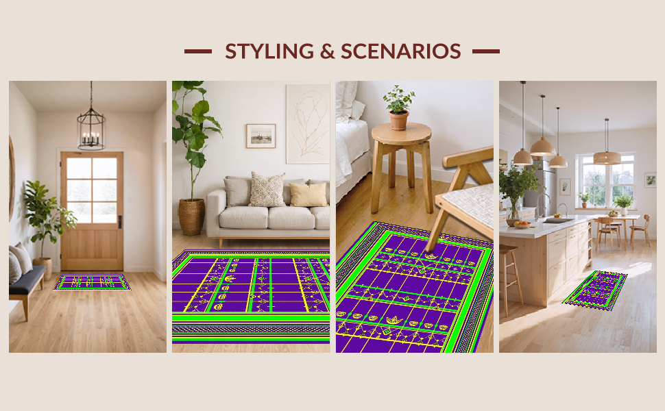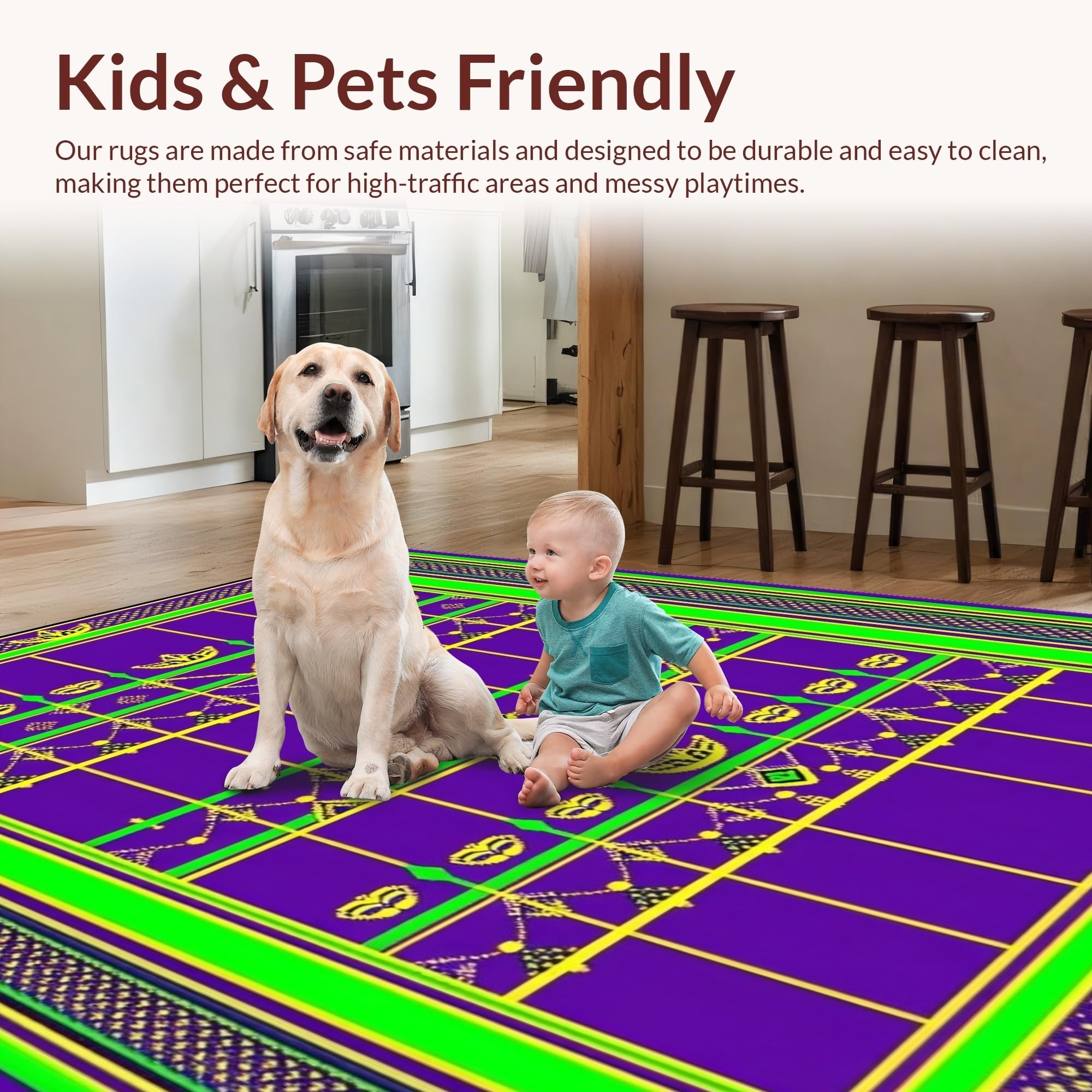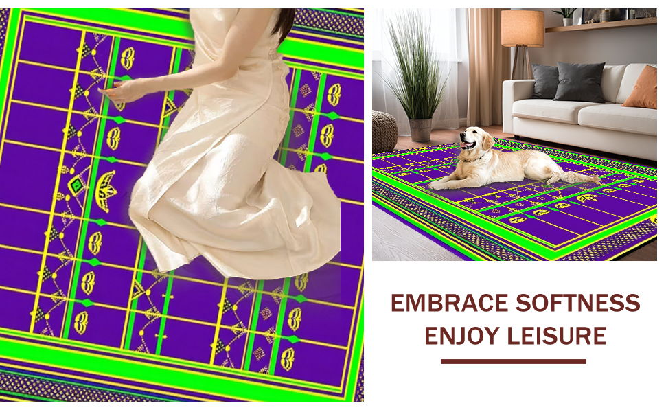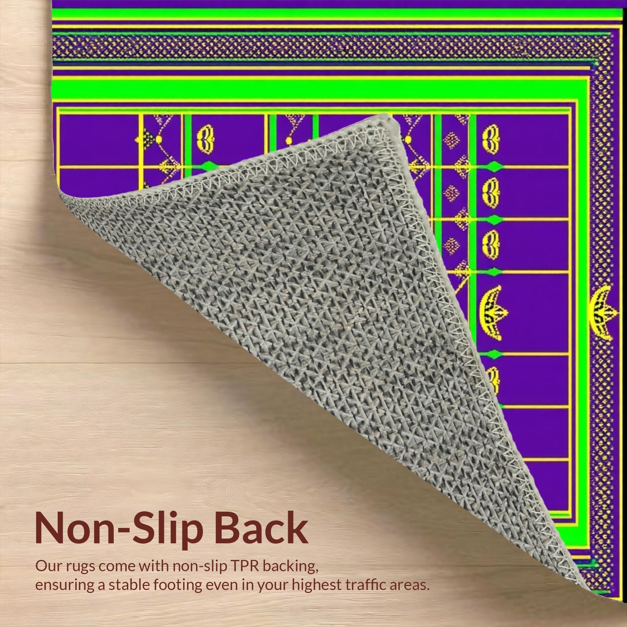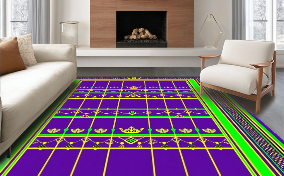Ultra Soft Area Rug, Non Slip, Stain Resistant, Washable Area Rugs for Living Room, Bedroom, Striking Striped Carnival Entrance(Purple) Overview: