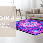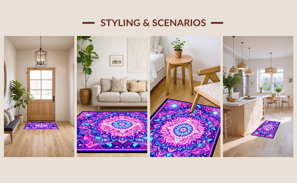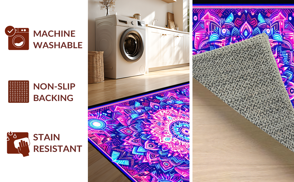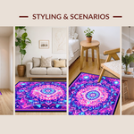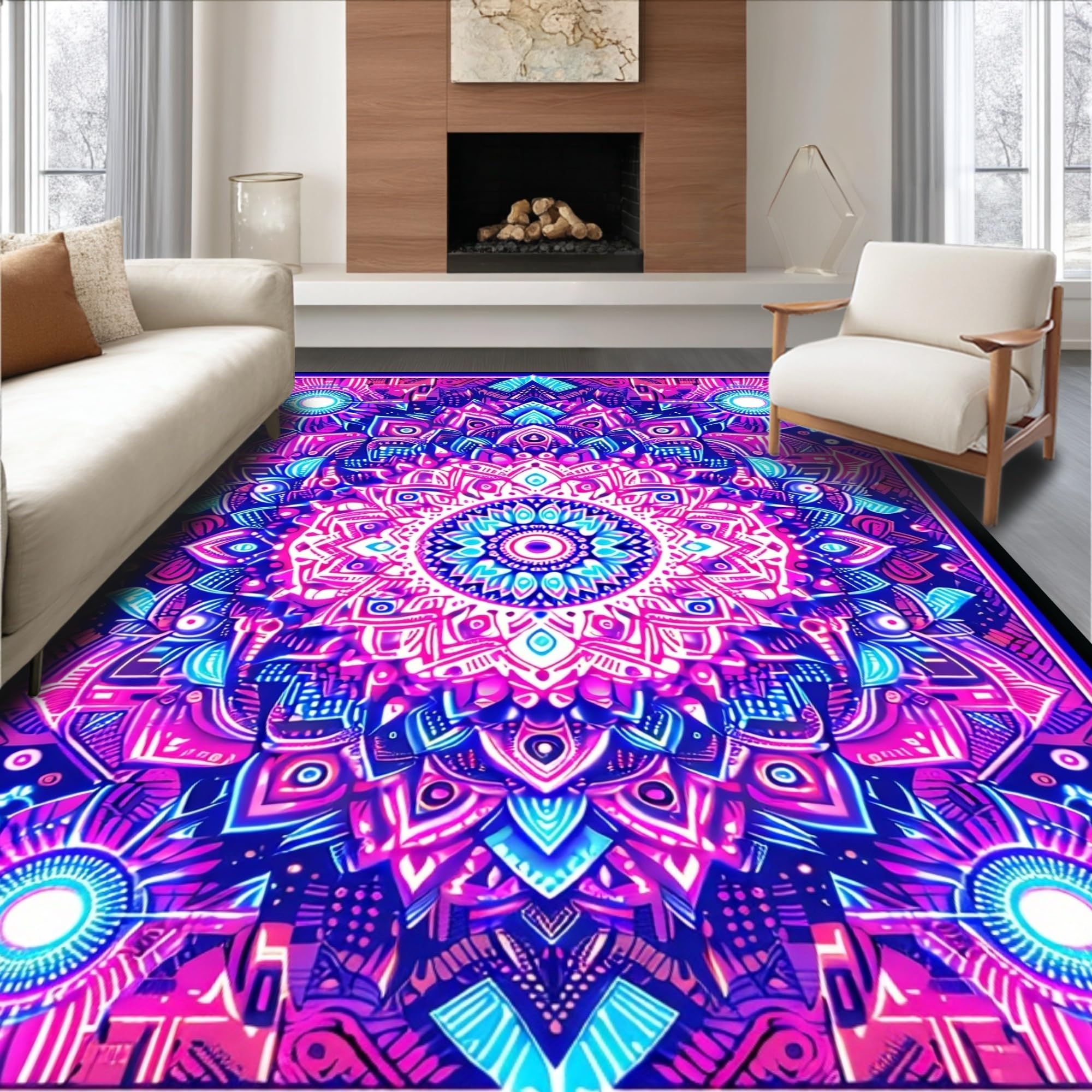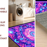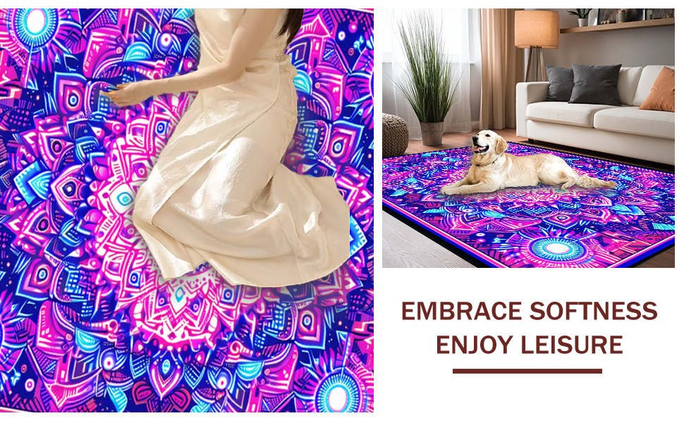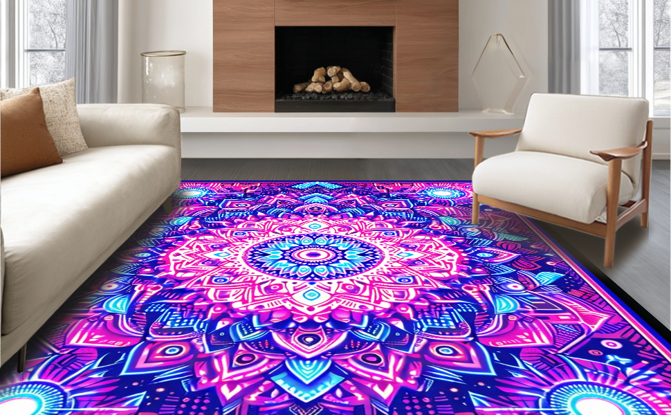 Ultra Soft Area Rug, Non Slip, Stain Resistant, Washable Area Rugs for Living Room, Bedroom, Striking UV Reactive Circular Art(Purple) Overview: