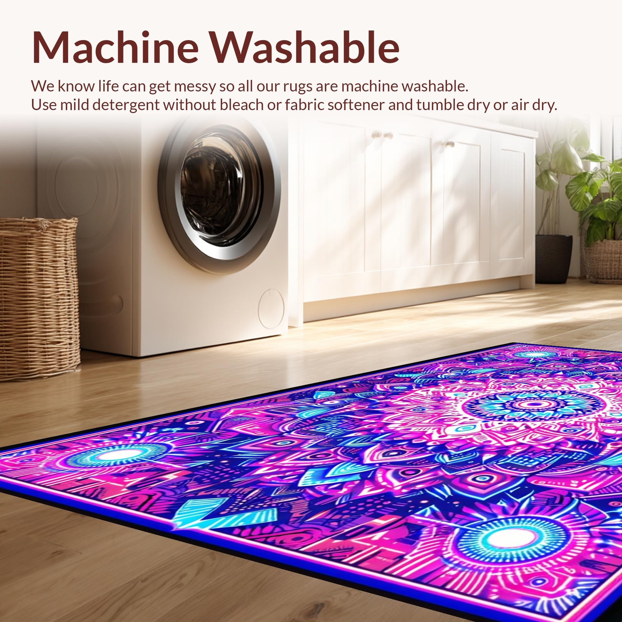 - Machine Washable: Our rugs can be easily thrown in the wash machine.