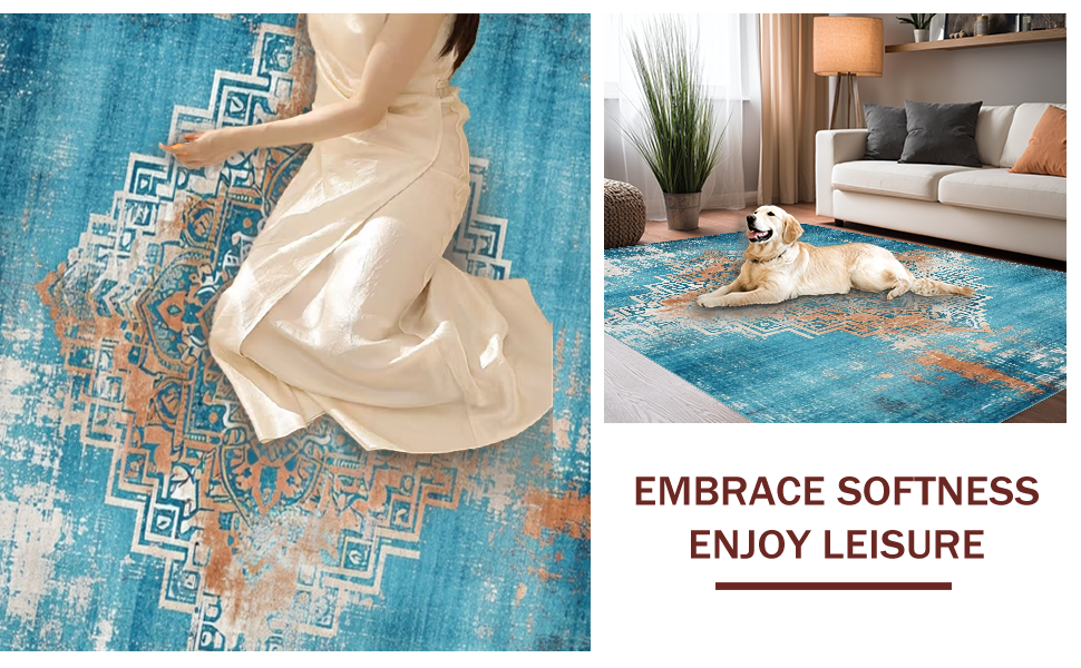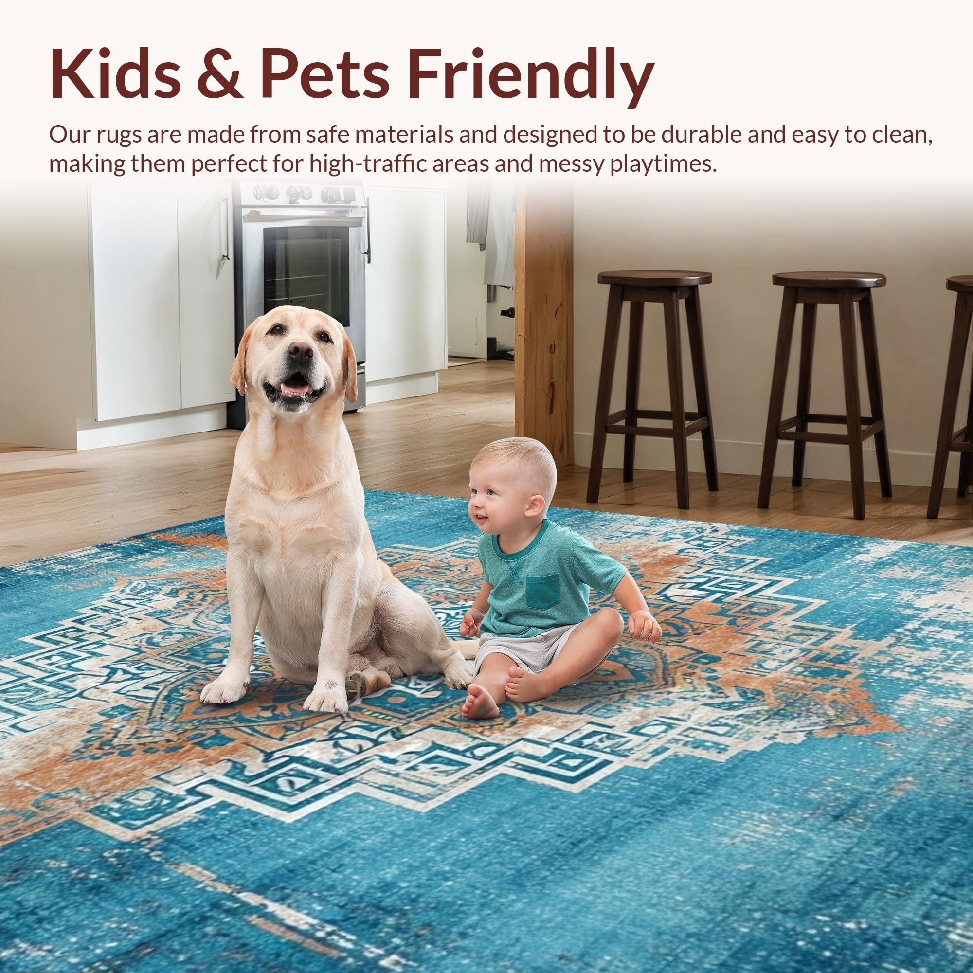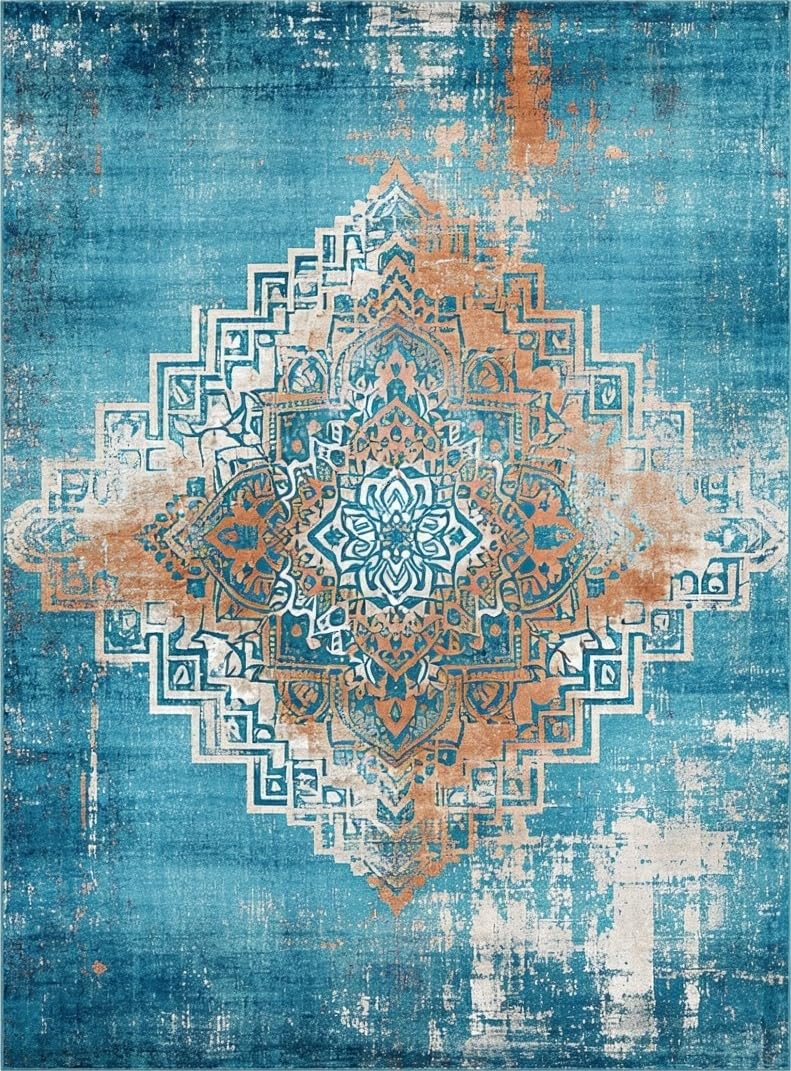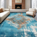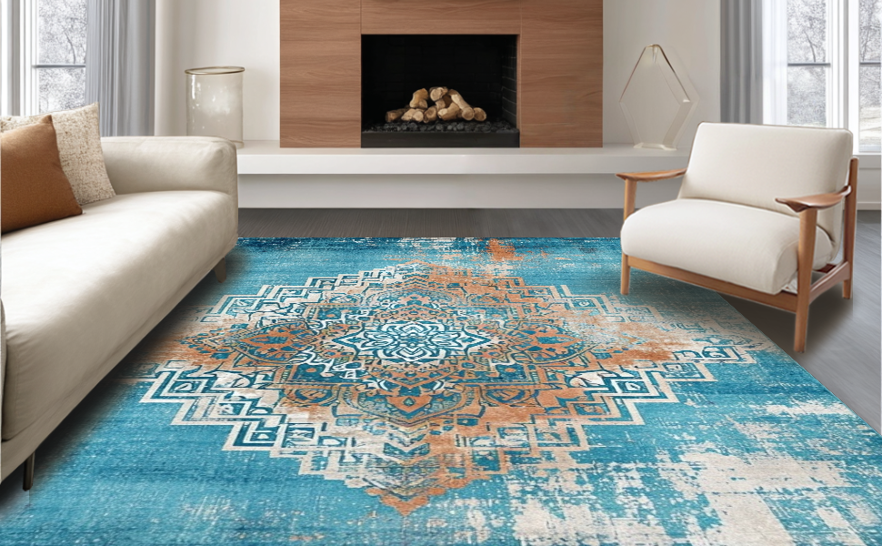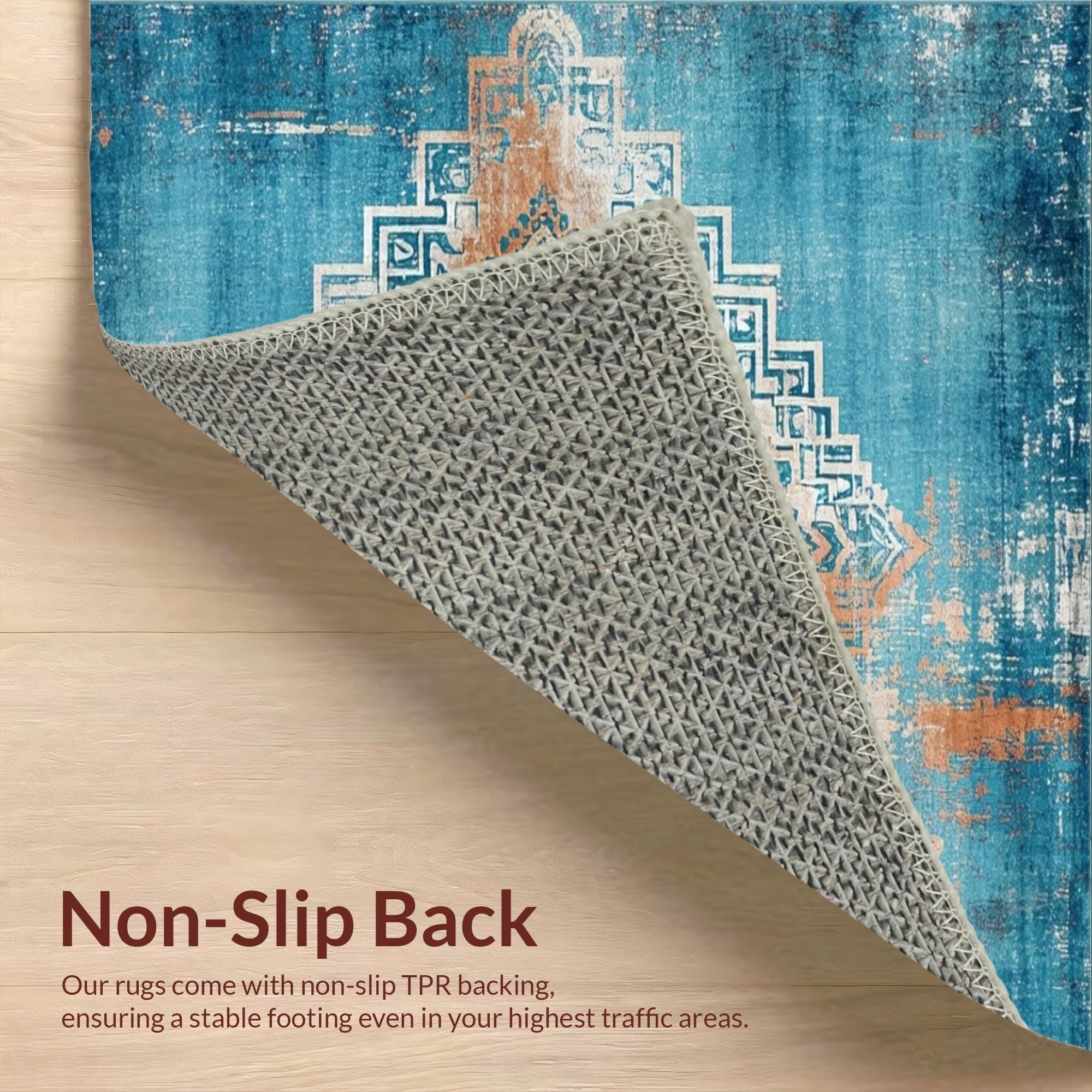 Ultra Soft Area Rug, Non Slip, Stain Resistant, Washable Area Rugs for Living Room, Bedroom, Striking Vibrant Patchwork Elements(Blue) Overview:
