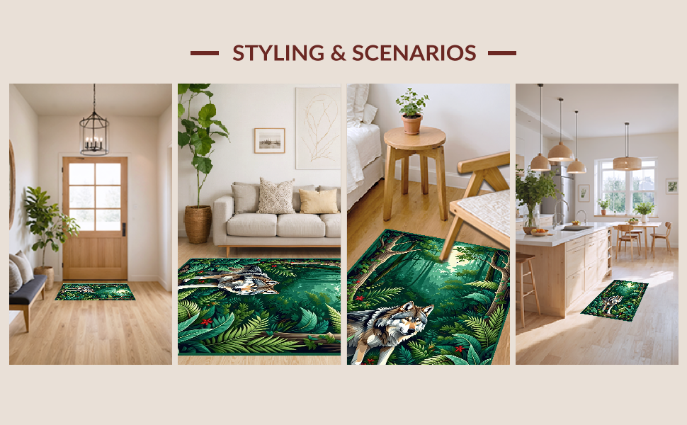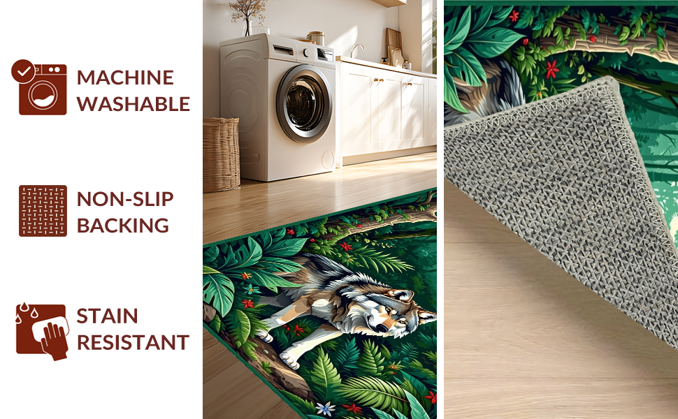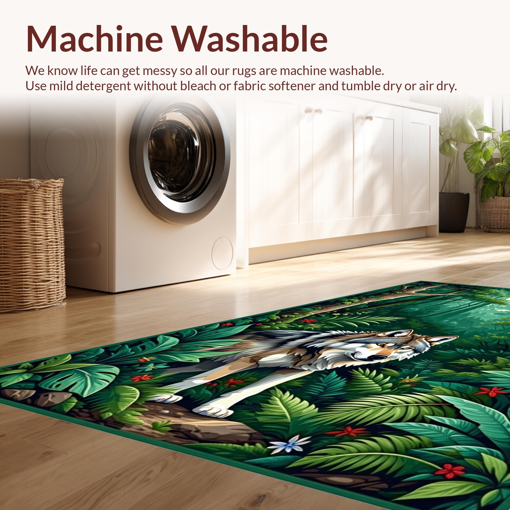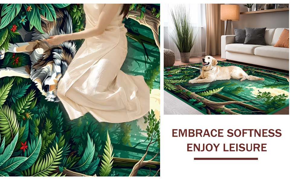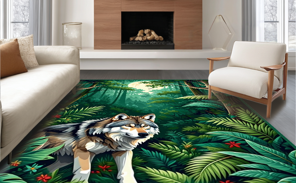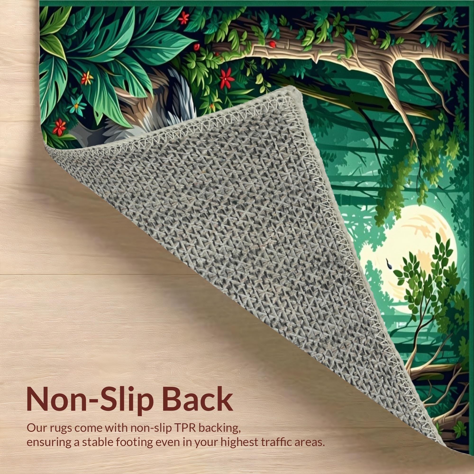 Ultra Soft Area Rug, Non Slip, Stain Resistant, Washable Area Rugs for Living Room, Bedroom, Striking Wildlife Art Design(Green) Overview: