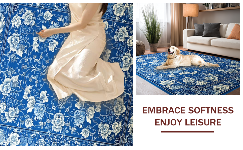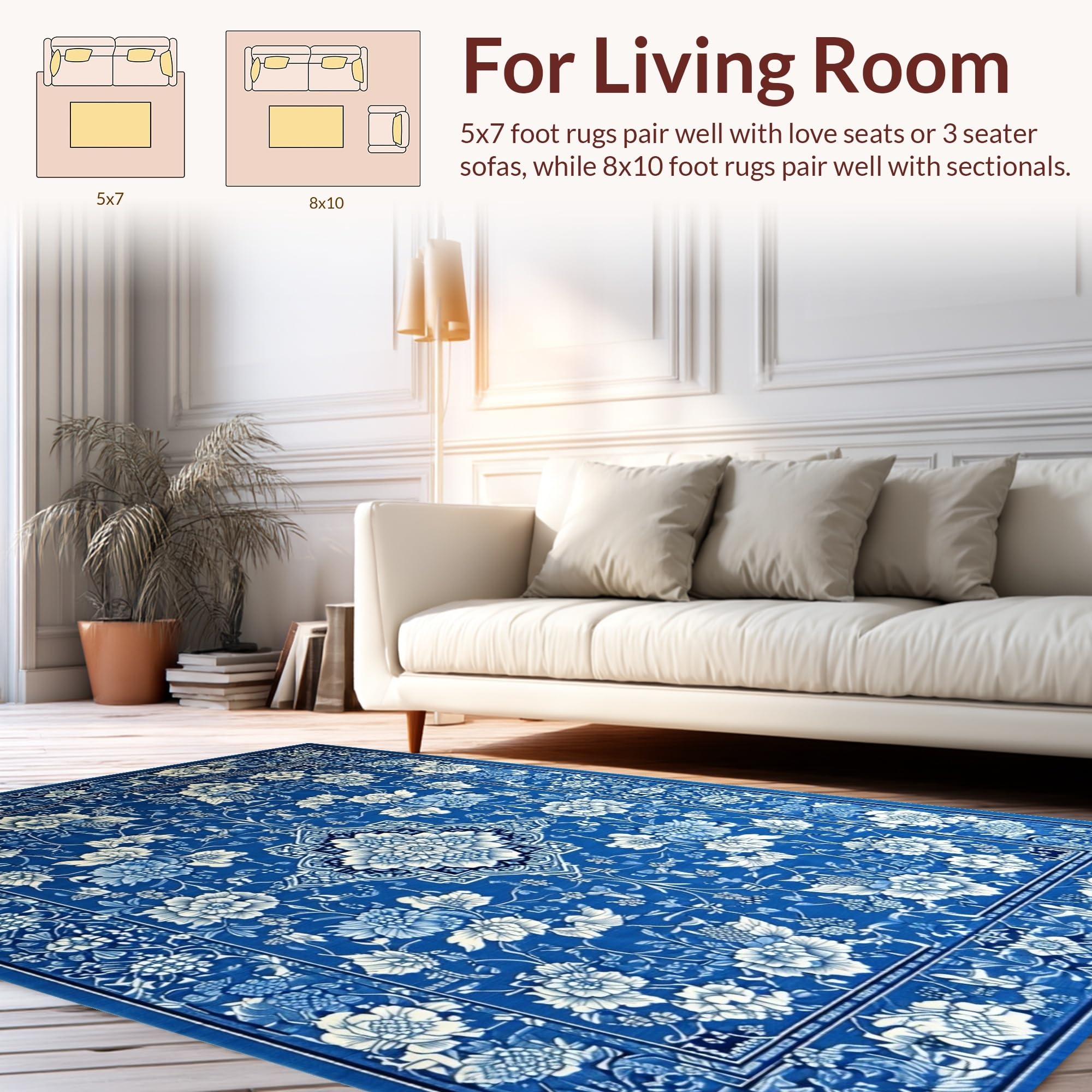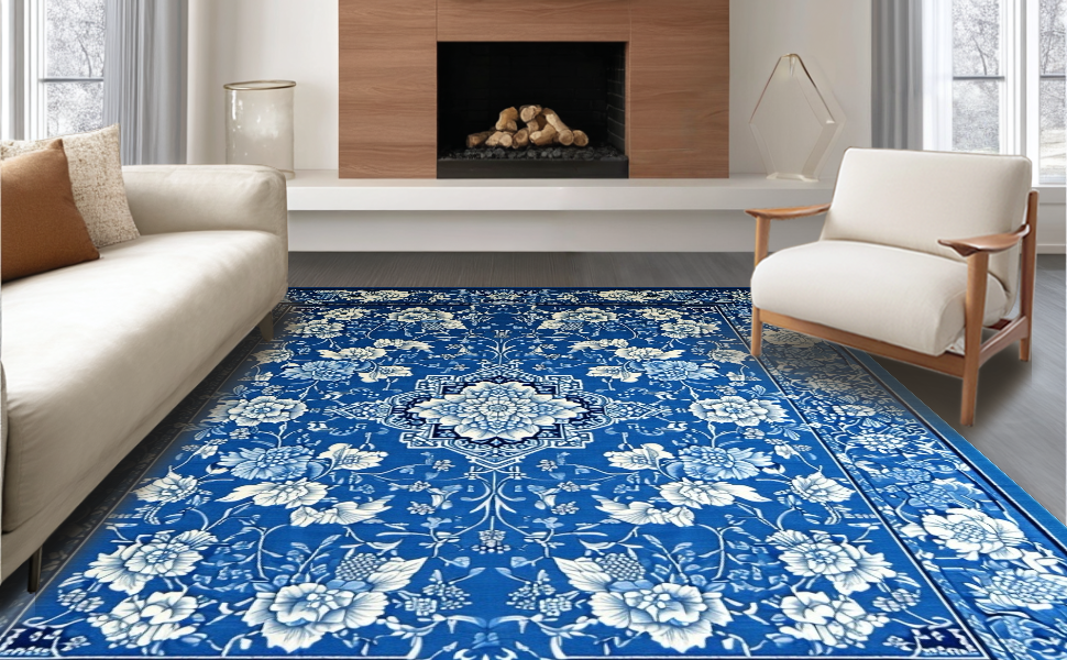 Ultra Soft Area Rug, Non Slip, Stain Resistant, Washable Area Rugs for Living Room, Bedroom, Stylish Abstract Ogee Patterned Rug(Blue) Overview: