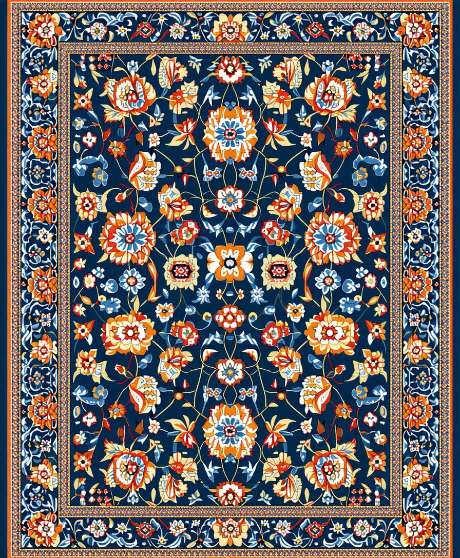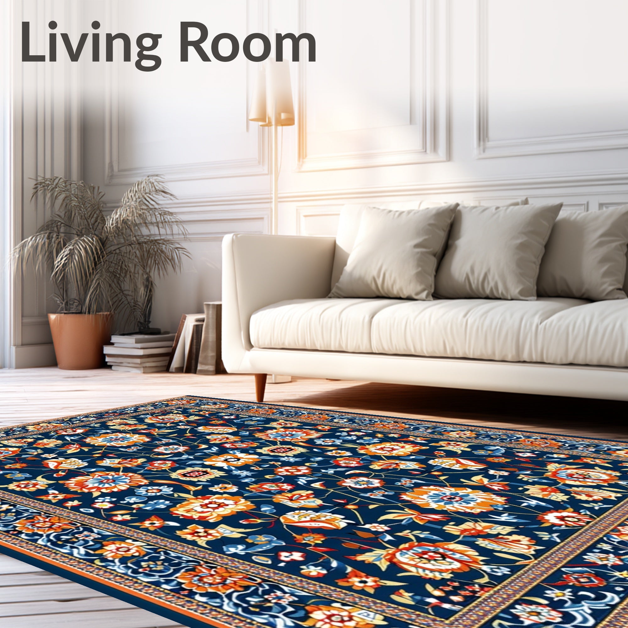Ultra Soft Area Rug, Non Slip, Stain Resistant, Washable Area Rugs for Living Room, Bedroom, Stylish Area with Elegant Dual Tone Blue and Orange Floral(Blue) Overview: