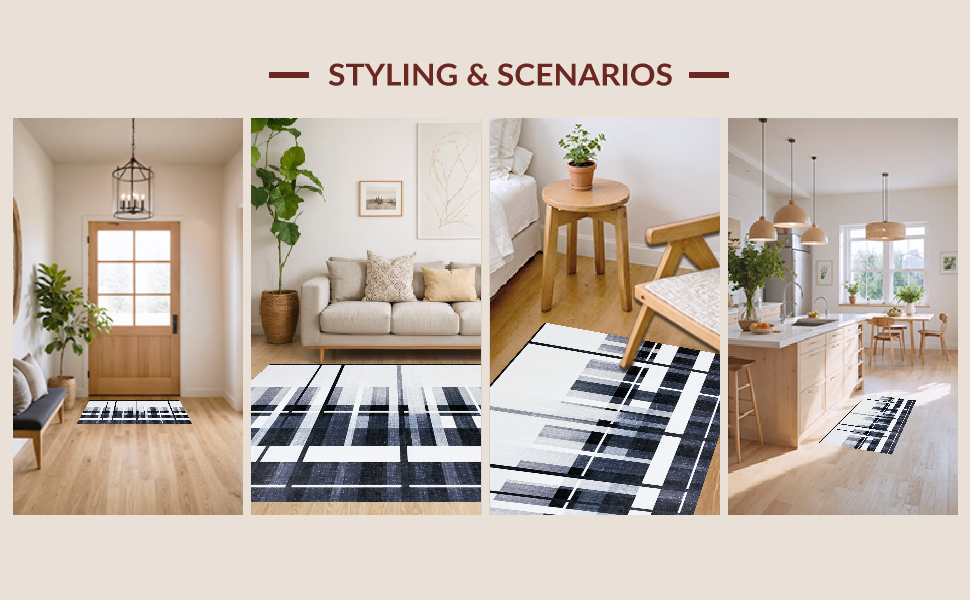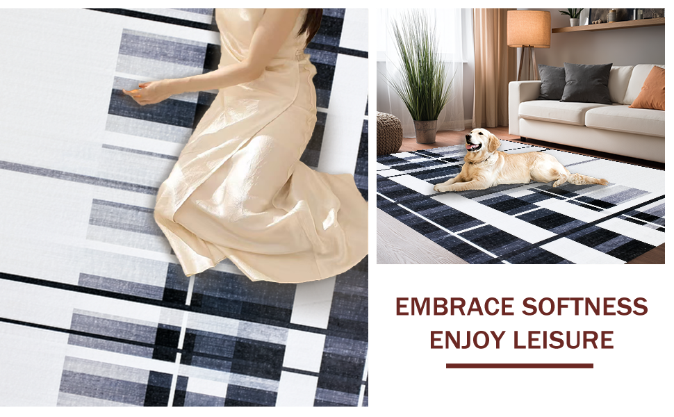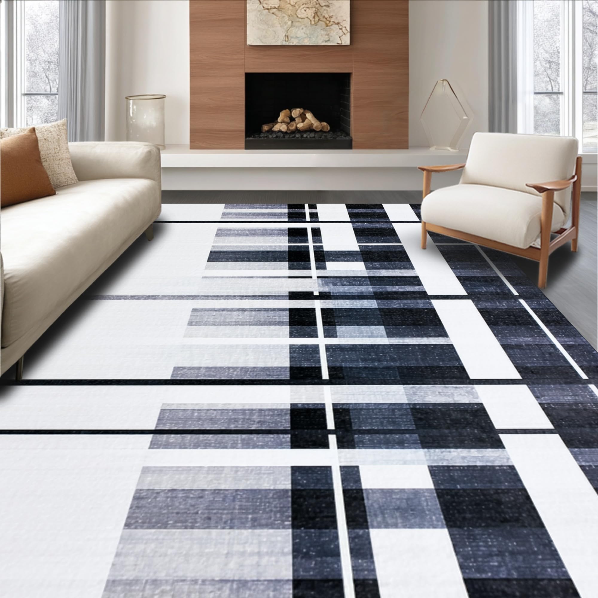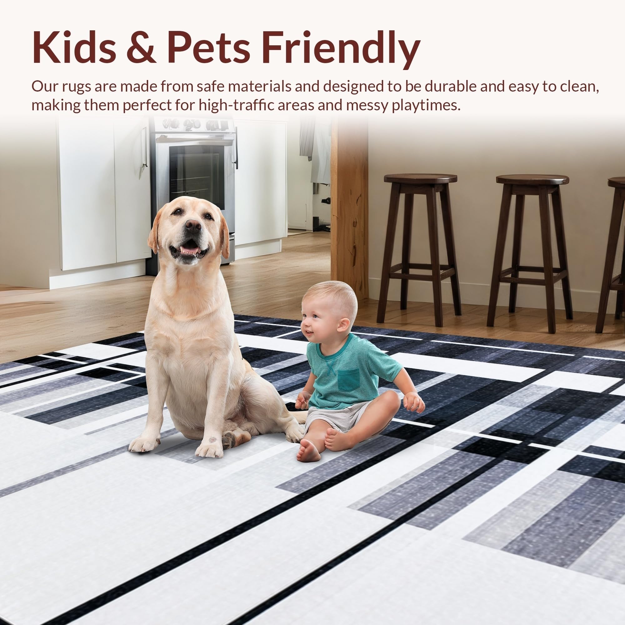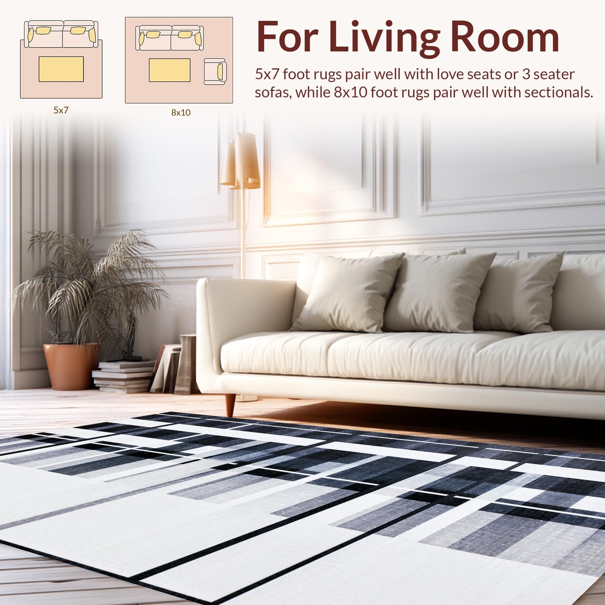 Ultra Soft Area Rug, Non Slip, Stain Resistant, Washable Area Rugs for Living Room, Bedroom, Stylish Black and White Geometric Striped Area Rug(Gray) Overview: