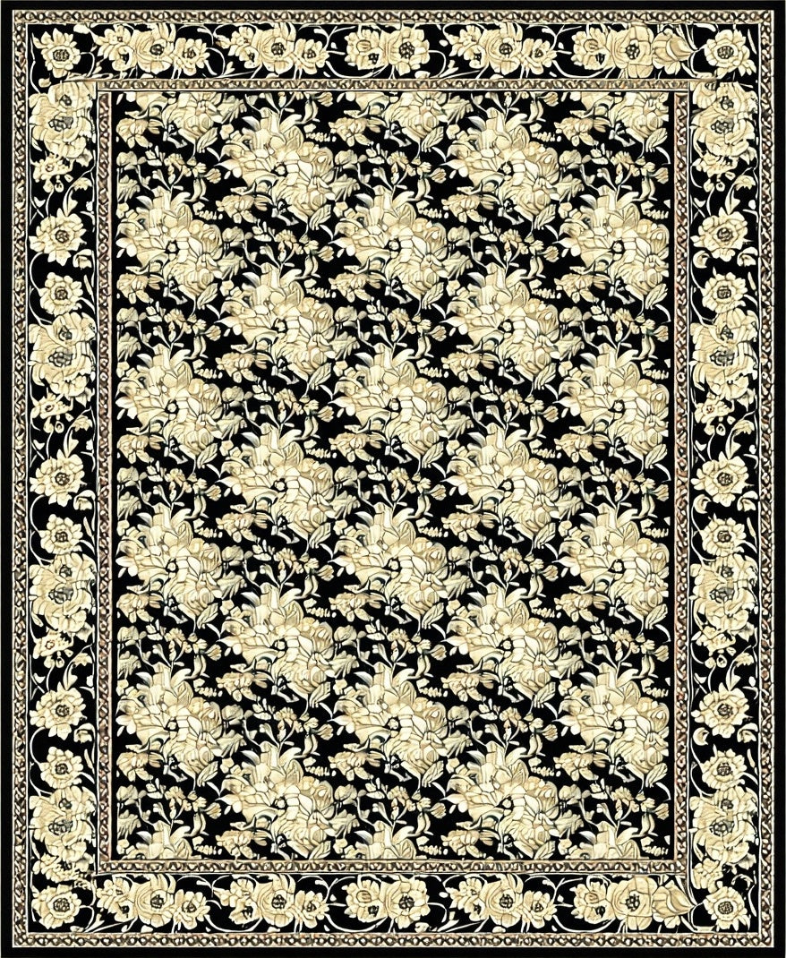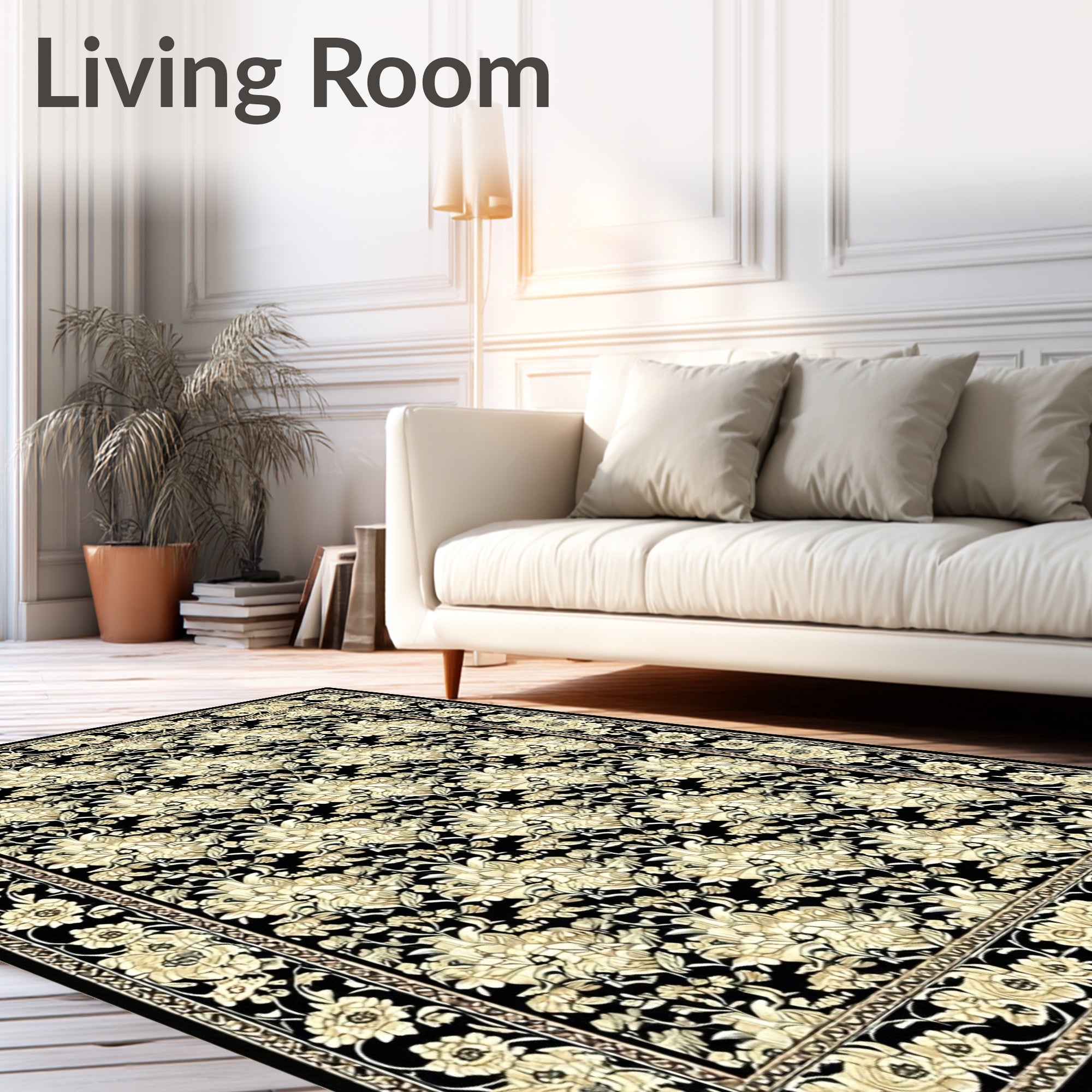 Flatwoven High Traffic Area Rug, Stylish Black Showcasing Artistic Floral Motifs in Beige, Non Slip, Stain Resistant, Washable Area Rugs for Living Room, Bedroom (Black) Overview: