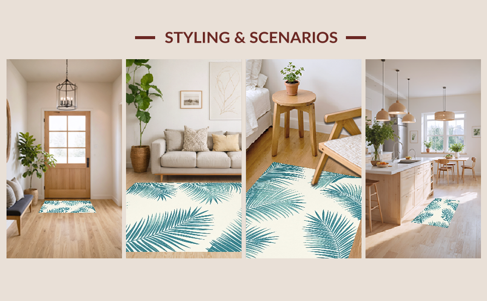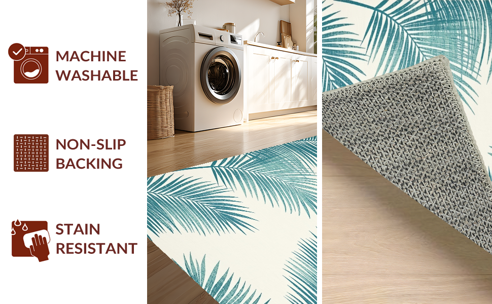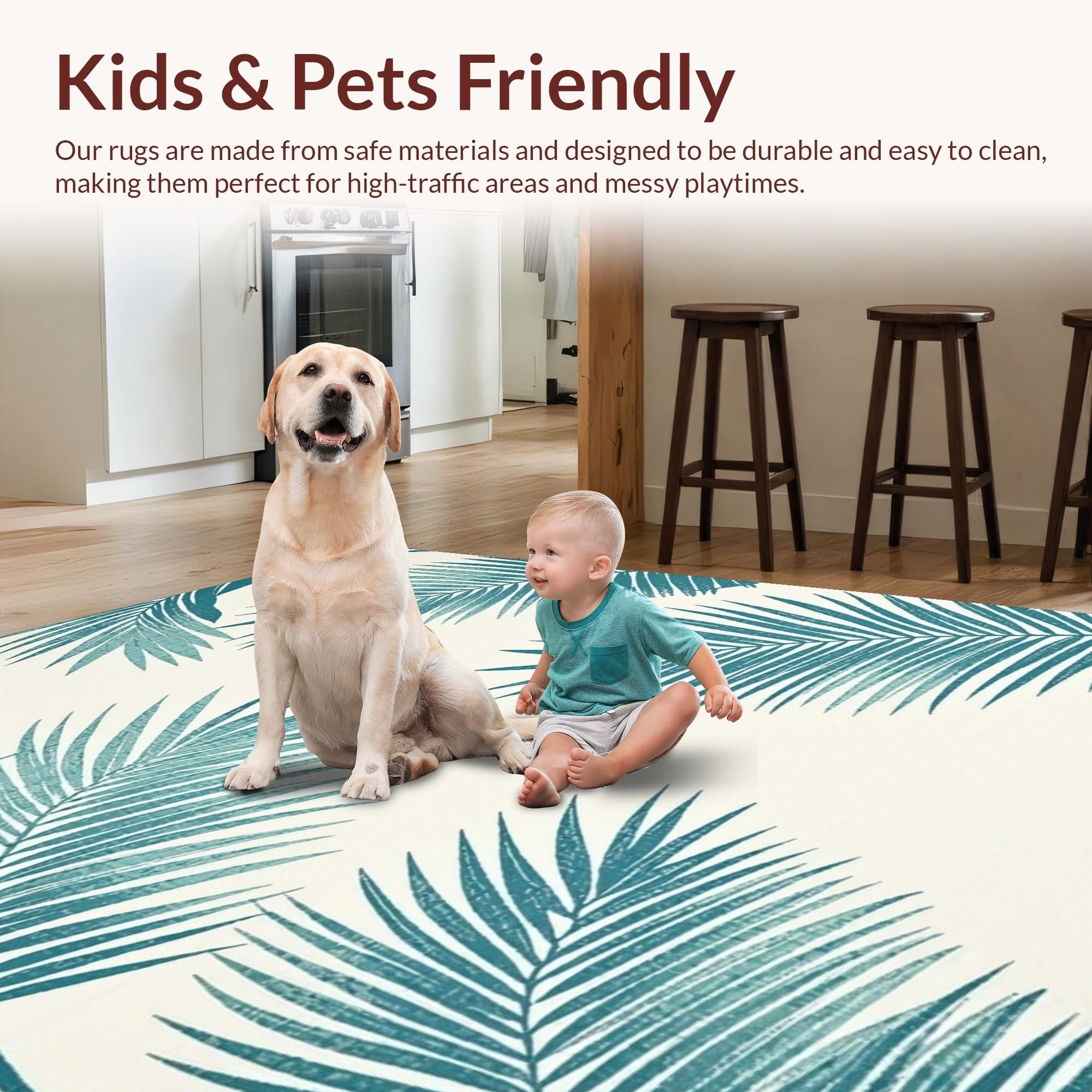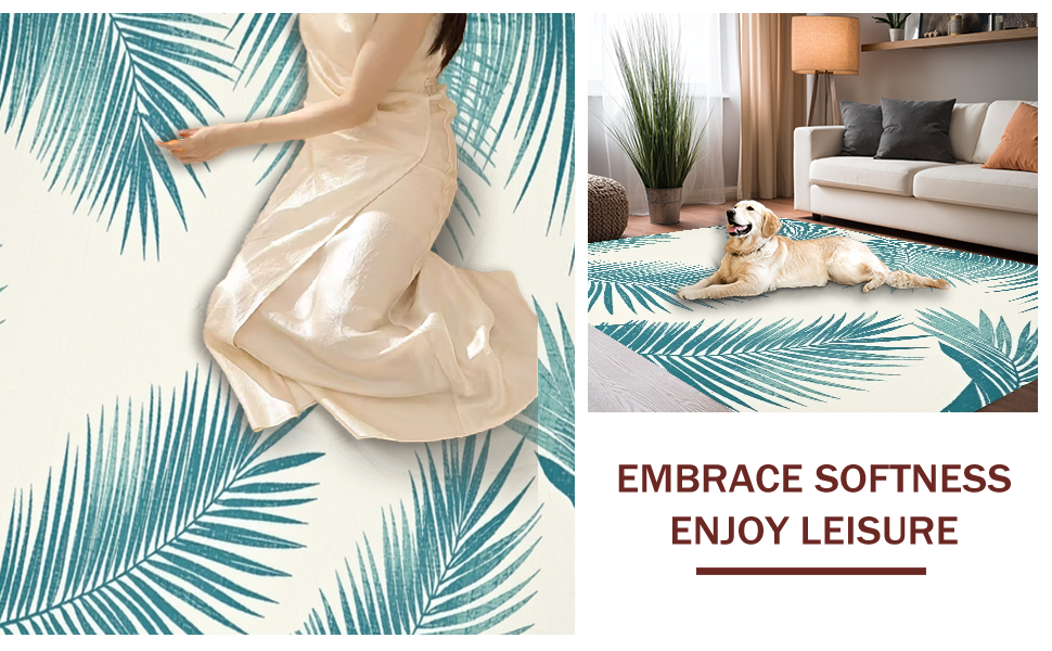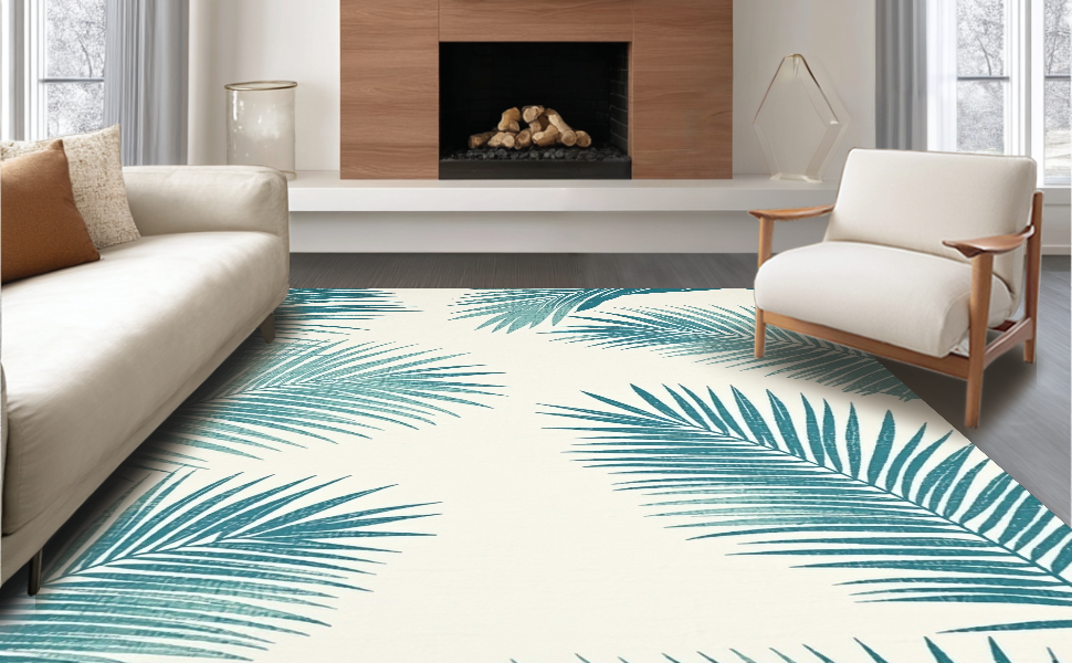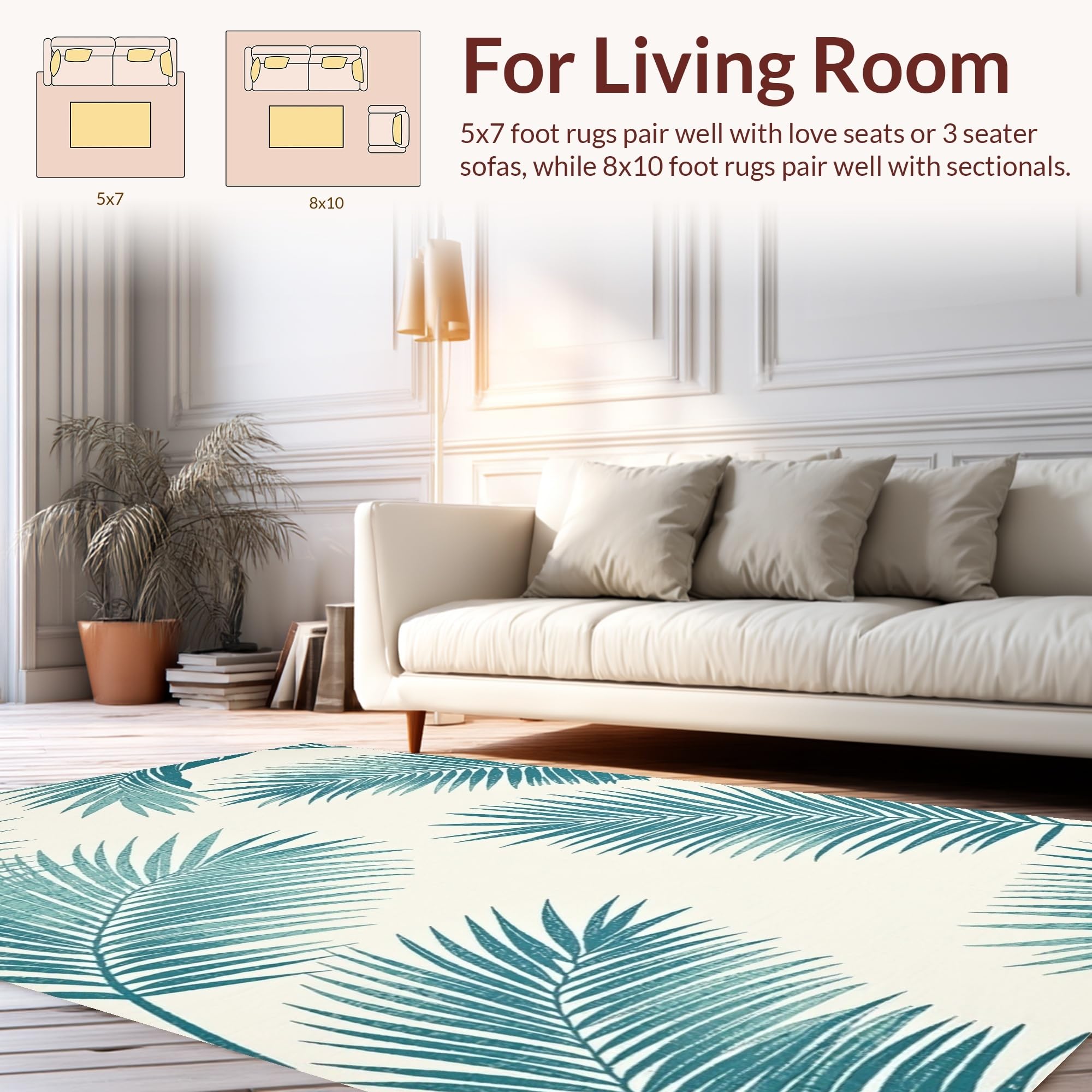 Ultra Soft Area Rug, Non Slip, Stain Resistant, Washable Area Rugs for Living Room, Bedroom, Stylish Coastal Inspired Leaf Print(Beige) Overview: