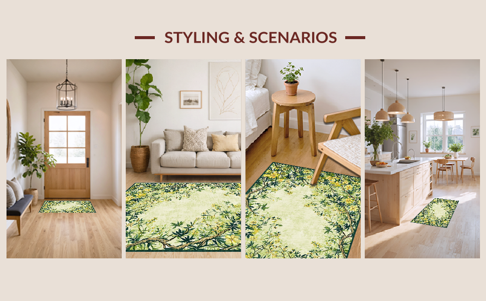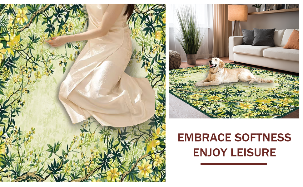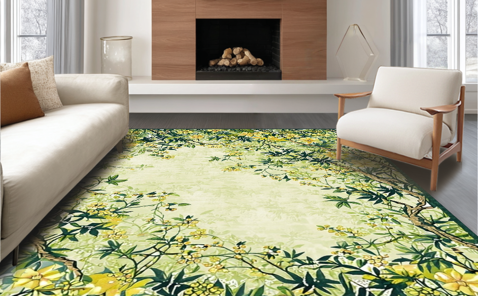 Ultra Soft Area Rug, Non Slip, Stain Resistant, Washable Area Rugs for Living Room, Bedroom, Stylish Coastal Inspired Print(Green) Overview: