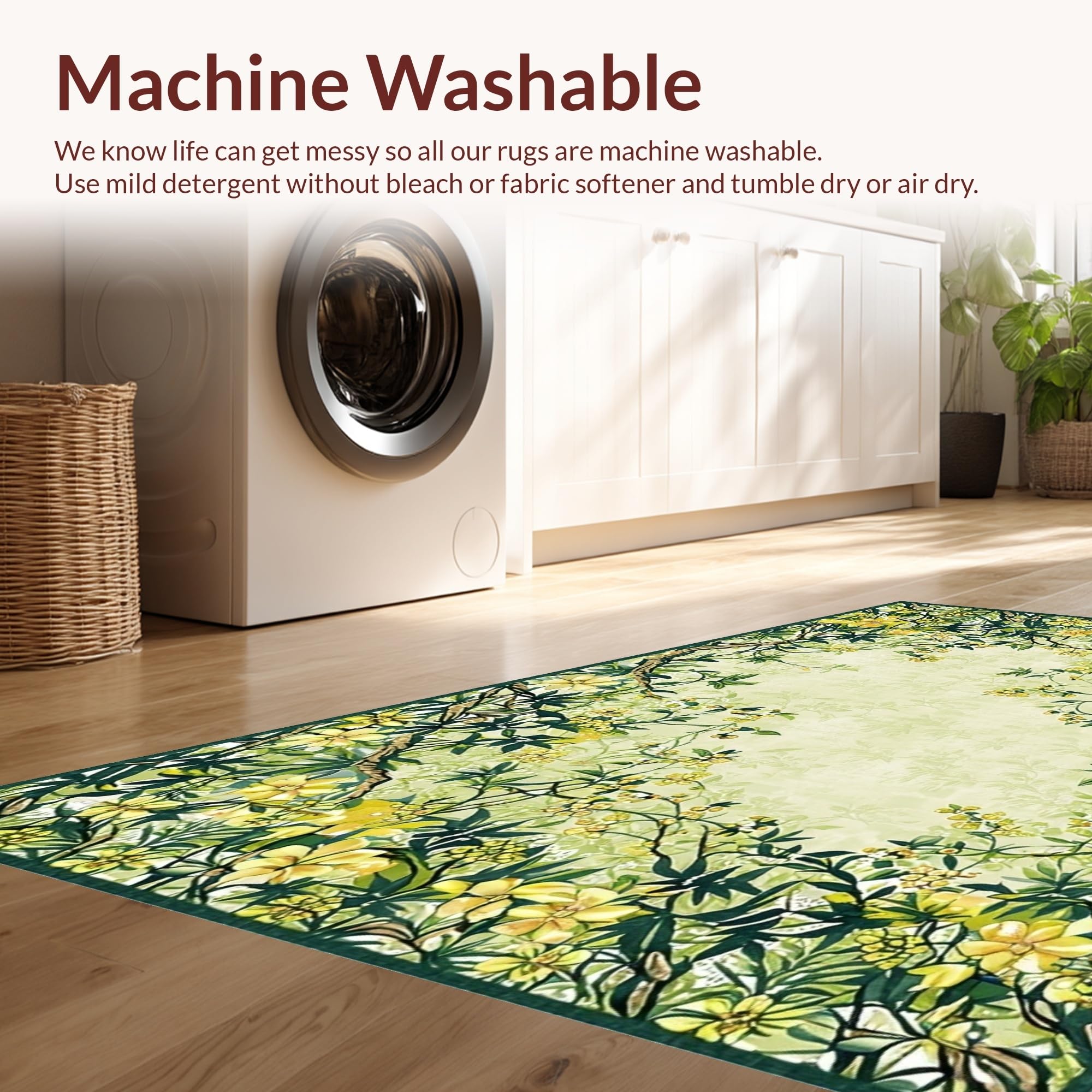 - Machine Washable: Our rugs can be easily thrown in the wash machine.