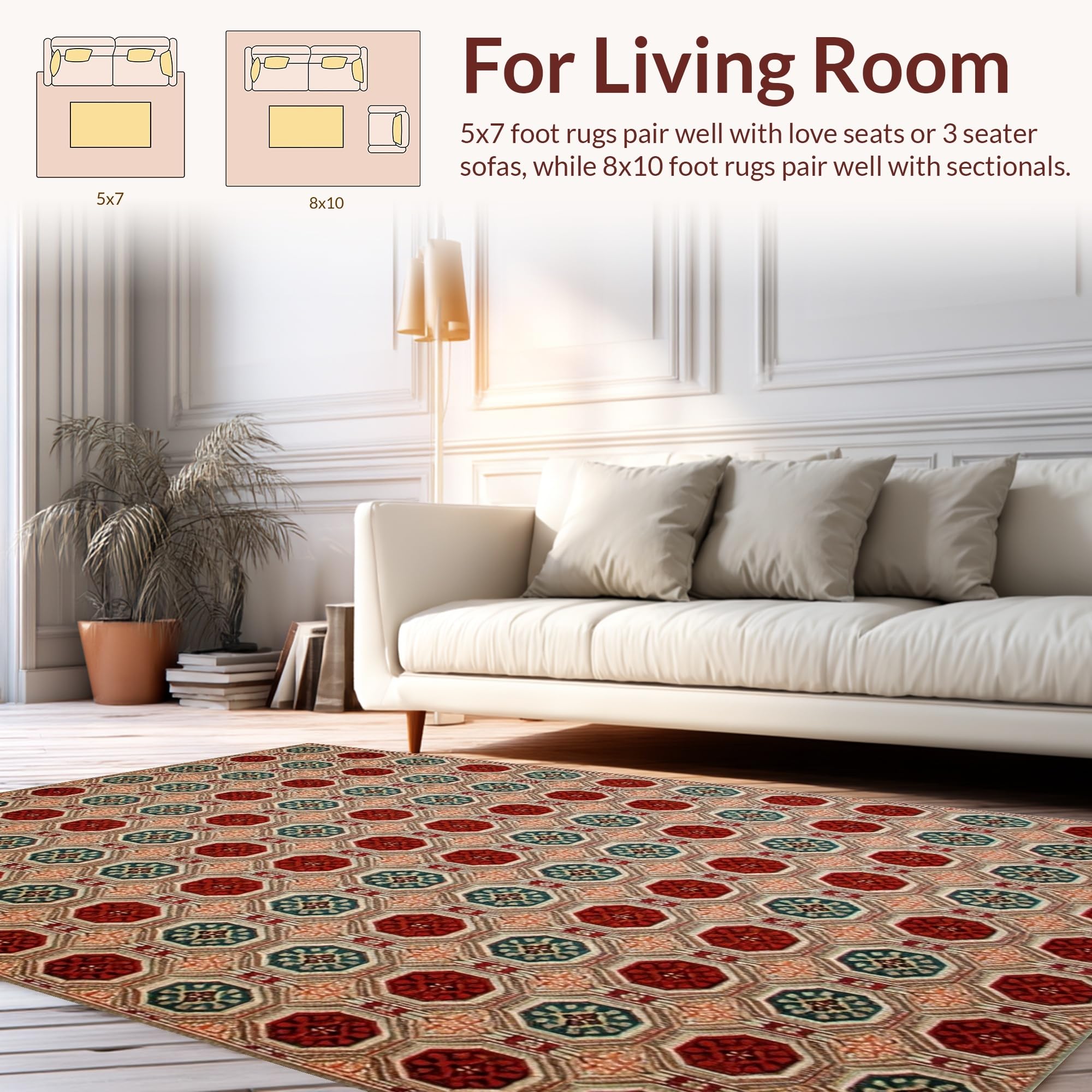Ultra Soft Area Rug, Non Slip, Stain Resistant, Washable Area Rugs for Living Room, Bedroom, Stylish Colorful Fractal Design(Beige) Overview: