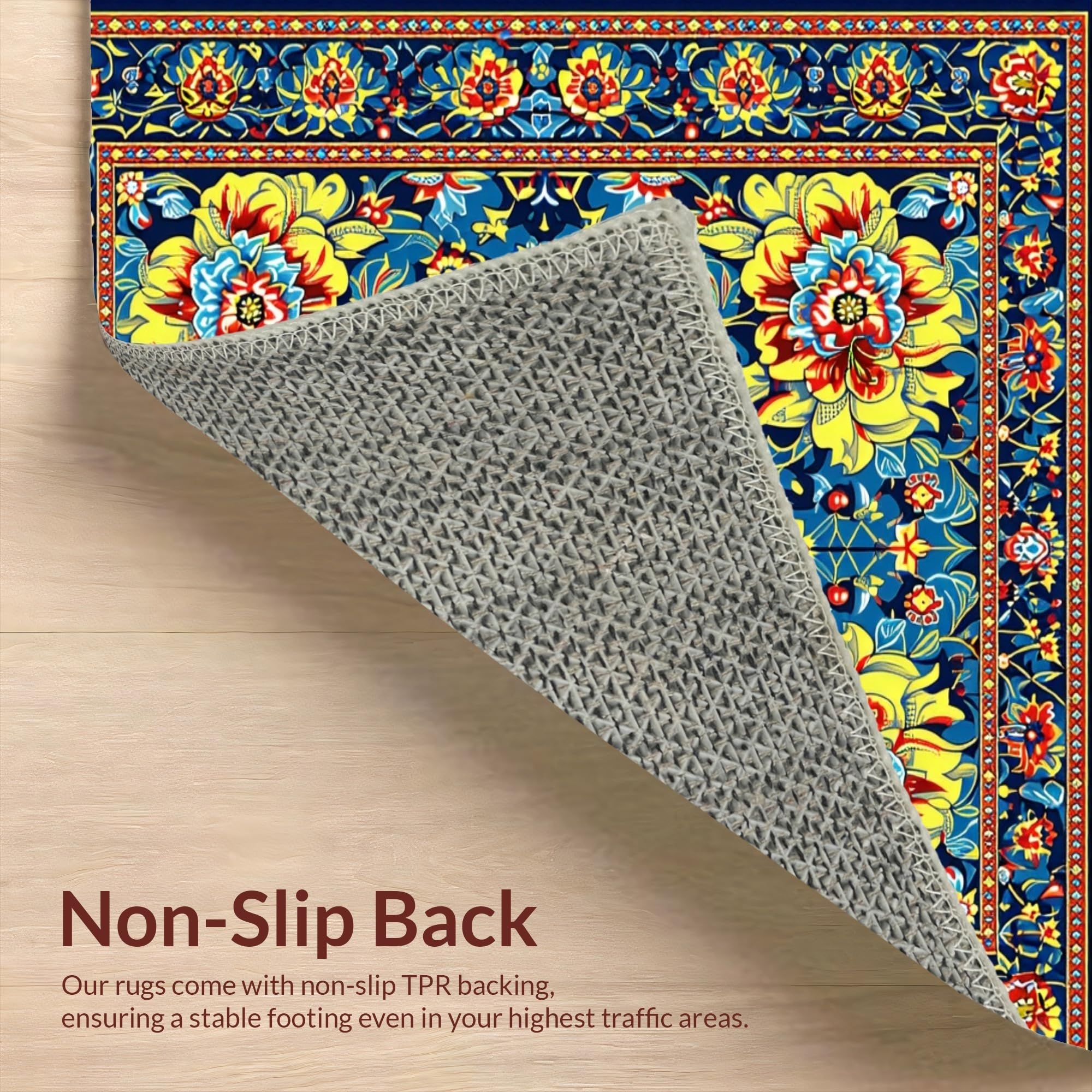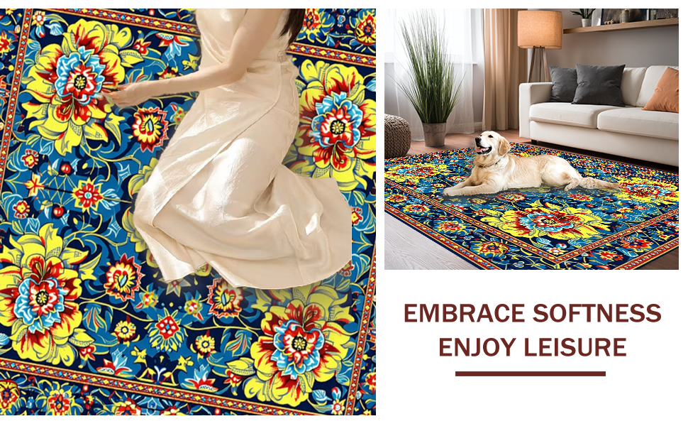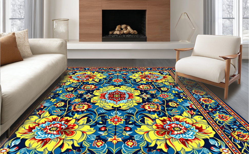 Ultra Soft Area Rug, Non Slip, Stain Resistant, Washable Area Rugs for Living Room, Bedroom, Stylish Colorful Geometric Touch(Blue) Overview:
