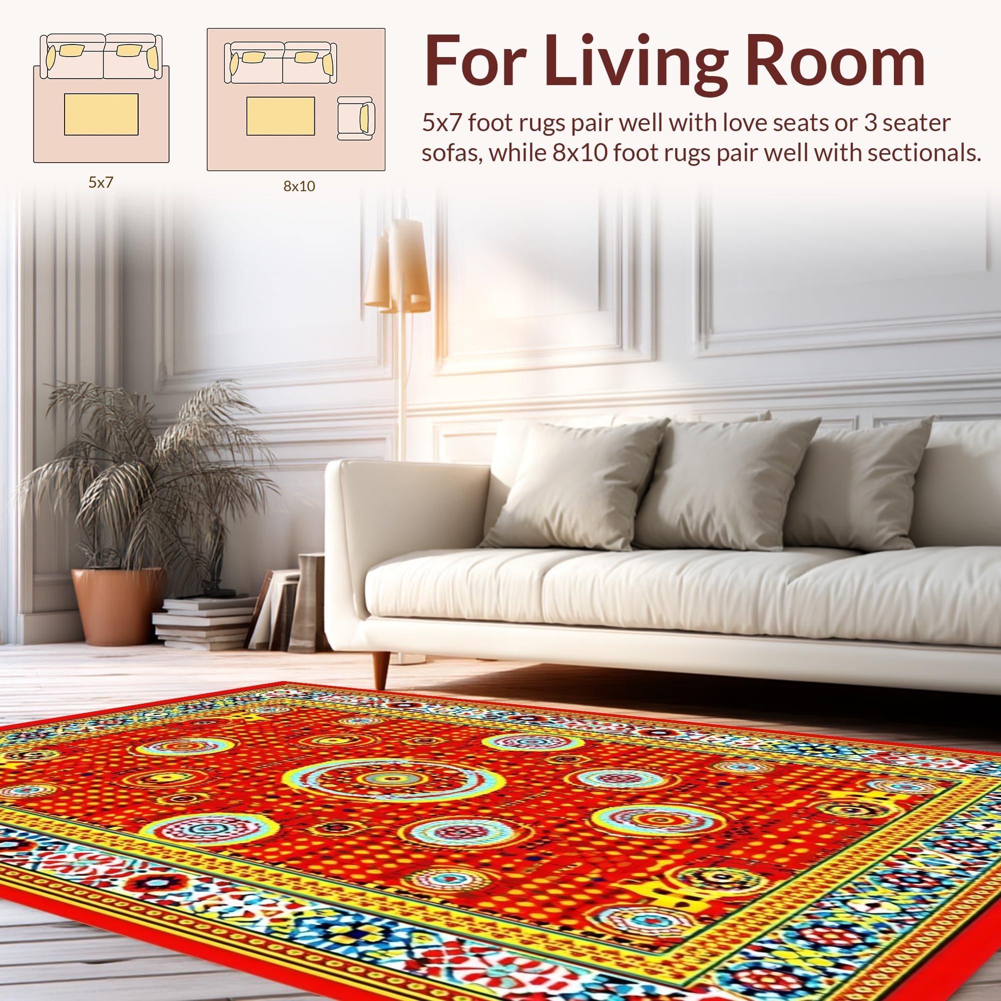 Ultra Soft Area Rug, Non Slip, Stain Resistant, Washable Area Rugs for Living Room, Bedroom, Stylish Colorful Spiral Arrangement(Red) Overview: