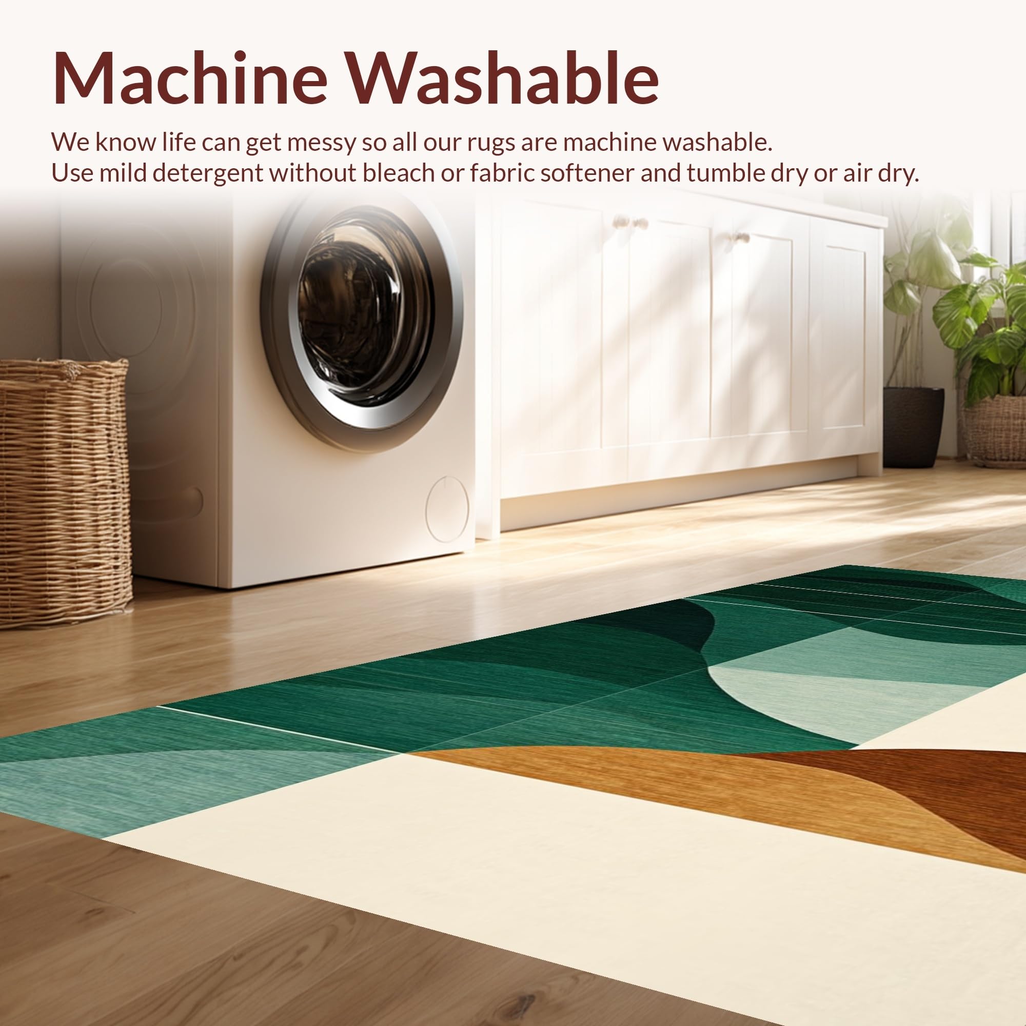 - Machine Washable: Our rugs can be easily thrown in the wash machine.