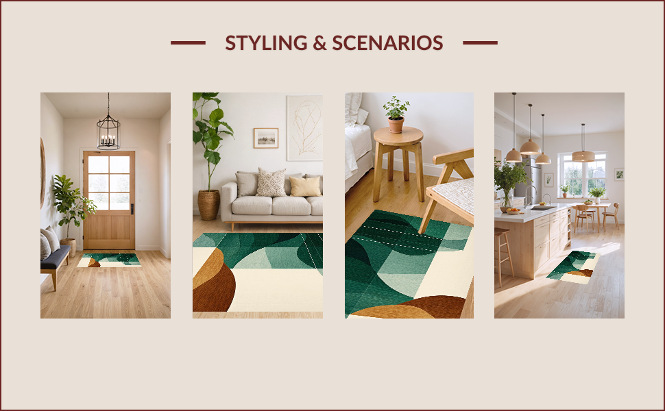 Ultra Soft Area Rug, Non Slip, Stain Resistant, Washable Area Rugs for Living Room, Bedroom, Stylish Contemporary Faded Textures(Green) Overview: