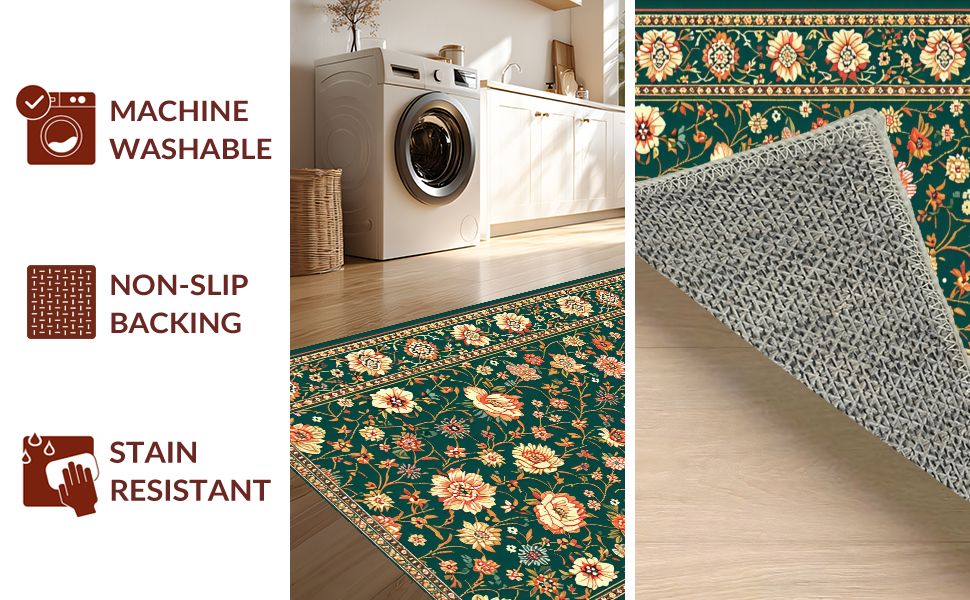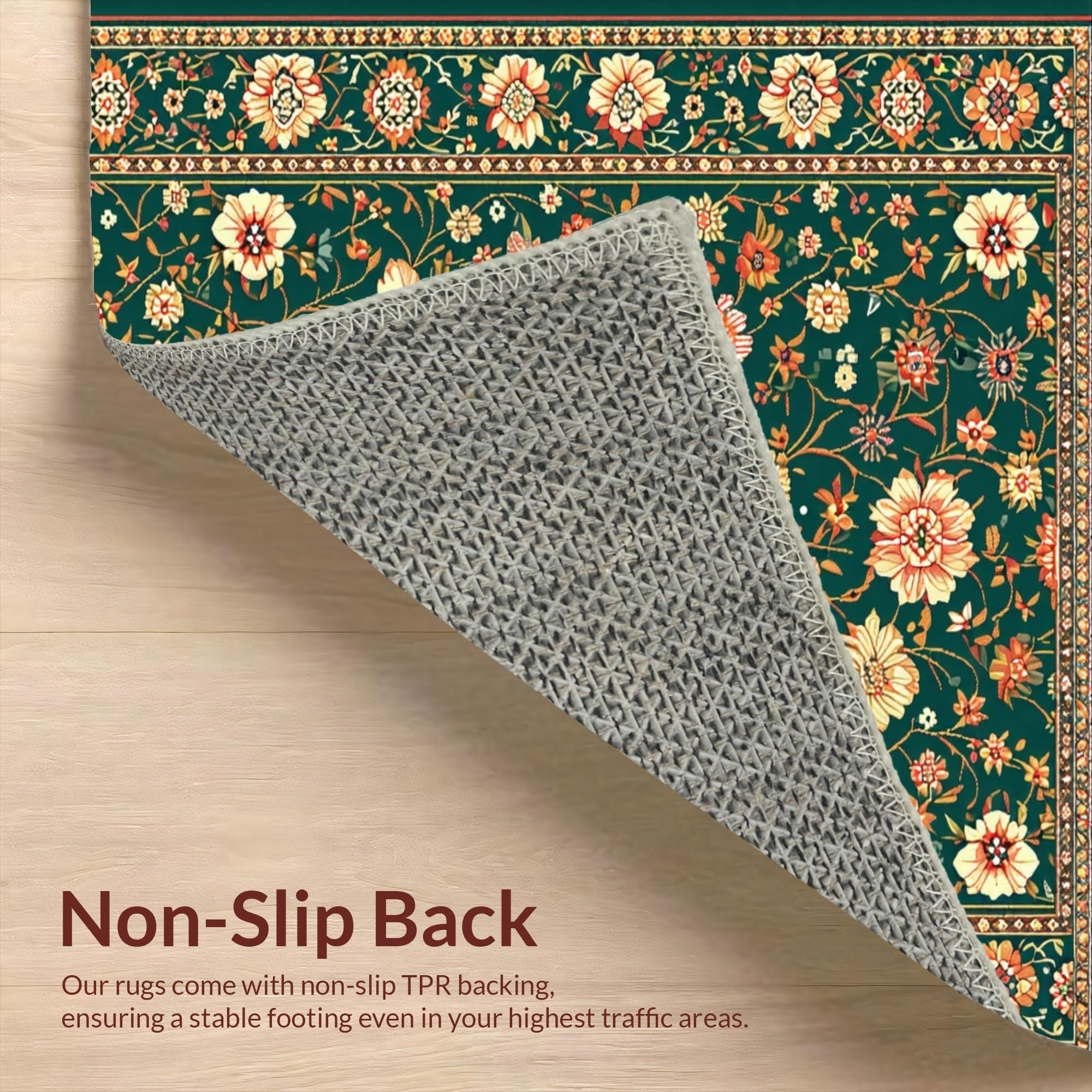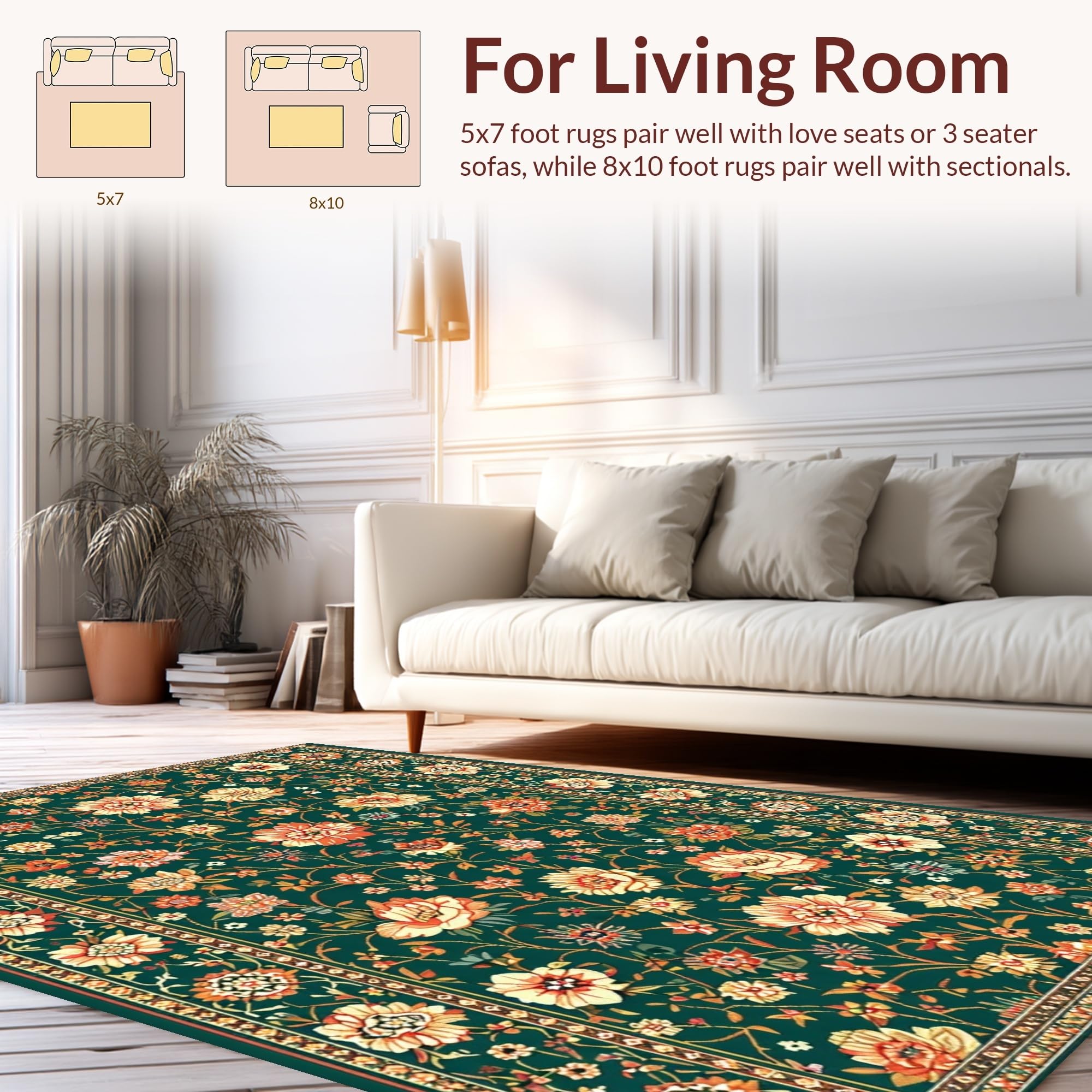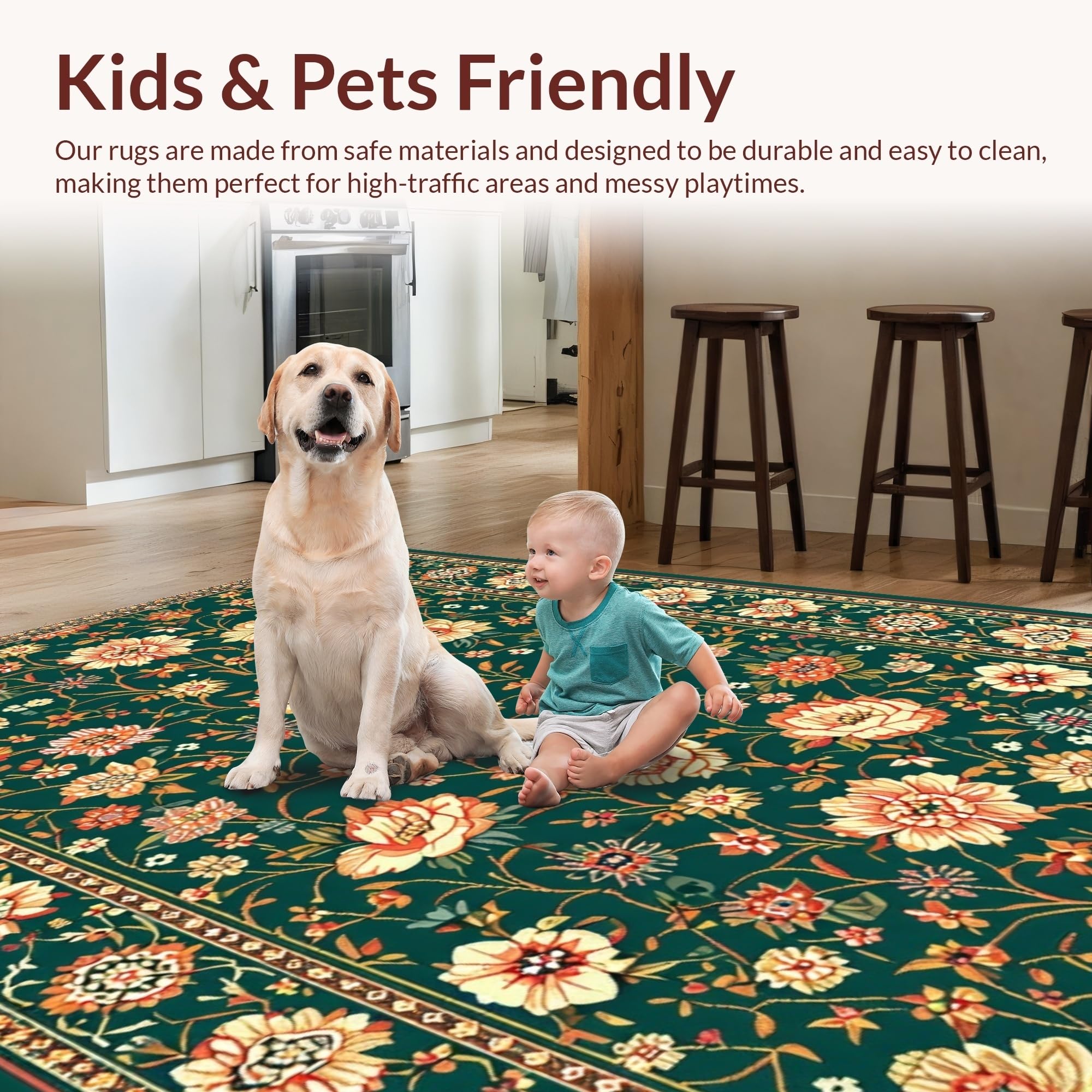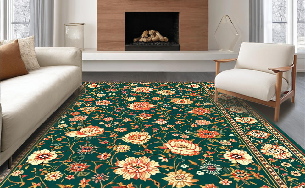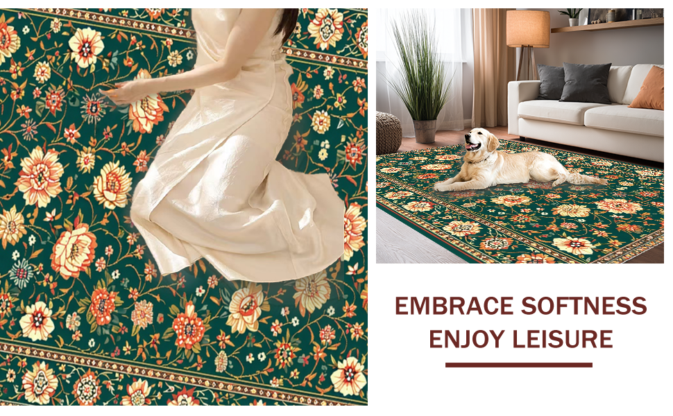 Ultra Soft Area Rug, Non Slip, Stain Resistant, Washable Area Rugs for Living Room, Bedroom, Stylish Distressed Garden Patterns(Green) Overview: