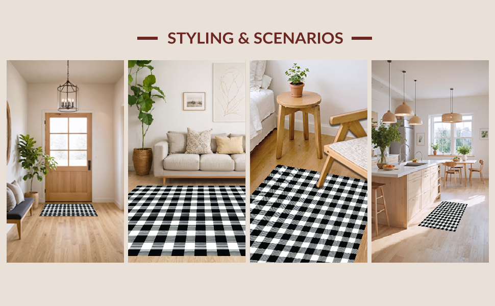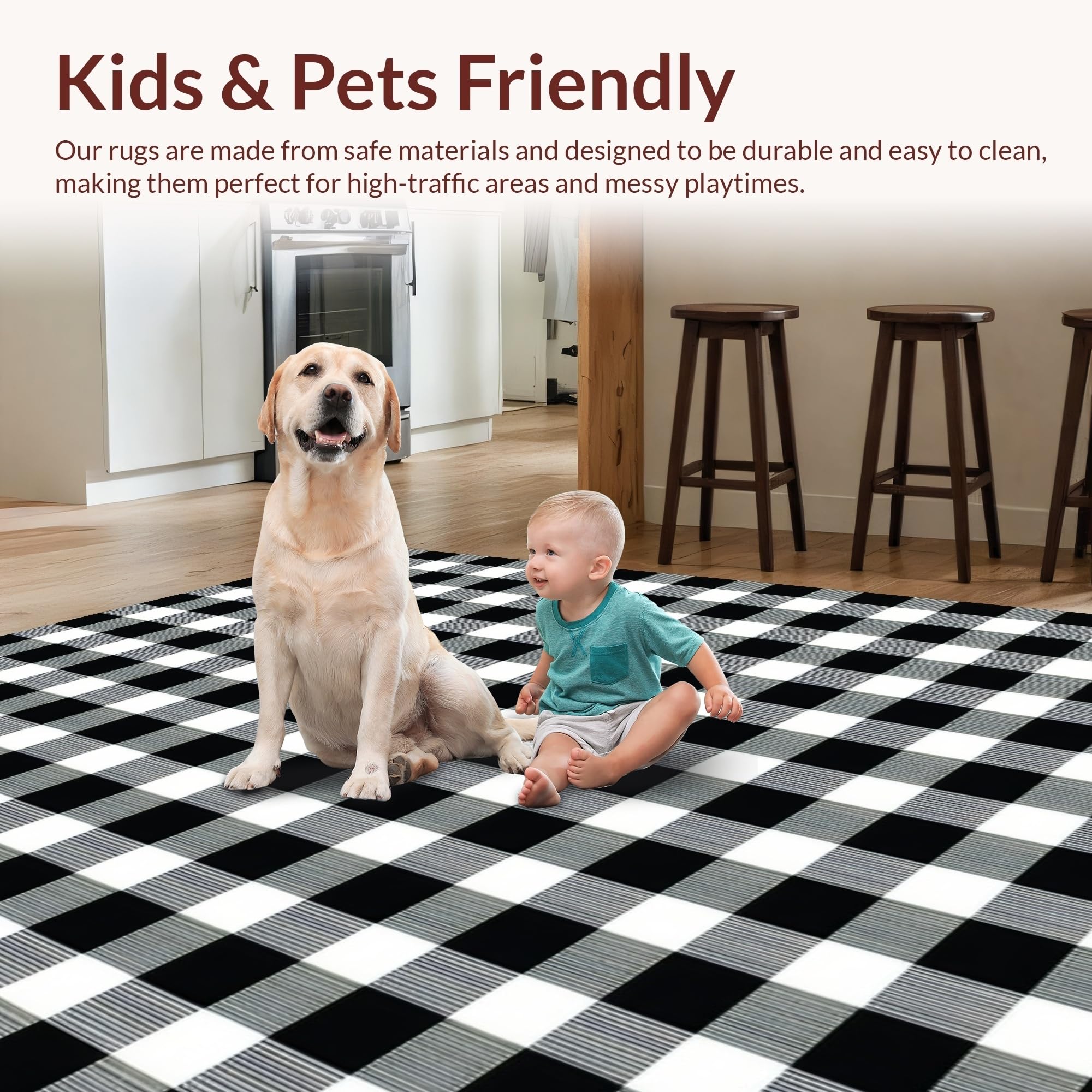Ultra Soft Area Rug, Non Slip, Stain Resistant, Washable Area Rugs for Living Room, Bedroom, Stylish Distressed Neutral Tones Motif(Black) Overview: