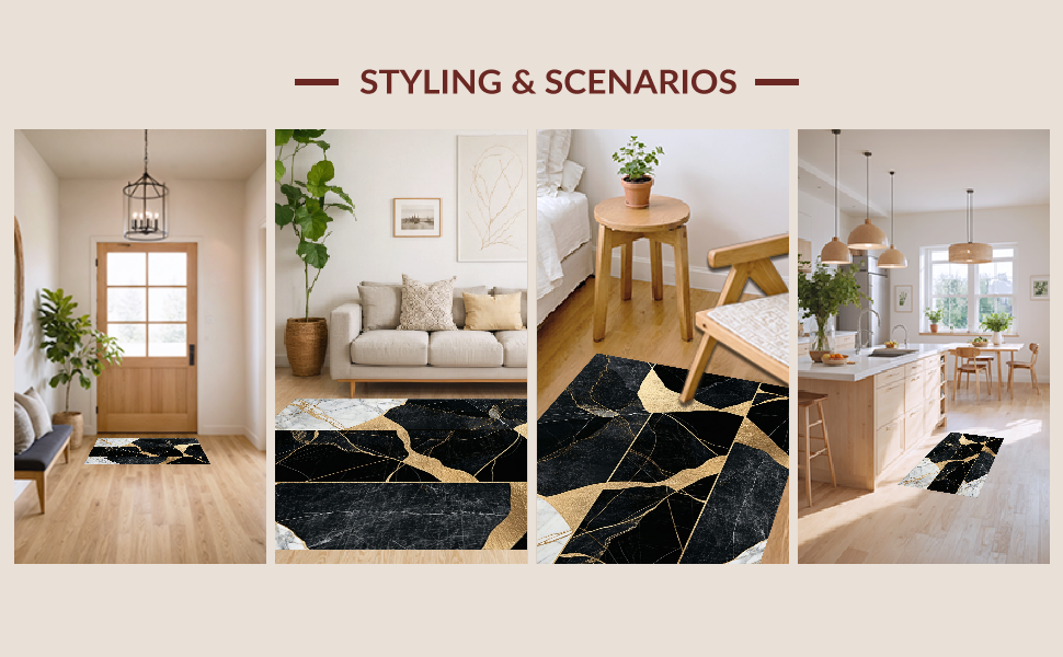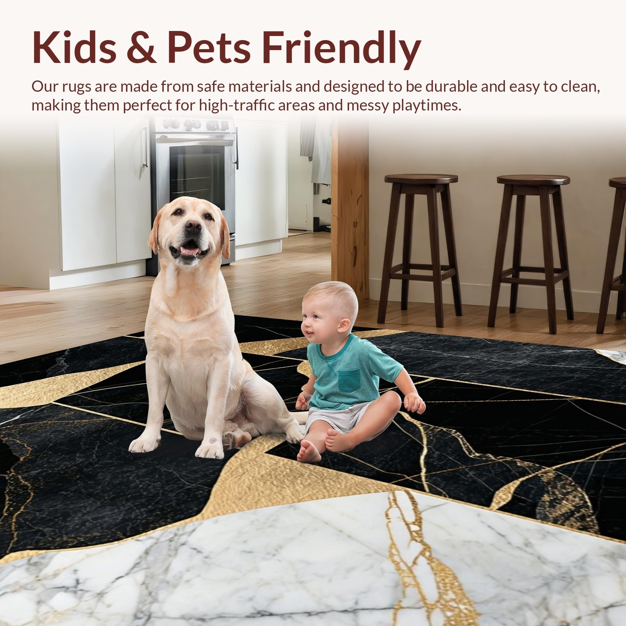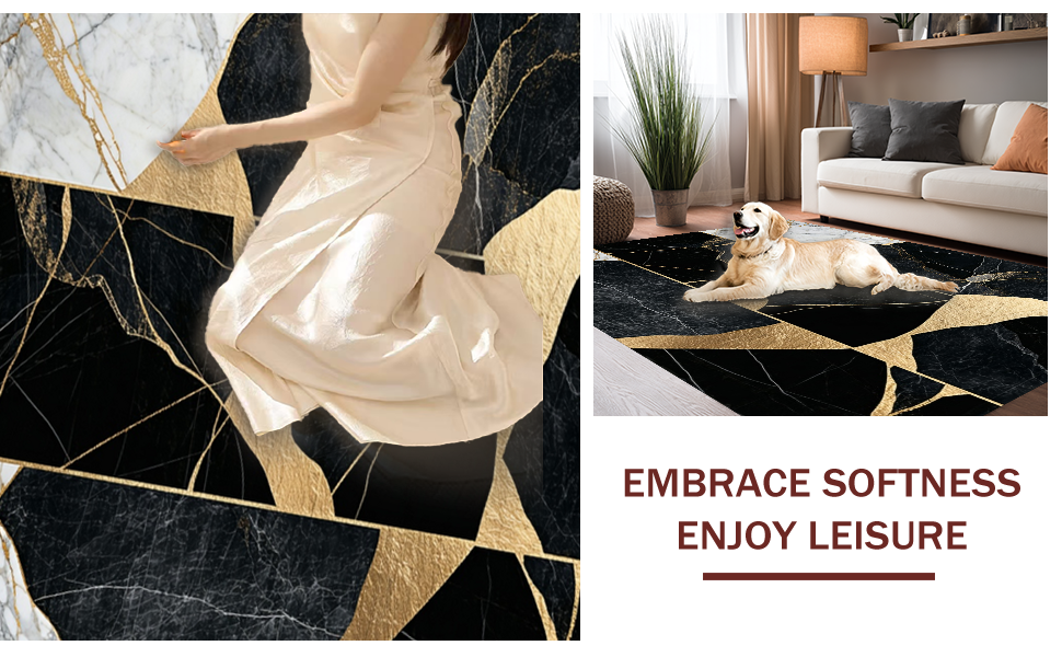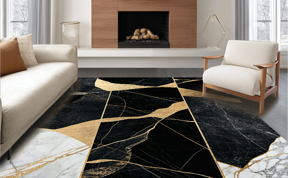 Ultra Soft Area Rug, Non Slip, Stain Resistant, Washable Area Rugs for Living Room, Bedroom, Stylish Dynamic Pattern Composition(Black) Overview: