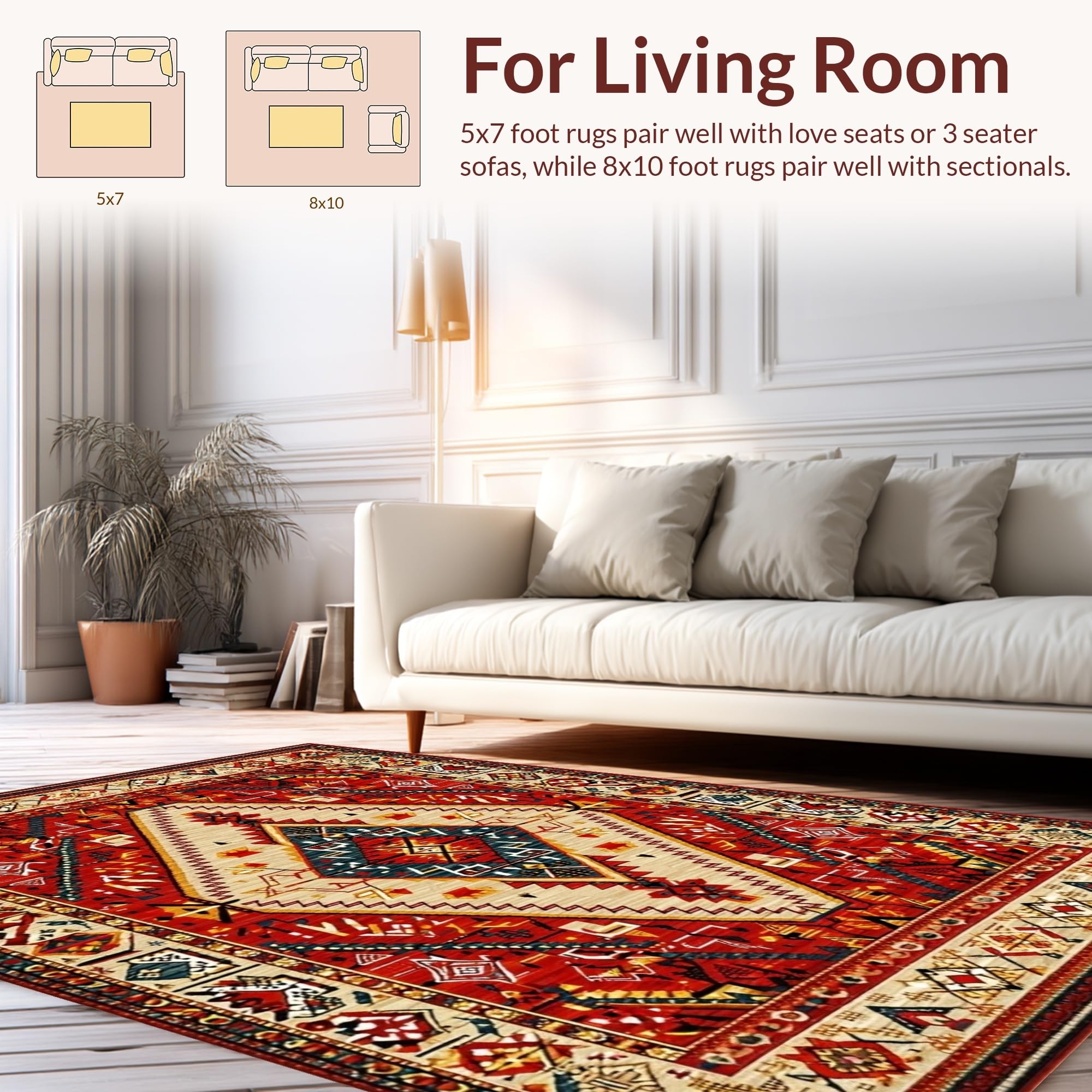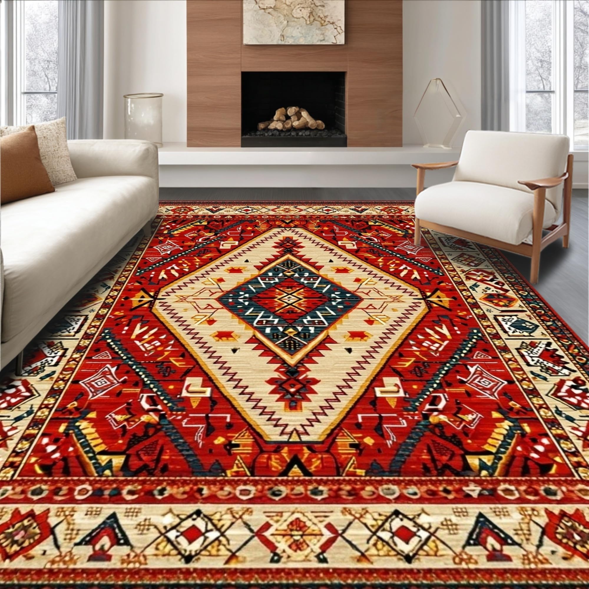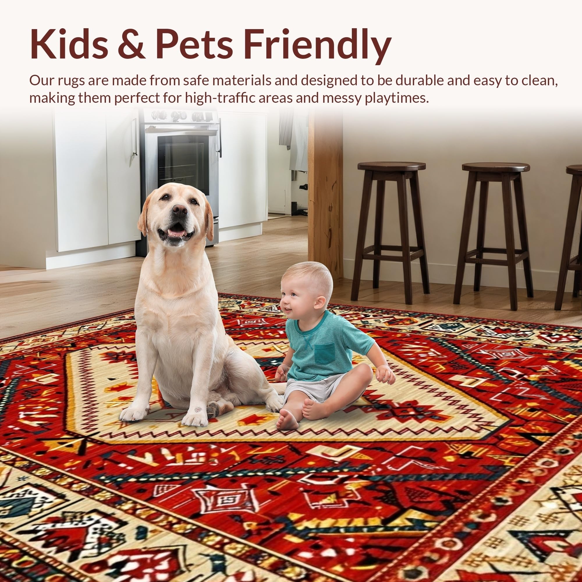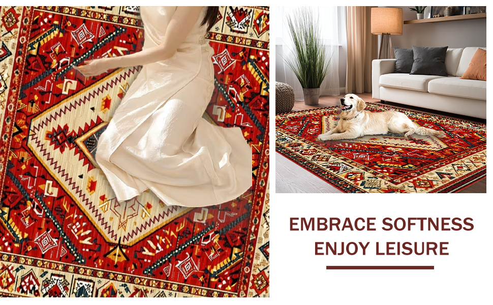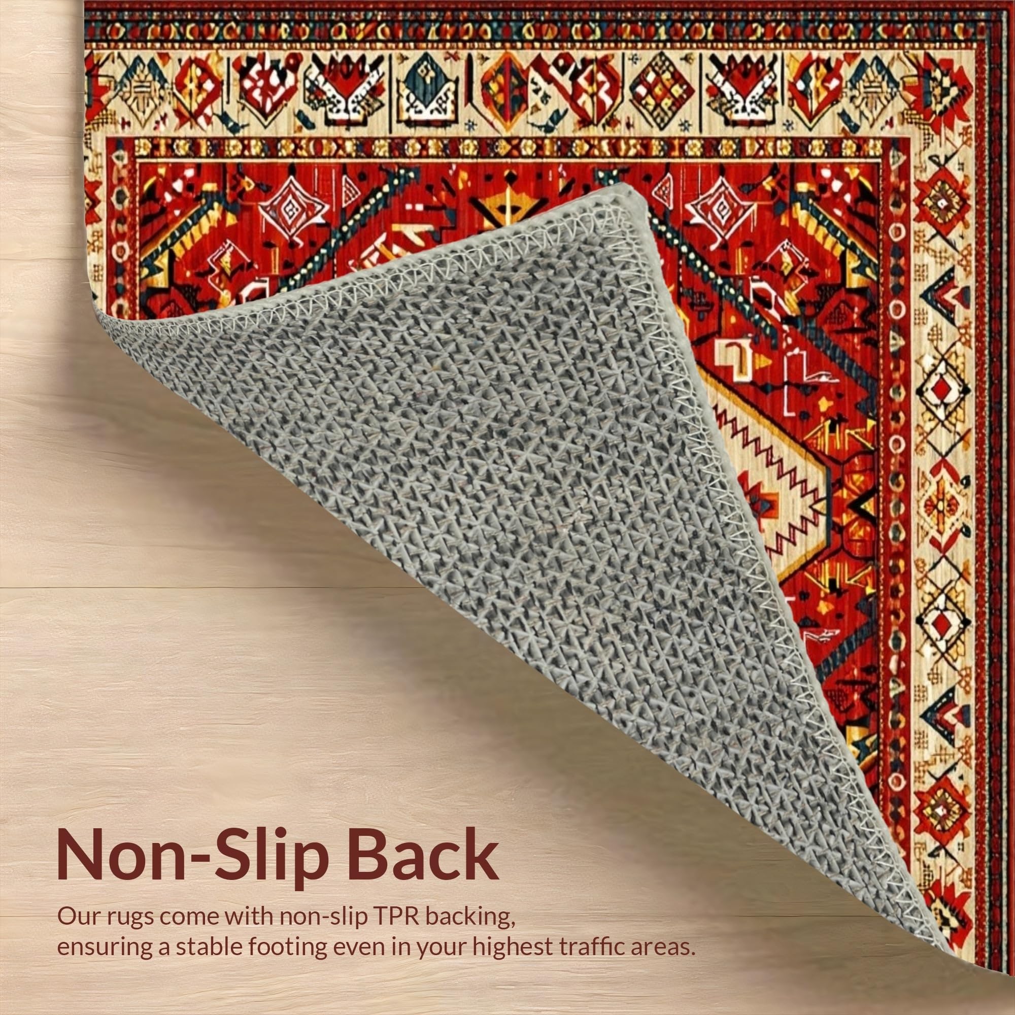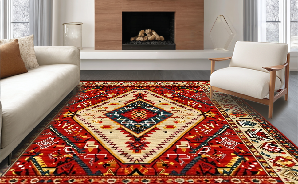 Ultra Soft Area Rug, Non Slip, Stain Resistant, Washable Area Rugs for Living Room, Bedroom, Stylish Earthy Abstract Arrangements(Red) Overview: