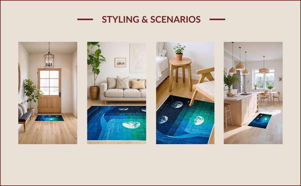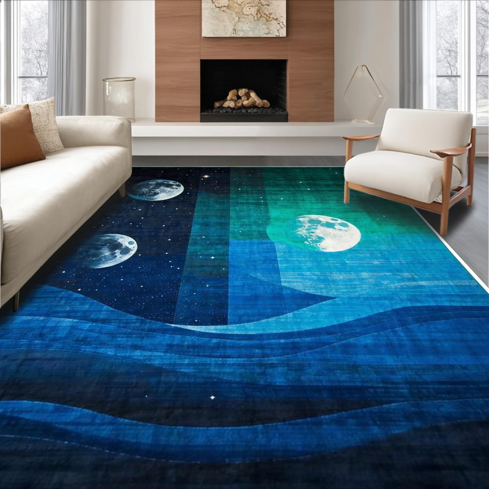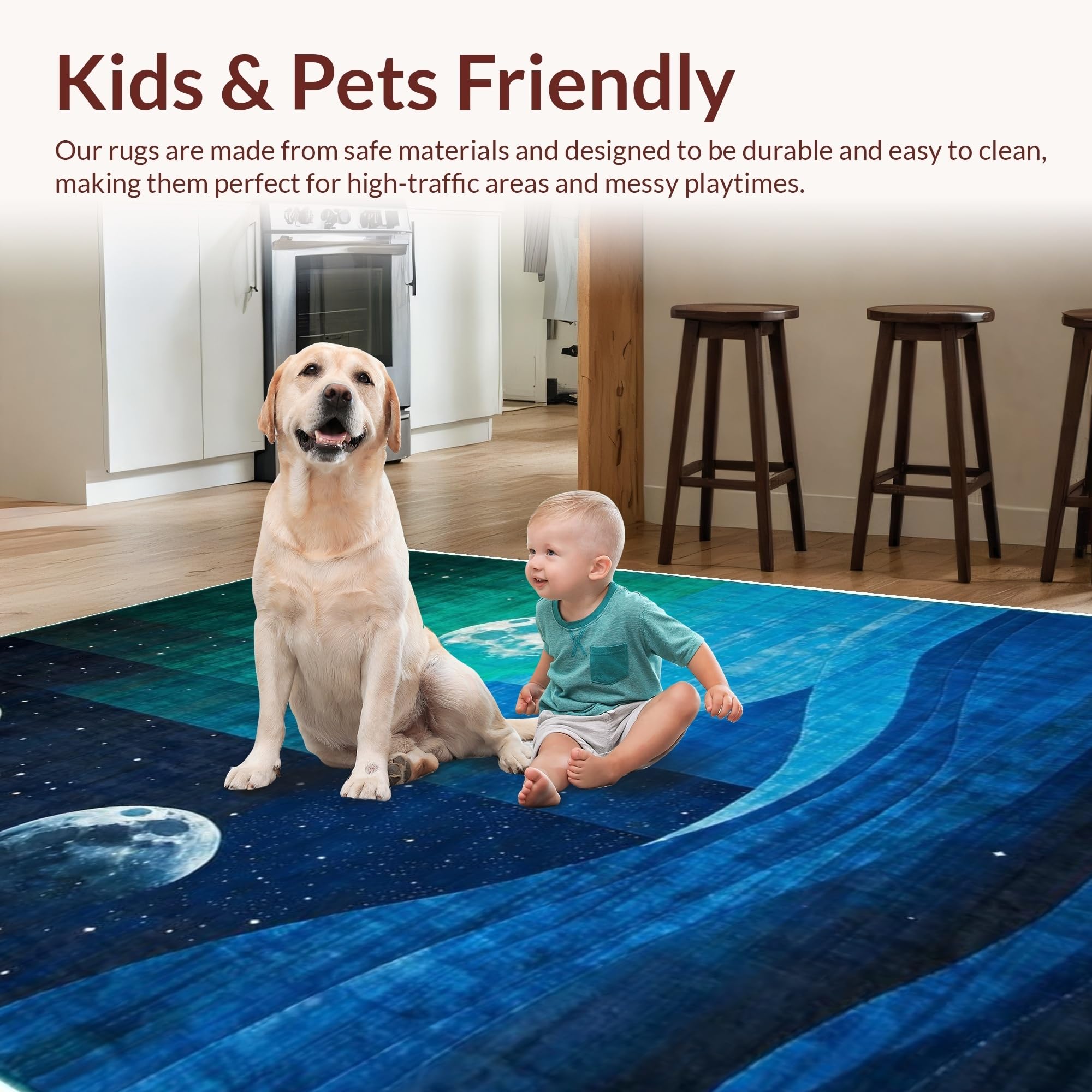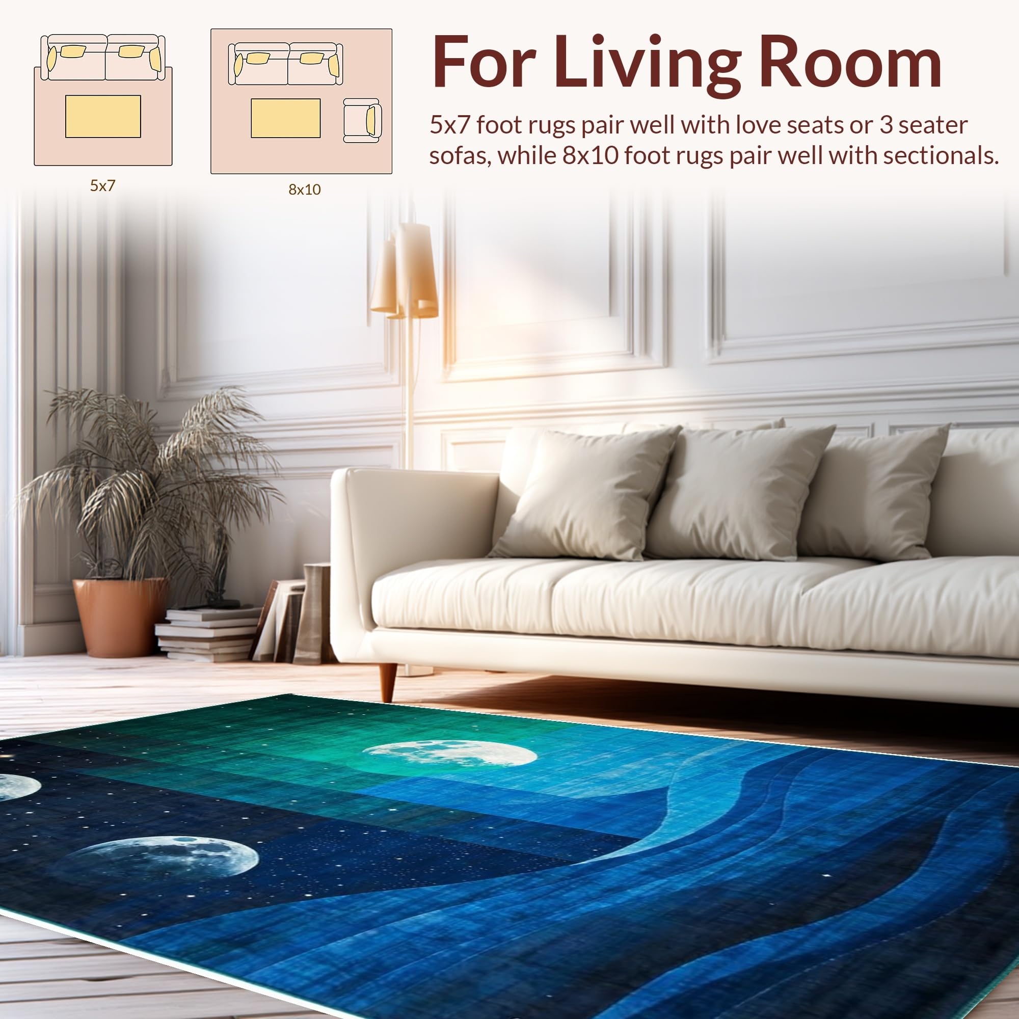 Ultra Soft Area Rug, Non Slip, Stain Resistant, Washable Area Rugs for Living Room, Bedroom, Stylish Earthy Abstract Motif(Blue) Overview: