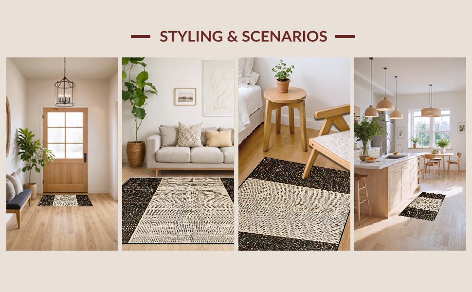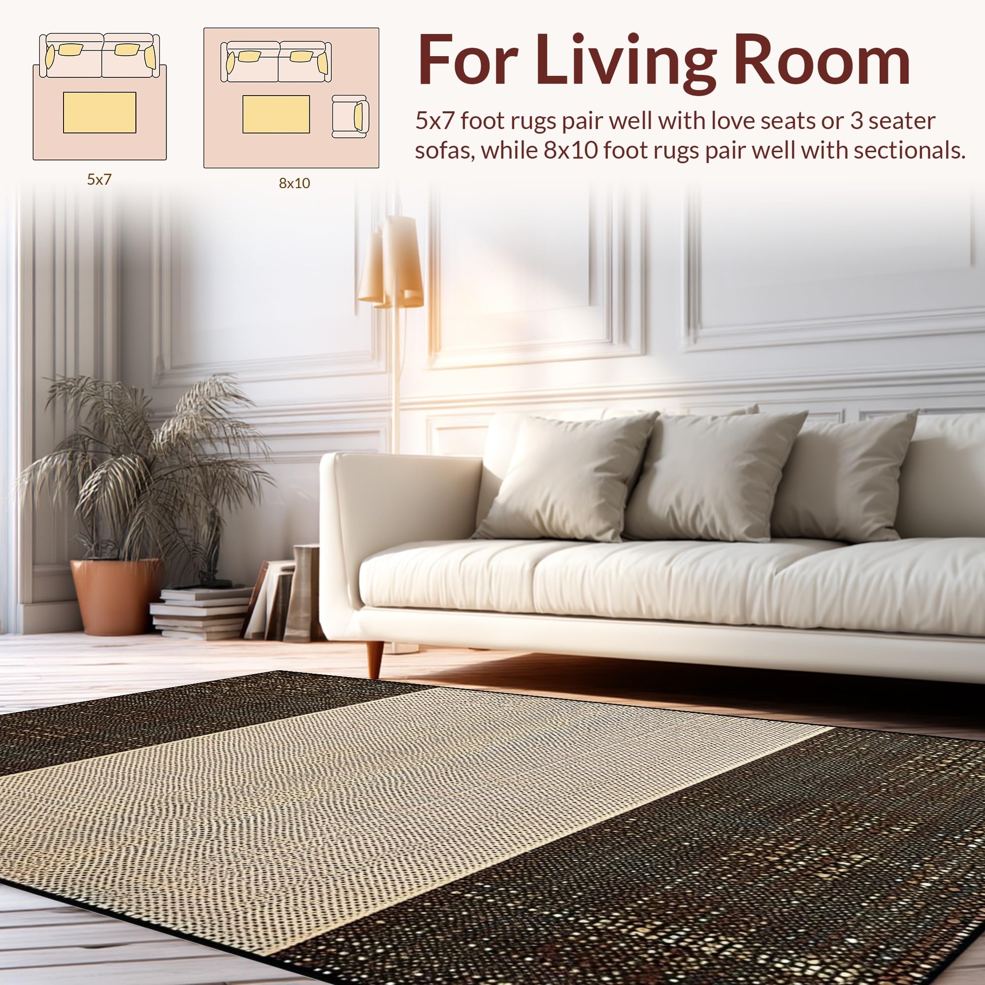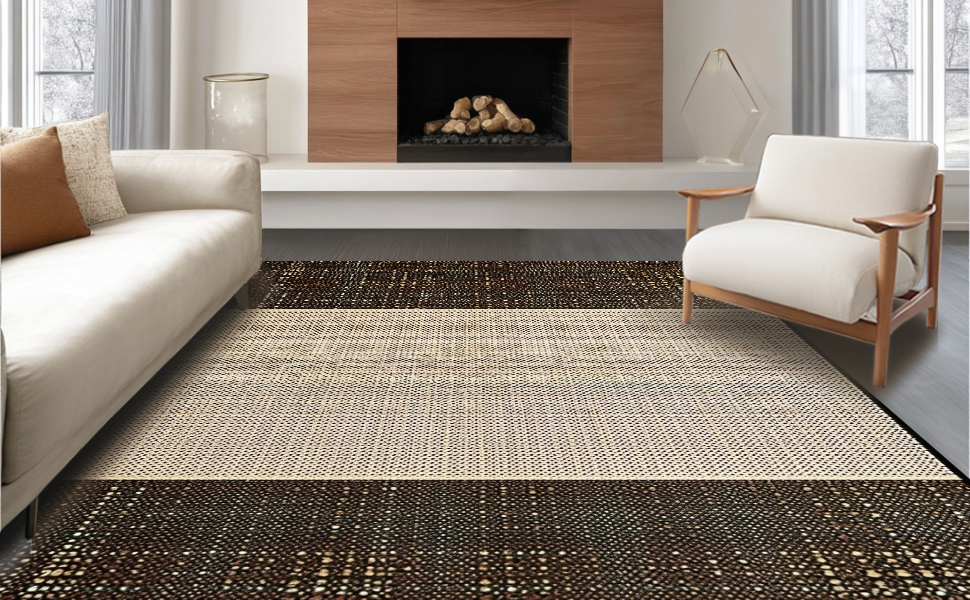 Ultra Soft Area Rug, Non Slip, Stain Resistant, Washable Area Rugs for Living Room, Bedroom, Stylish Earthy Toned Graphic Motif(Beige) Overview: