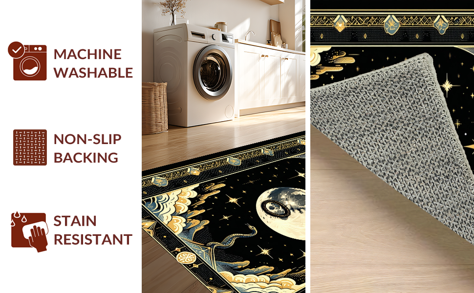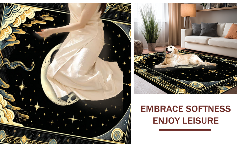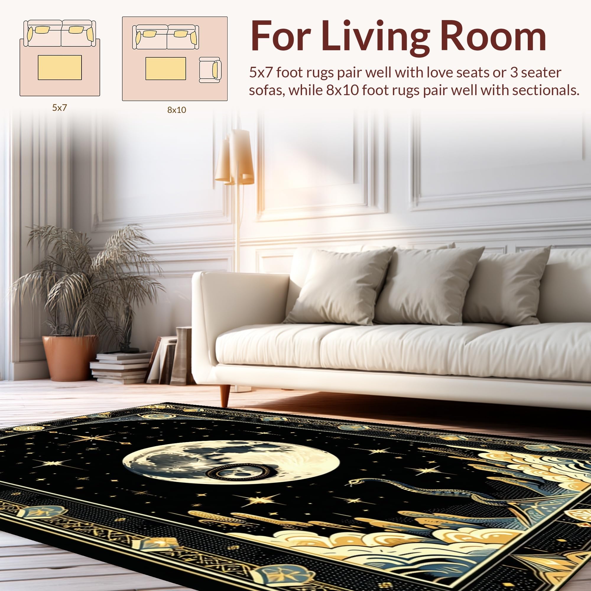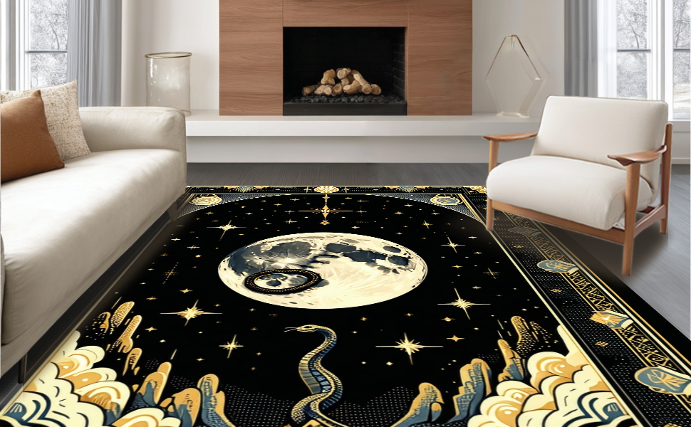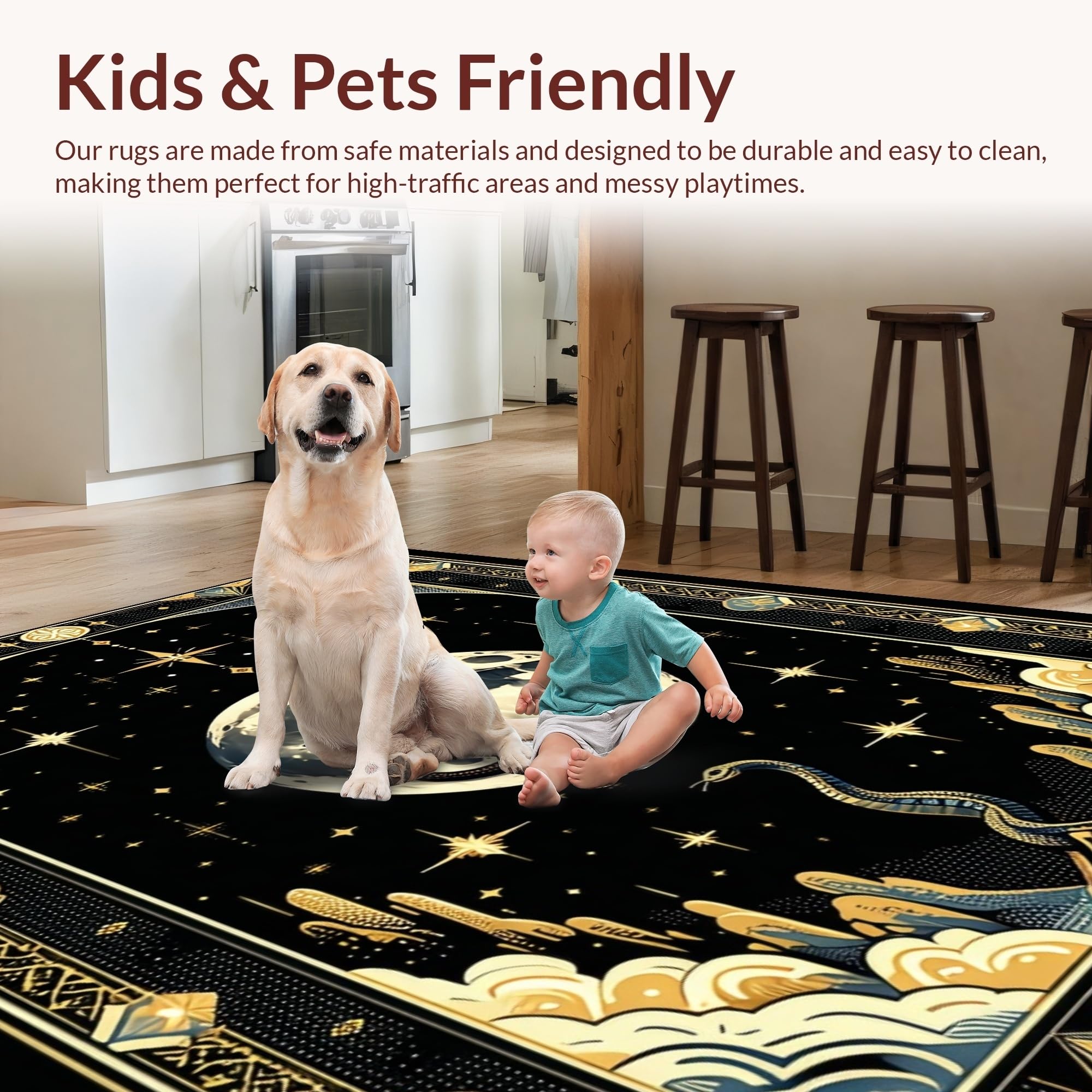 Ultra Soft Area Rug, Non Slip, Stain Resistant, Washable Area Rugs for Living Room, Bedroom, Stylish Ethereal Patterned Rug(Black) Overview: