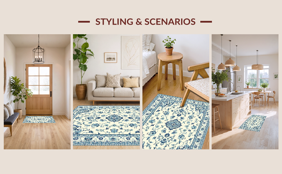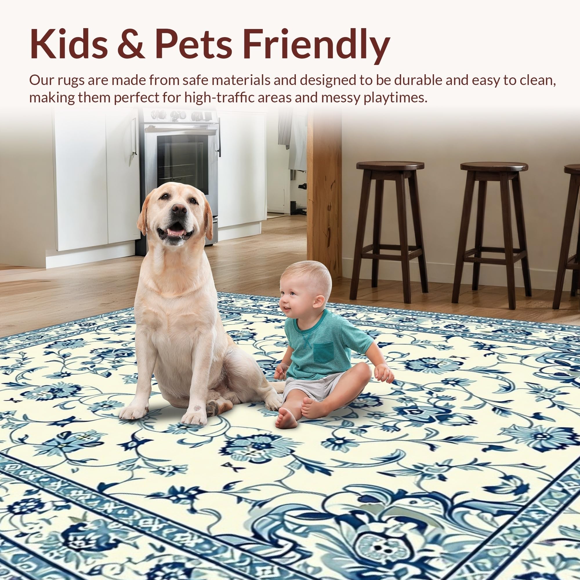 Ultra Soft Area Rug, Non Slip, Stain Resistant, Washable Area Rugs for Living Room, Bedroom, Stylish Floral Diamond Composition(Beige) Overview:
