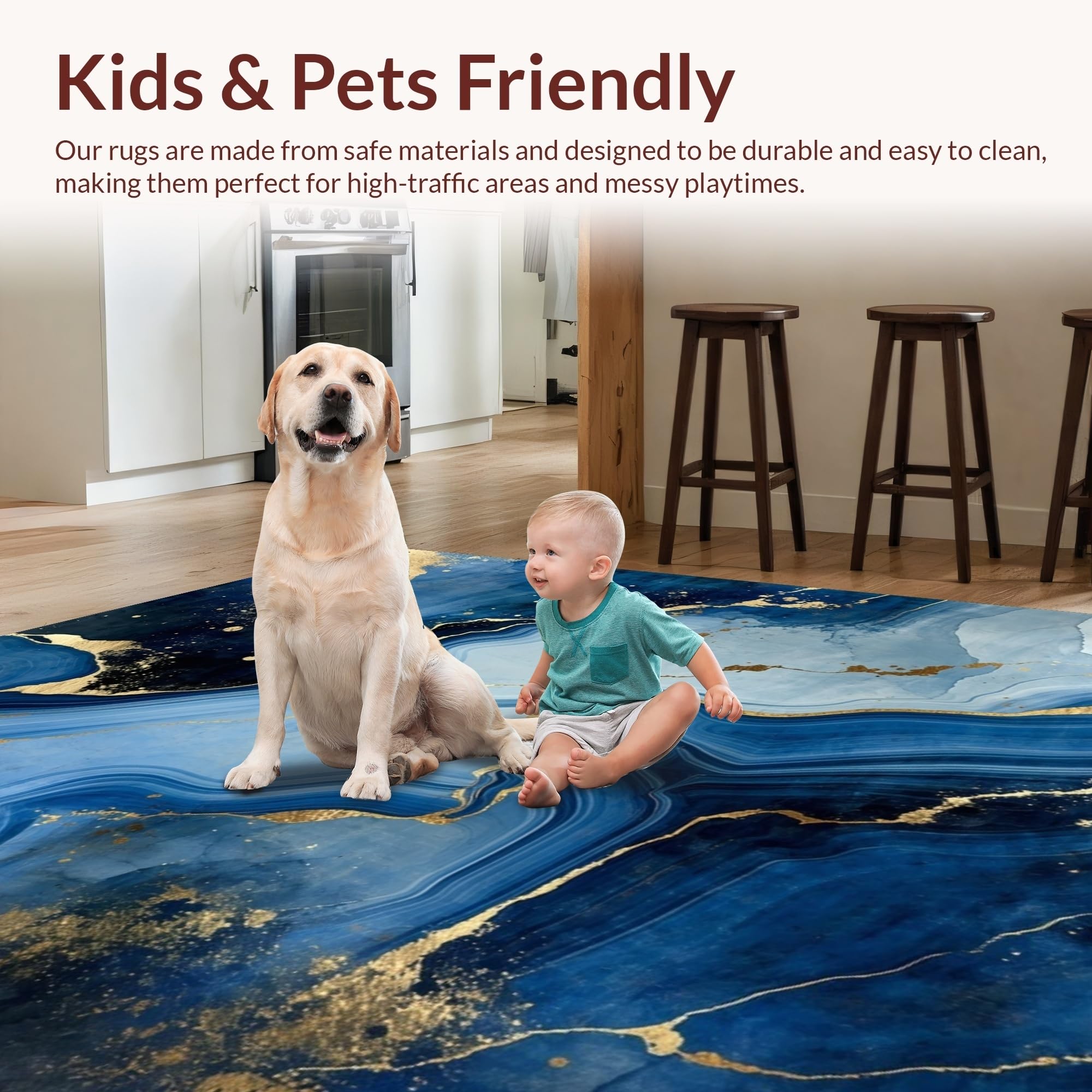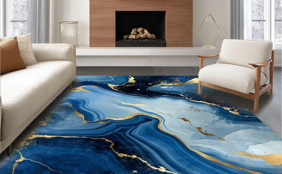 Ultra Soft Area Rug, Non Slip, Stain Resistant, Washable Area Rugs for Living Room, Bedroom, Stylish Fluid Geometric Arrangement(Blue) Overview: