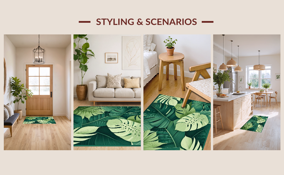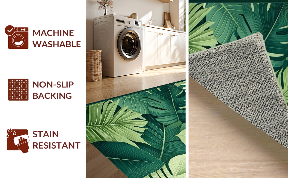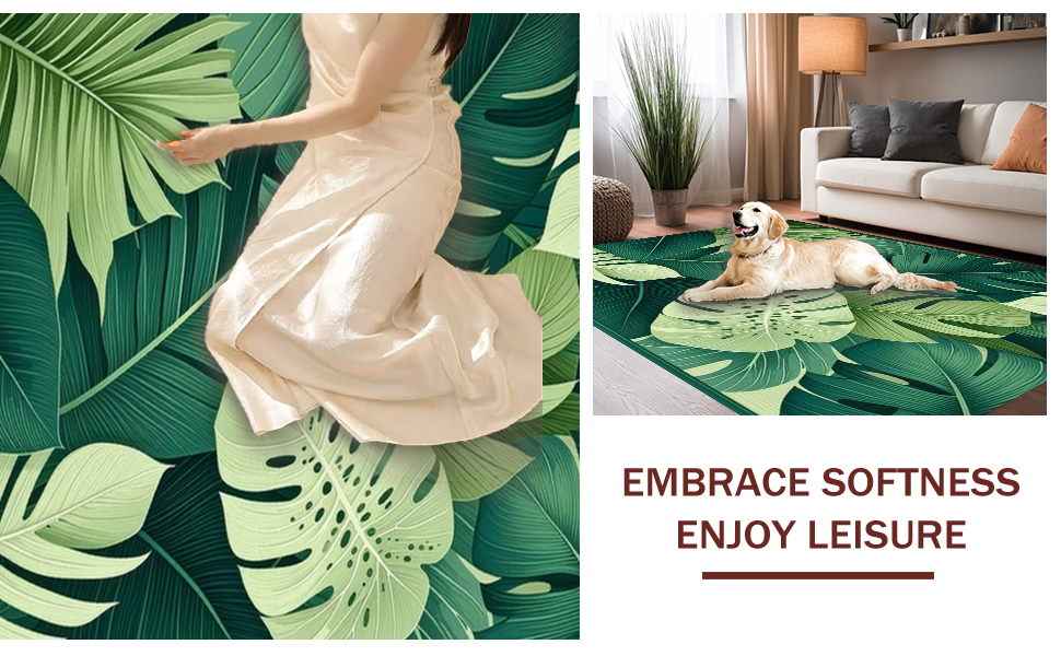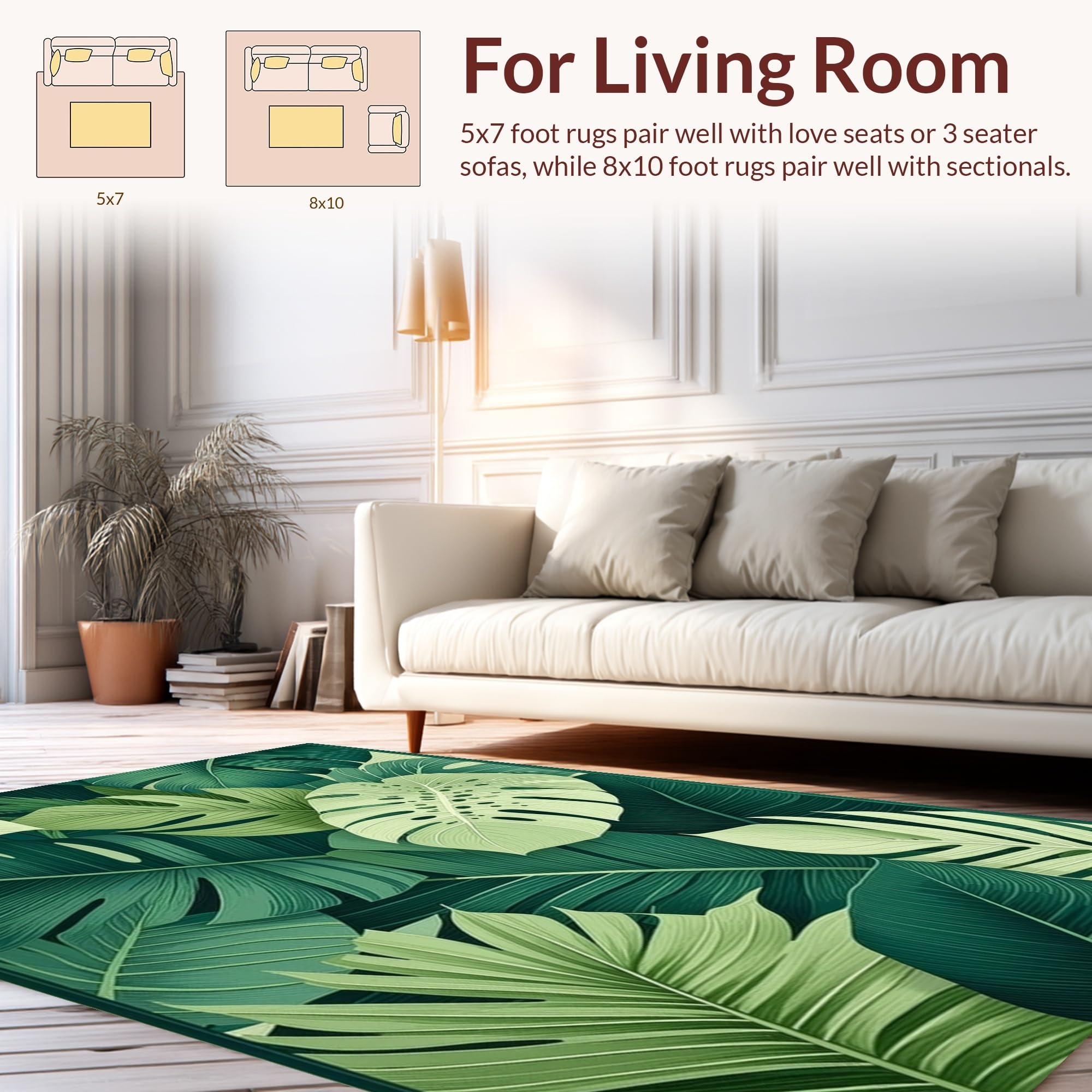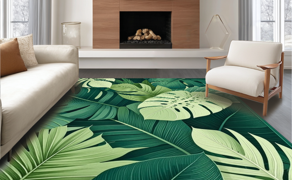 Ultra Soft Area Rug, Non Slip, Stain Resistant, Washable Area Rugs for Living Room, Bedroom, Stylish Fresh Leafy Print(Green) Overview: