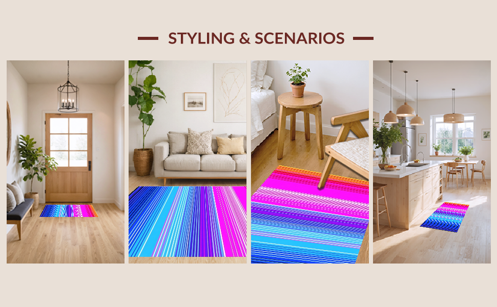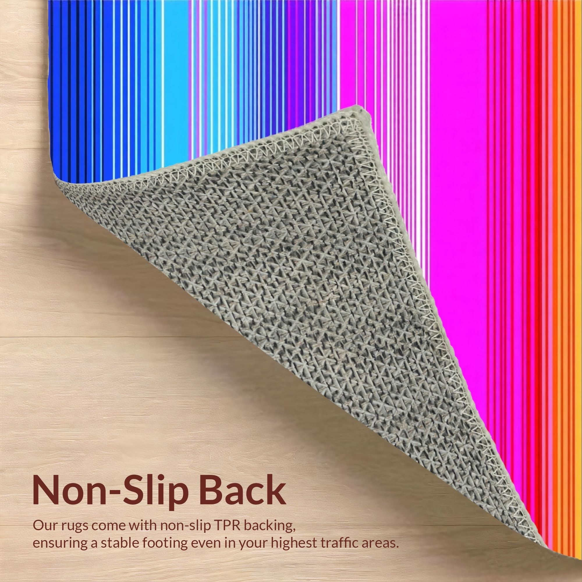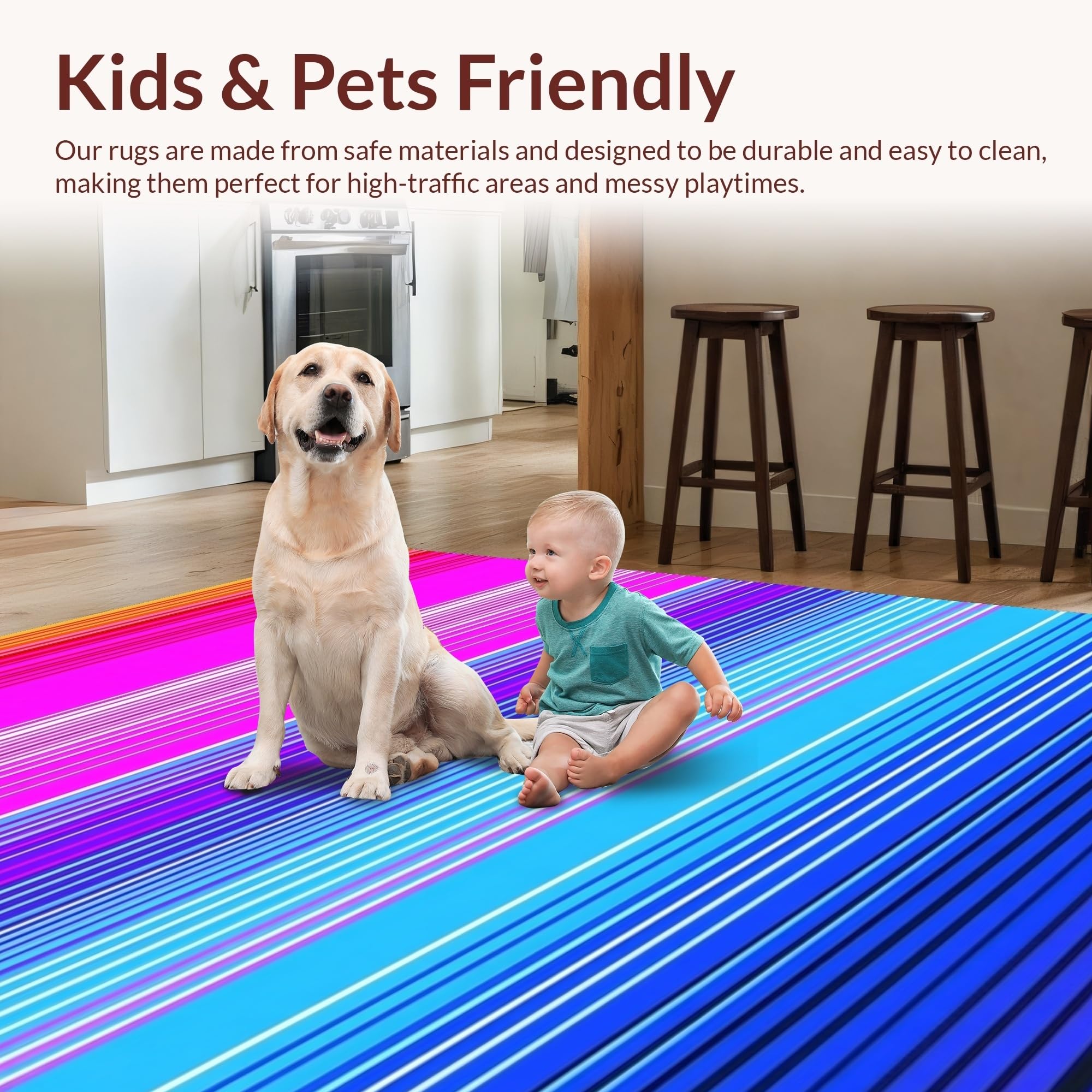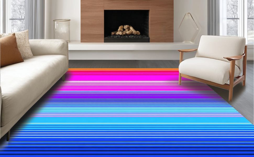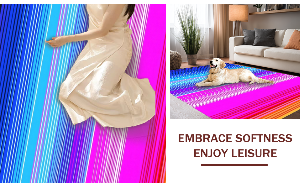 Ultra Soft Area Rug, Non Slip, Stain Resistant, Washable Area Rugs for Living Room, Bedroom, Stylish Layered Rainbow Hues(Pink) Overview: