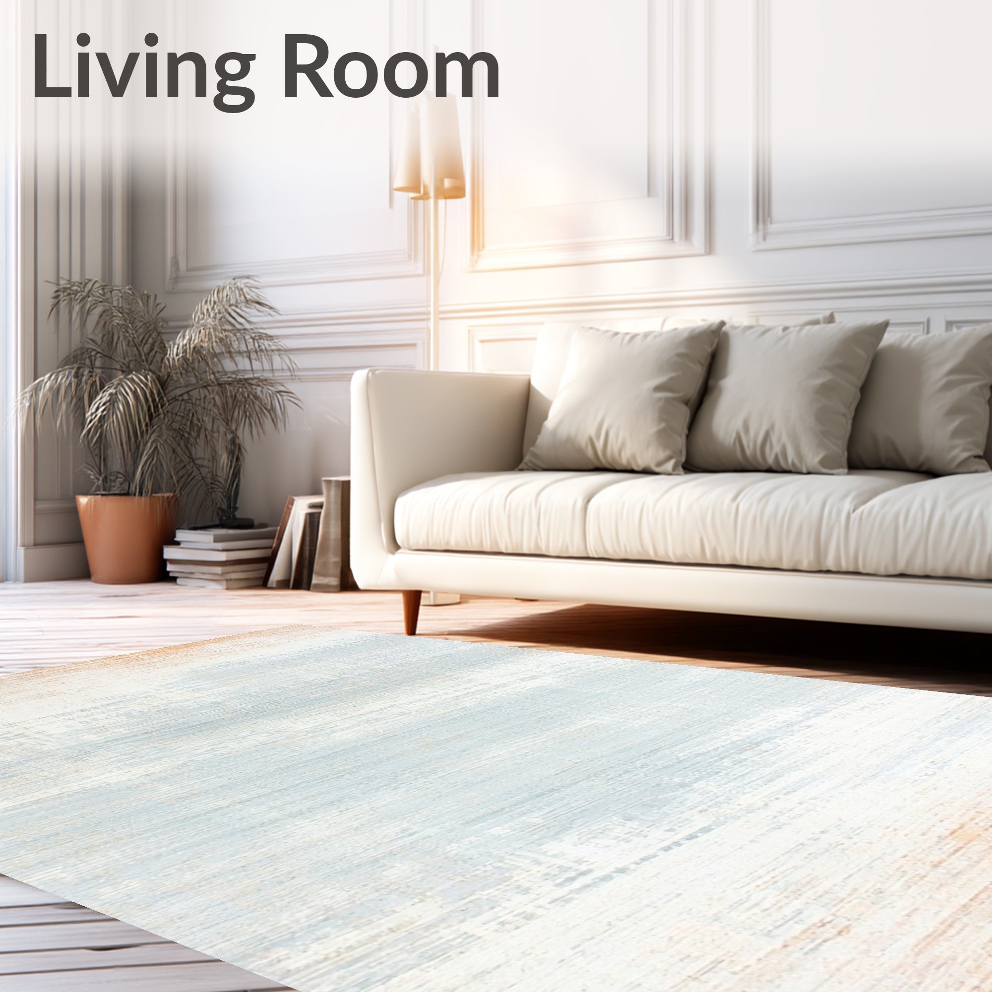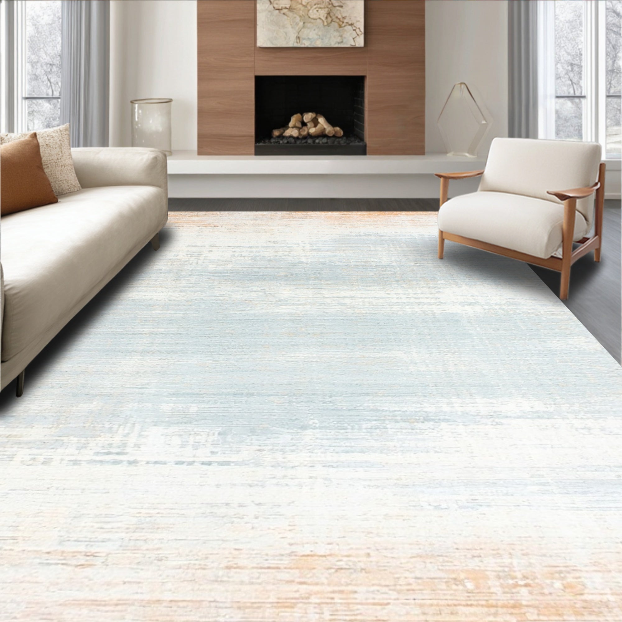 Ultra Soft Area Rug, Non Slip, Stain Resistant, Washable Area Rugs for Living Room, Bedroom, Stylish Light Blue Area Subtle Orange Accents(Beige) Overview: