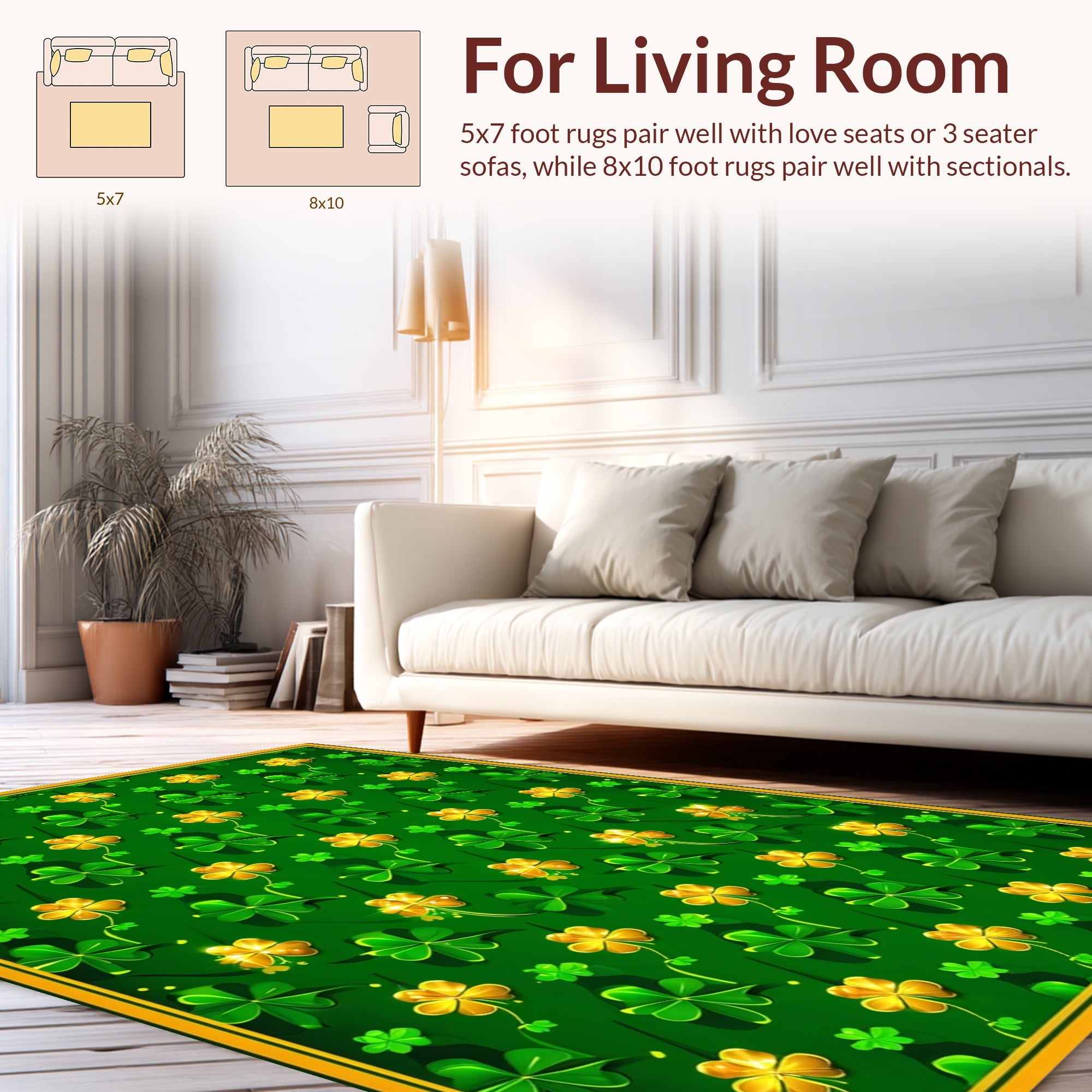Flatwoven High Traffic Area Rug, Stylish Lucky Visual, Non Slip, Stain Resistant, Washable Area Rugs for Living Room, Bedroom (Green) Overview: