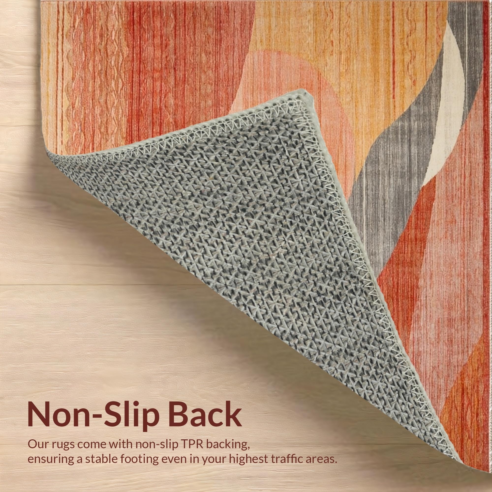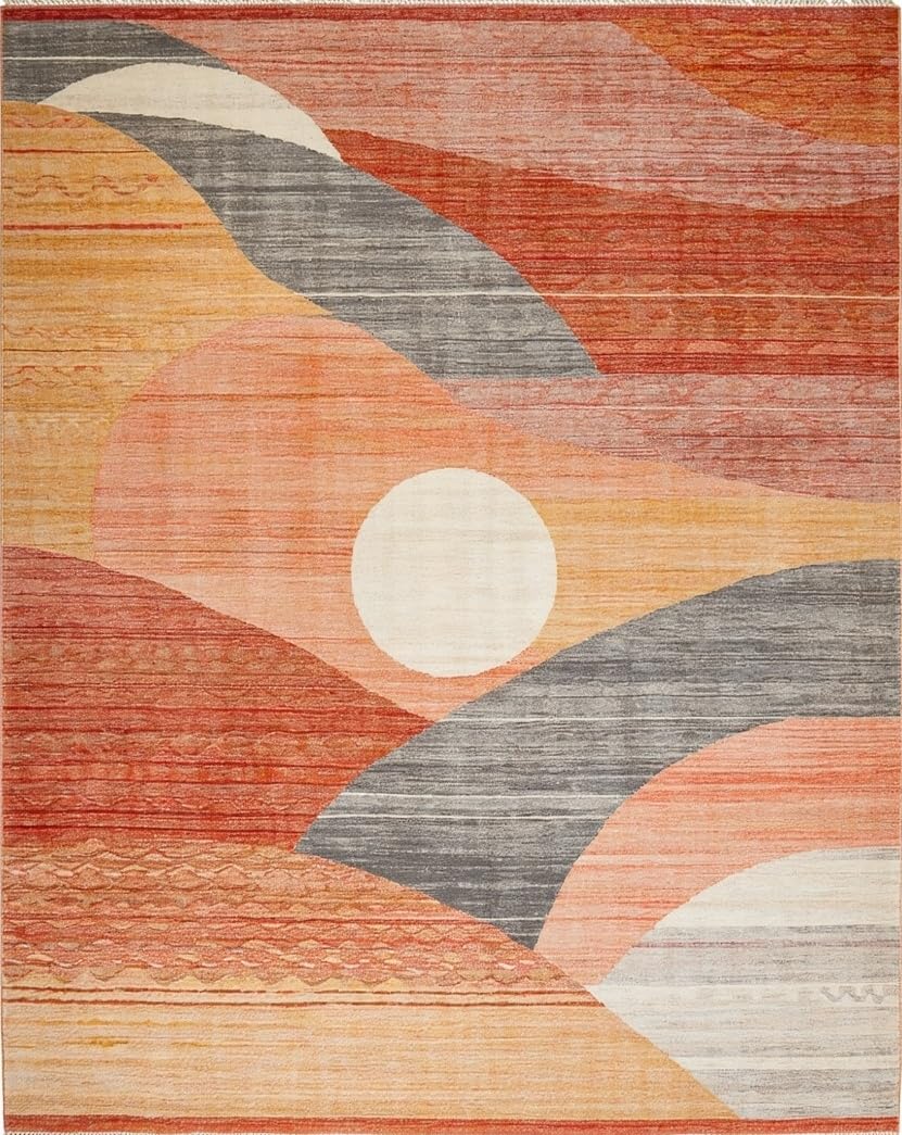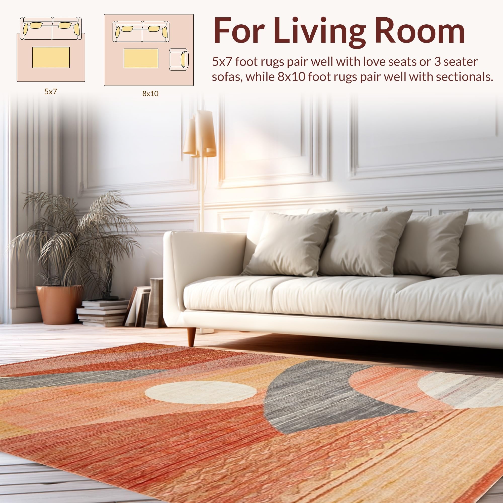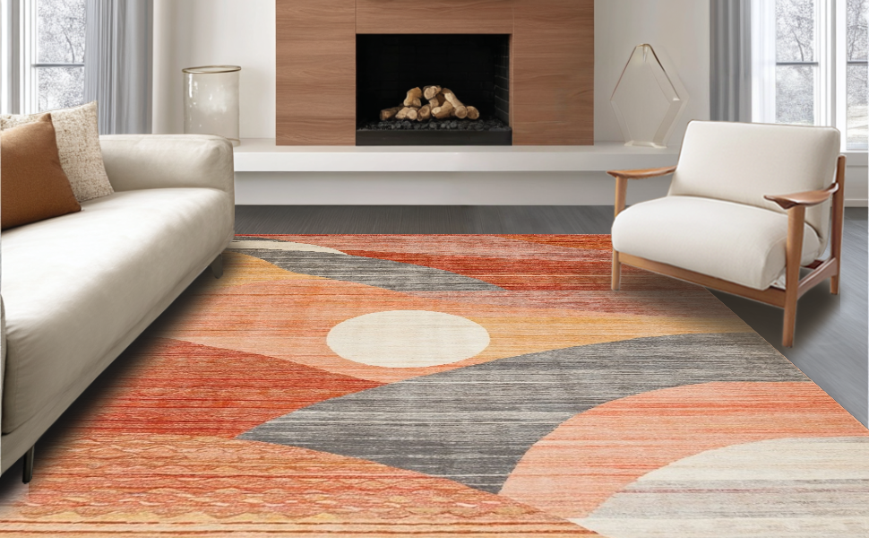 Ultra Soft Area Rug, Non Slip, Stain Resistant, Washable Area Rugs for Living Room, Bedroom, Stylish Minimalist Circular Design(Red) Overview: