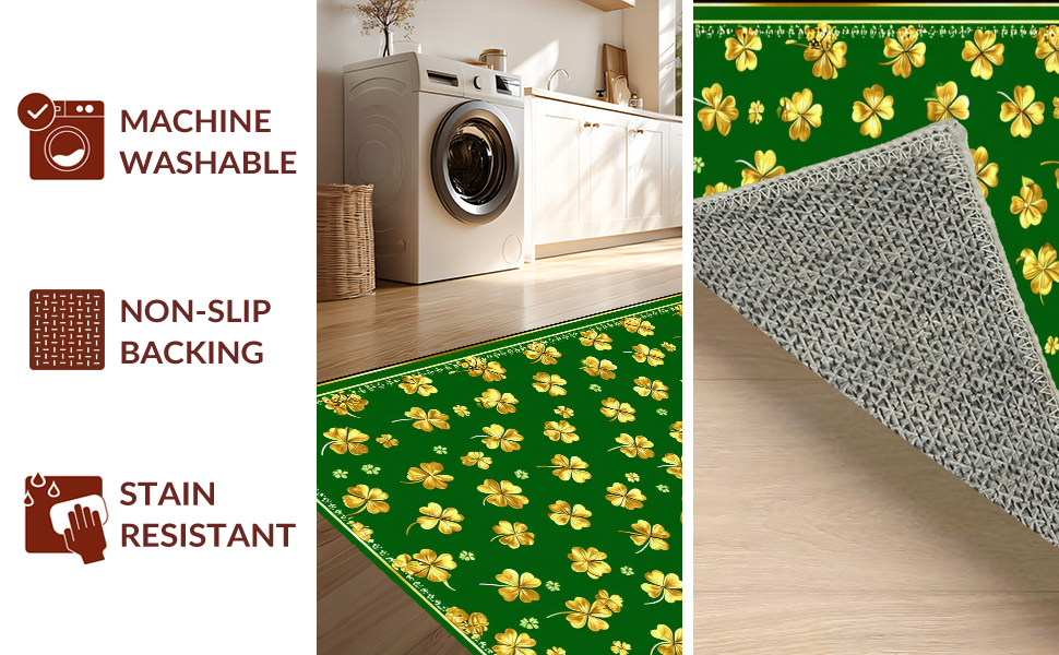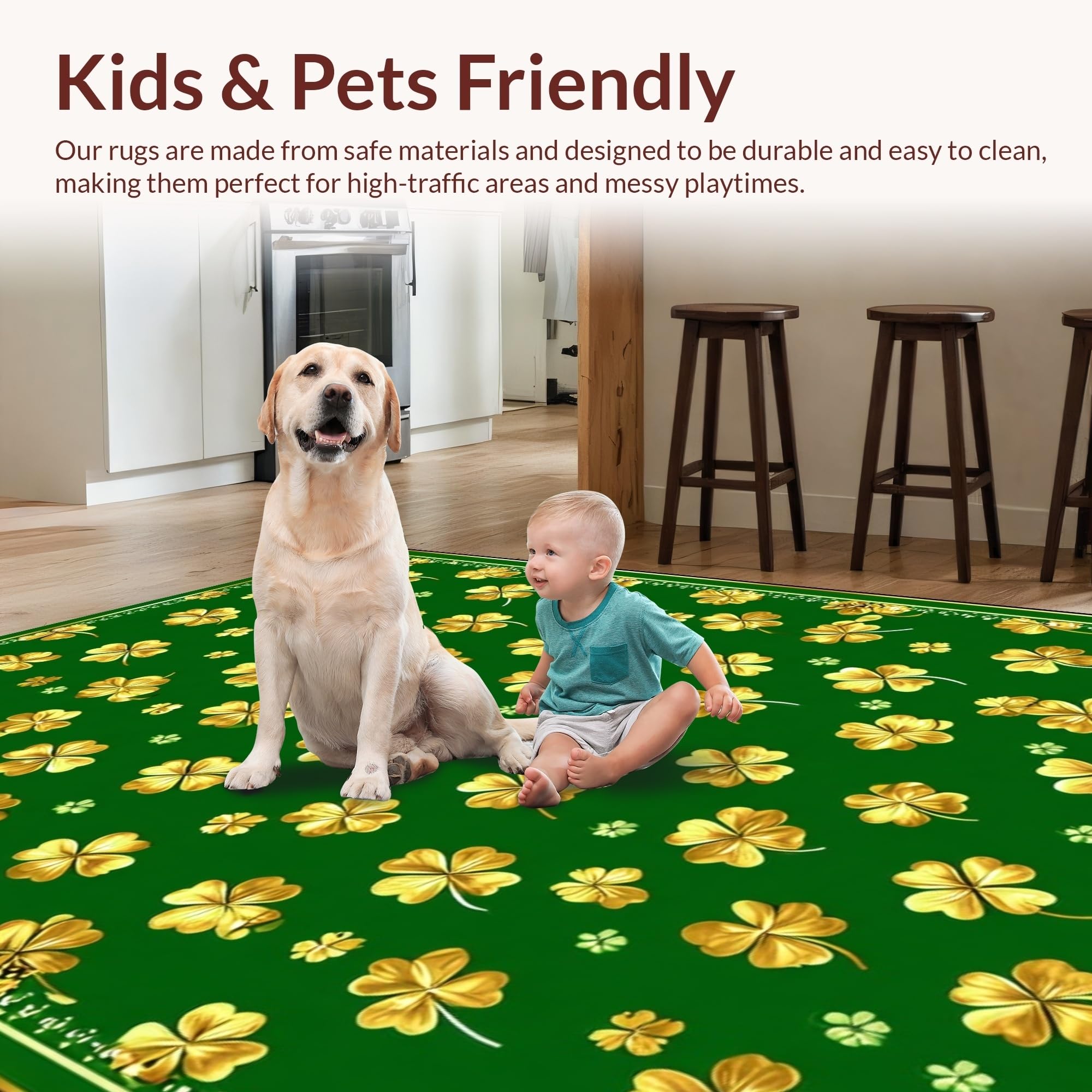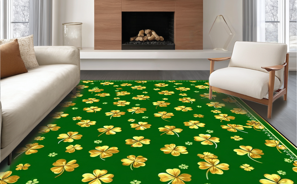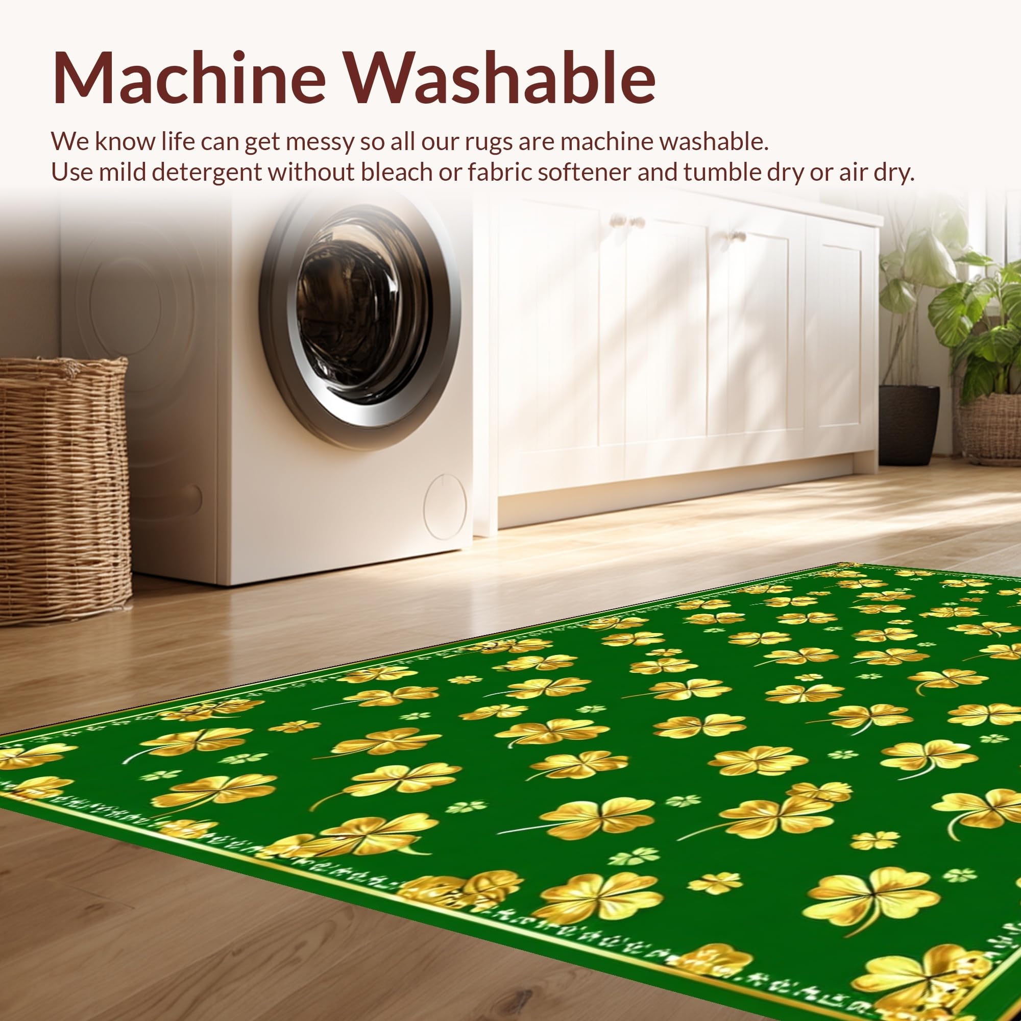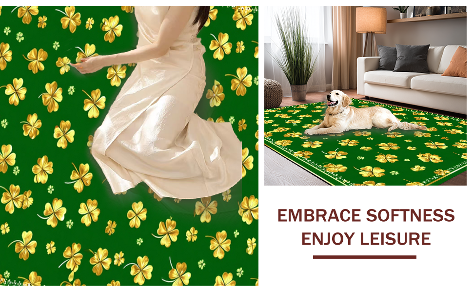 Ultra Soft Area Rug, Non Slip, Stain Resistant, Washable Area Rugs for Living Room, Bedroom, Stylish Minimalist Clover Forms(Green) Overview: