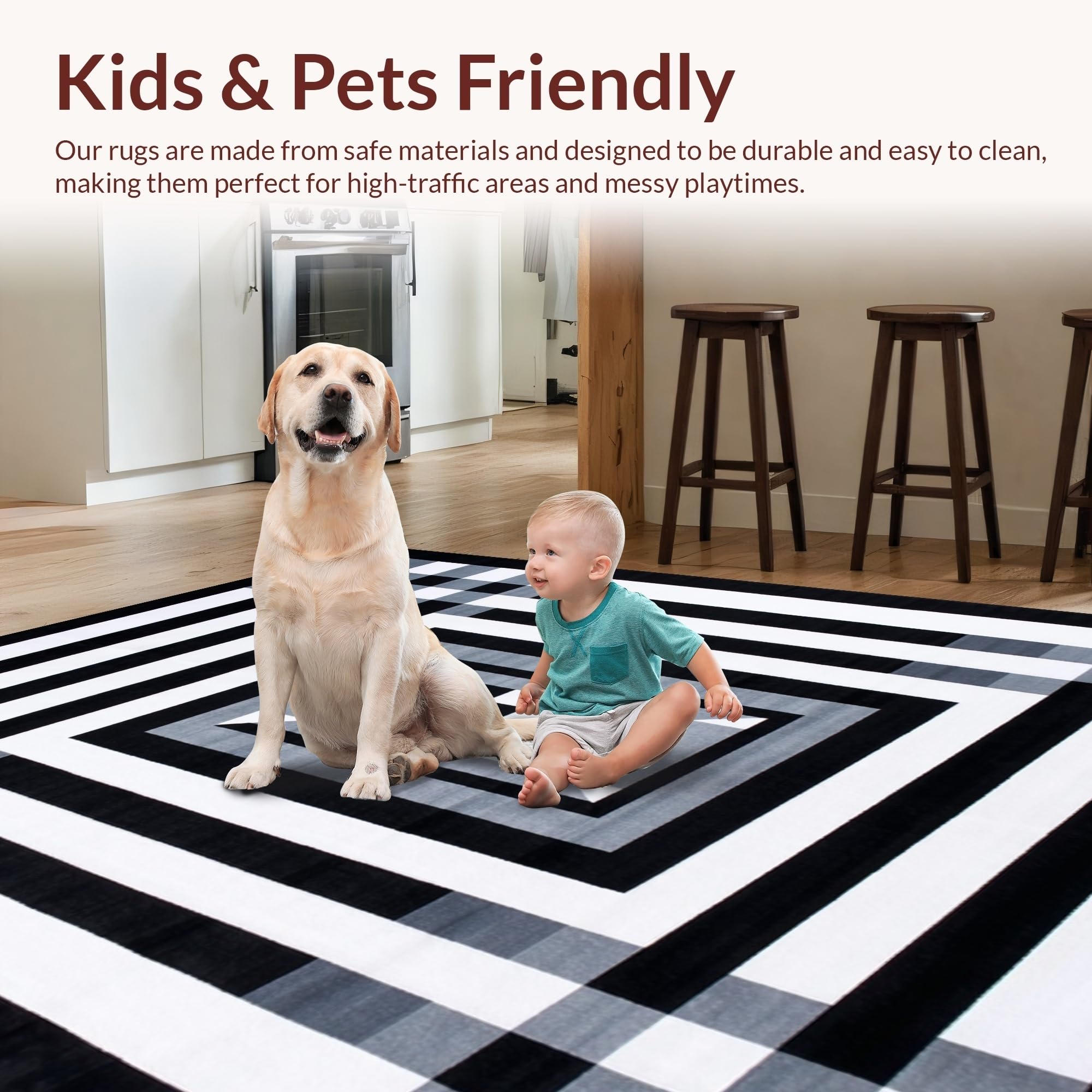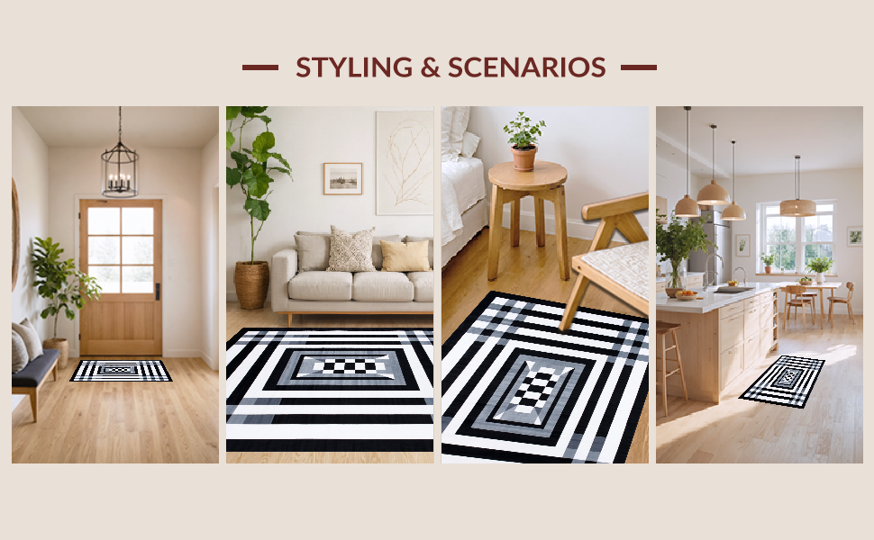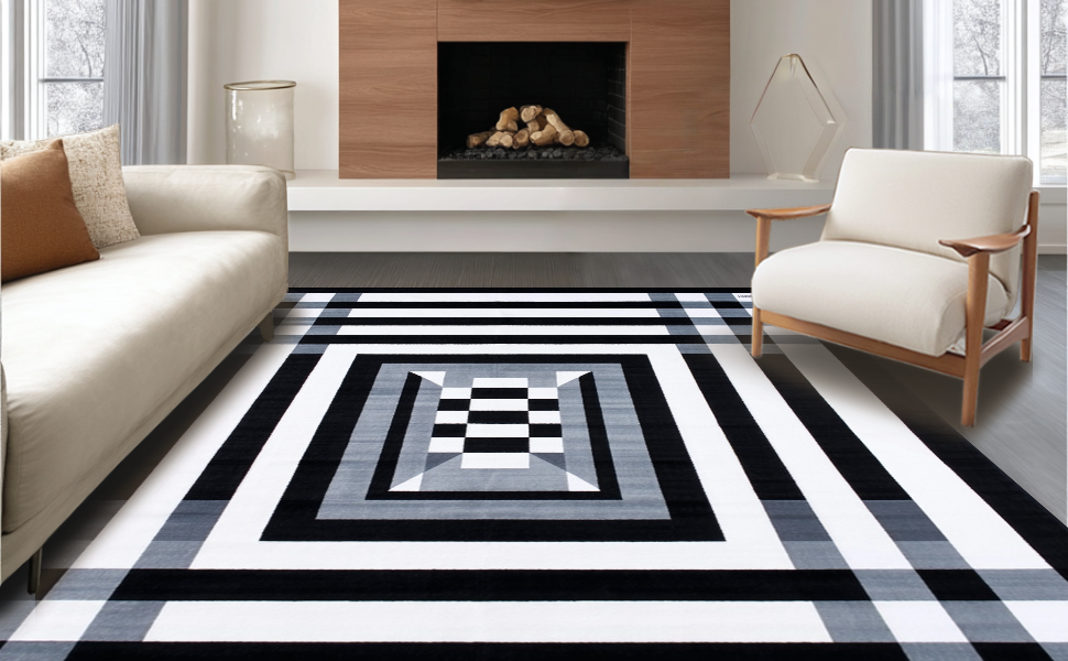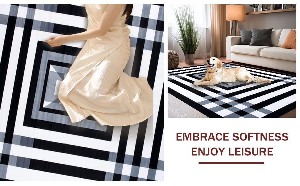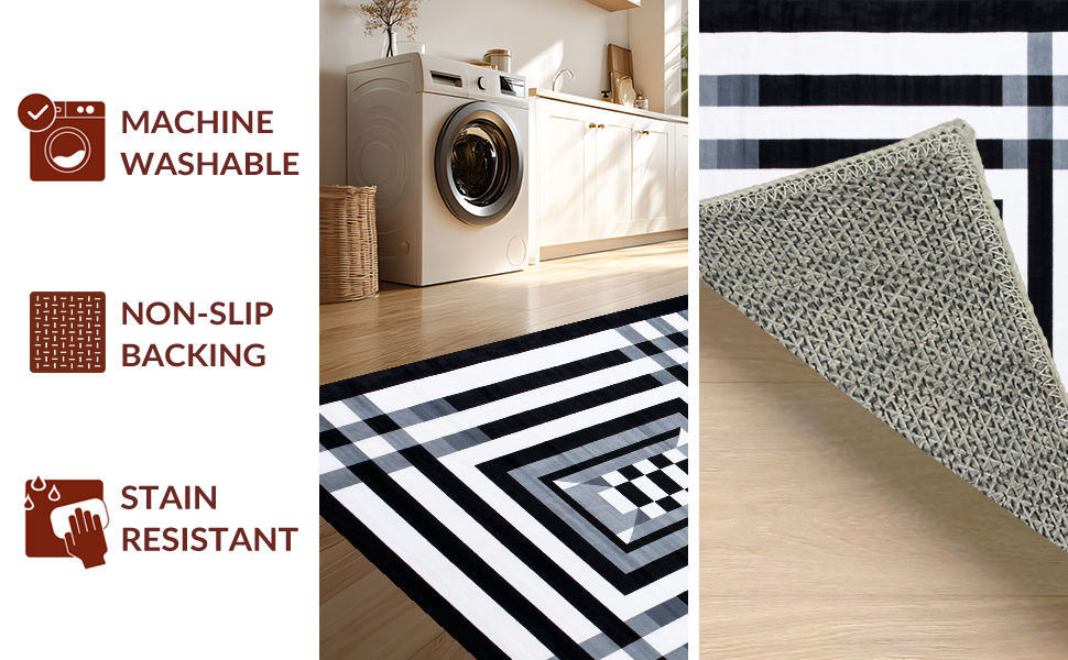 Ultra Soft Area Rug, Non Slip, Stain Resistant, Washable Area Rugs for Living Room, Bedroom, Stylish Minimalist Shaggy Pattern(Black) Overview: