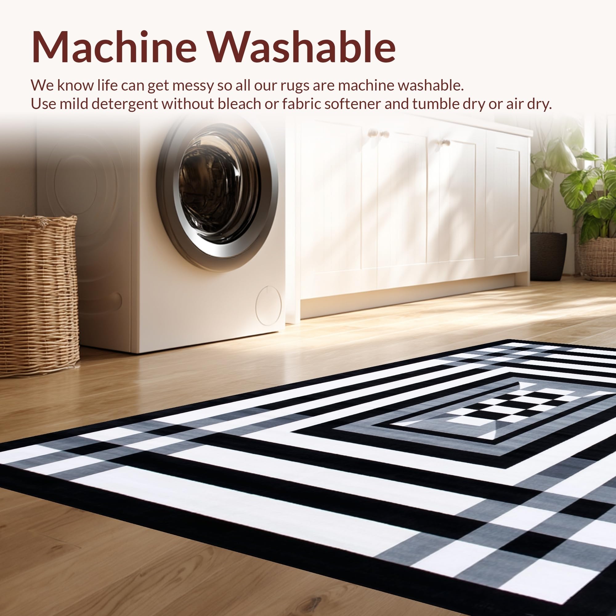 - Machine Washable: Our rugs can be easily thrown in the wash machine.