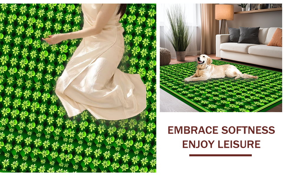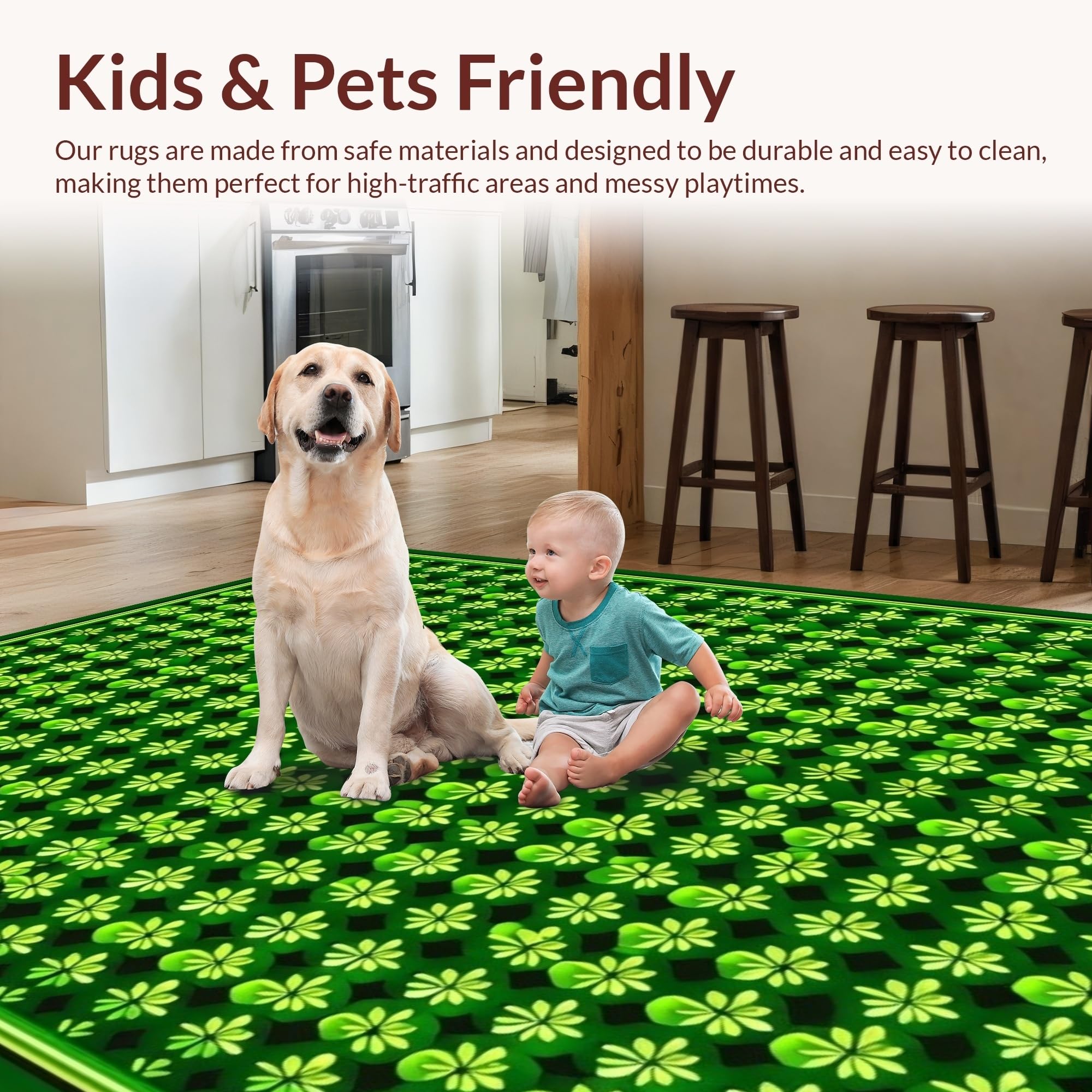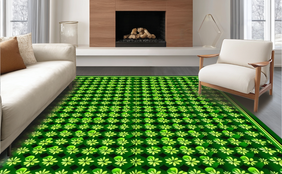 Ultra Soft Area Rug, Non Slip, Stain Resistant, Washable Area Rugs for Living Room, Bedroom, Stylish Minimalist Shamrock Graphic Rug(Green) Overview: