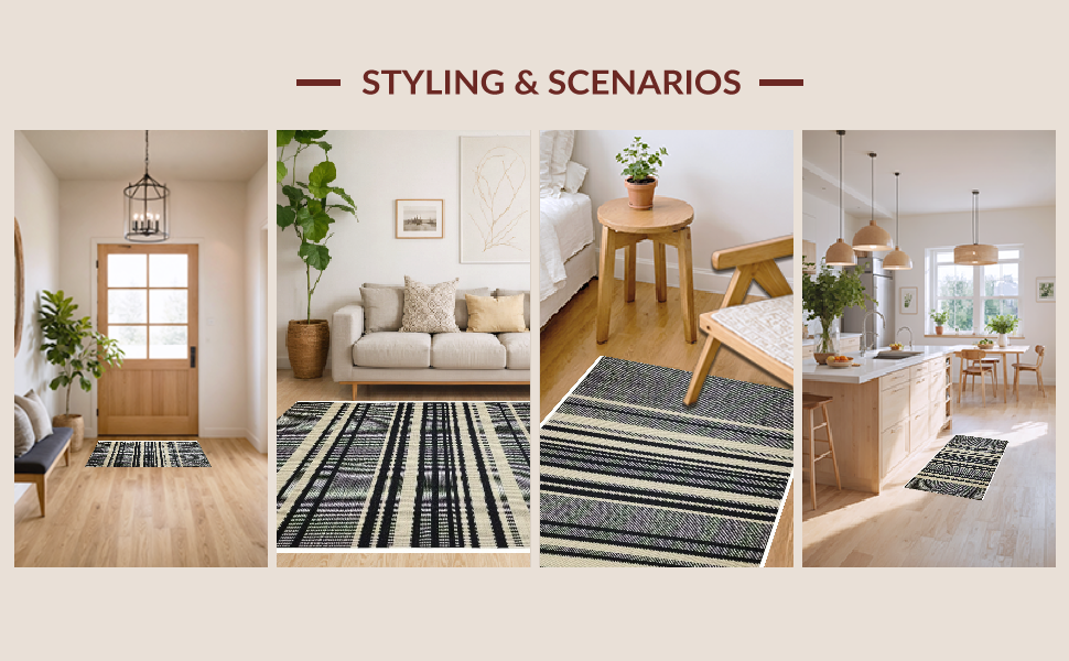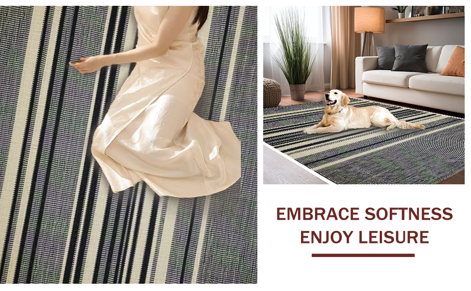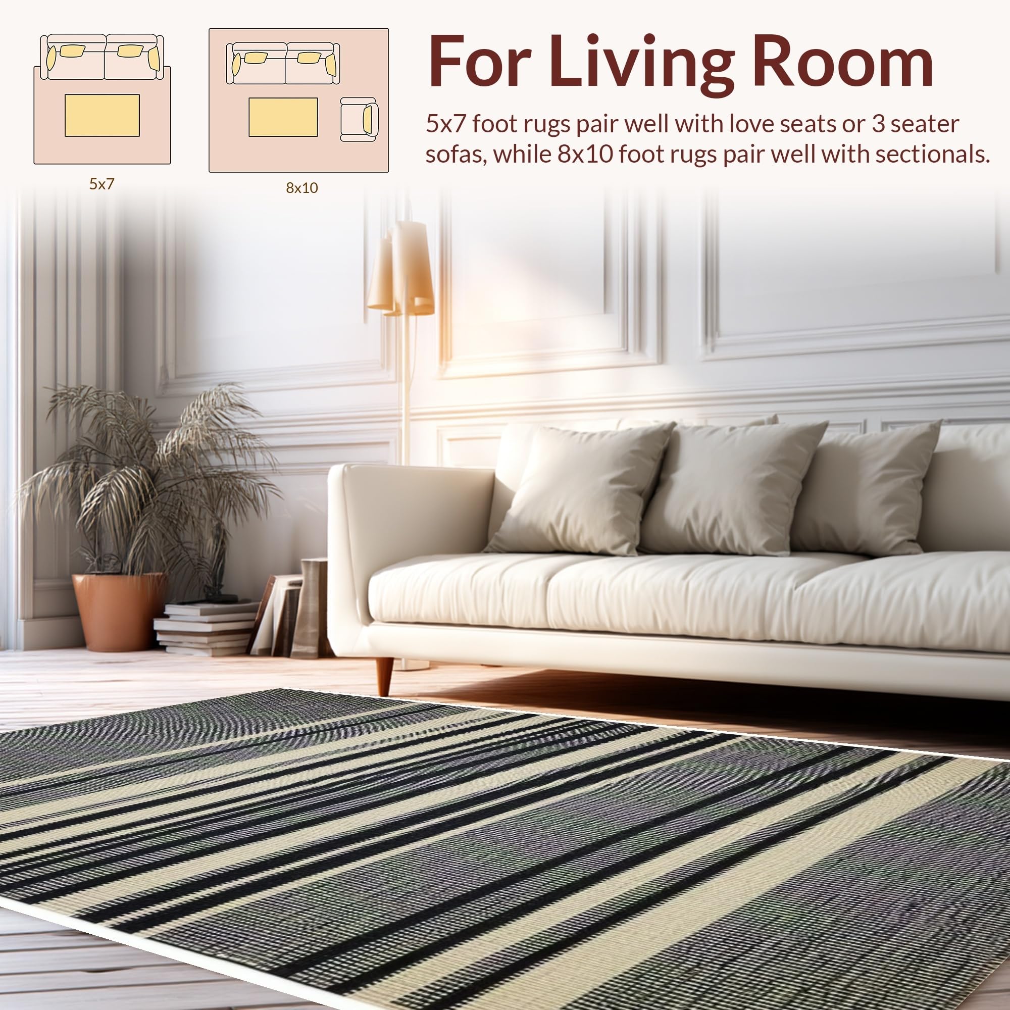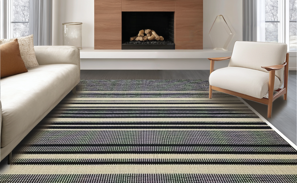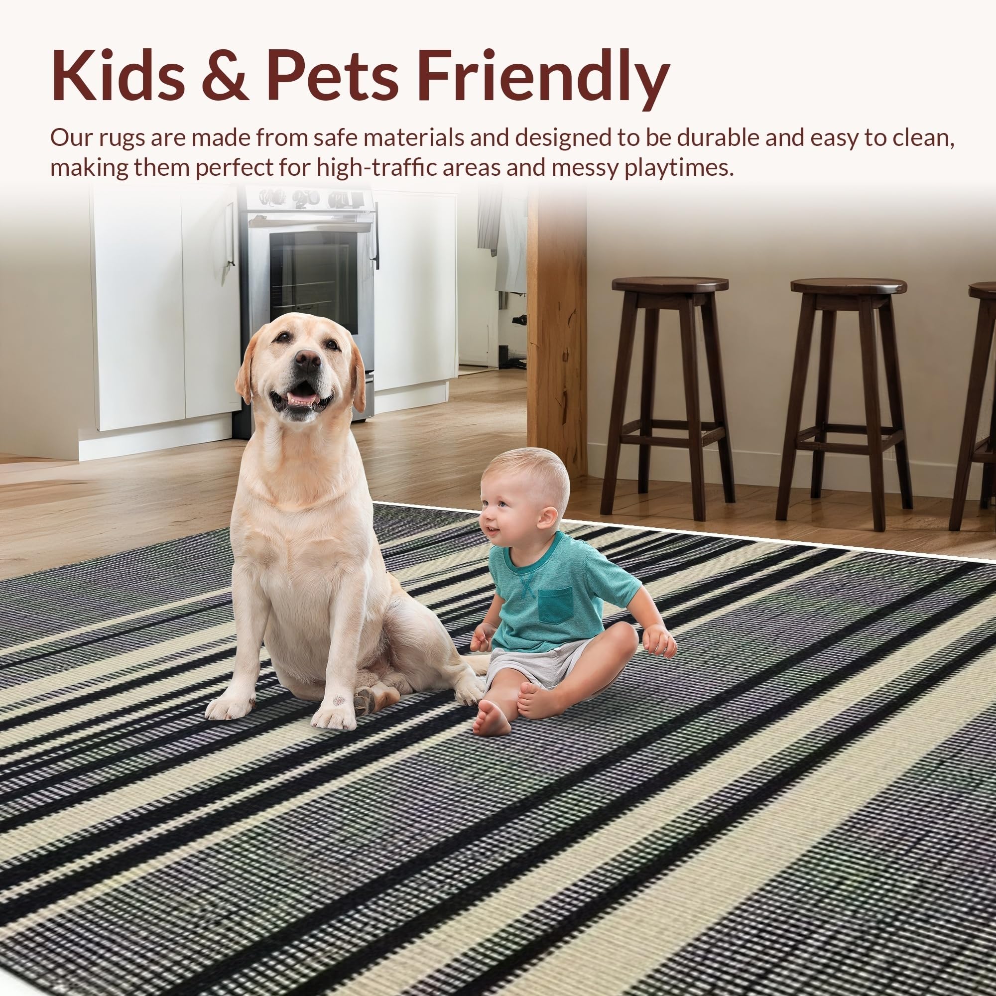 Ultra Soft Area Rug, Non Slip, Stain Resistant, Washable Area Rugs for Living Room, Bedroom, Stylish Minimalist Striped Aesthetic(Beige) Overview: