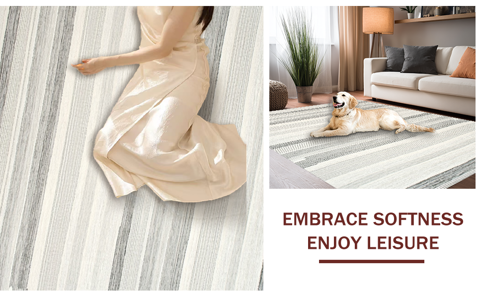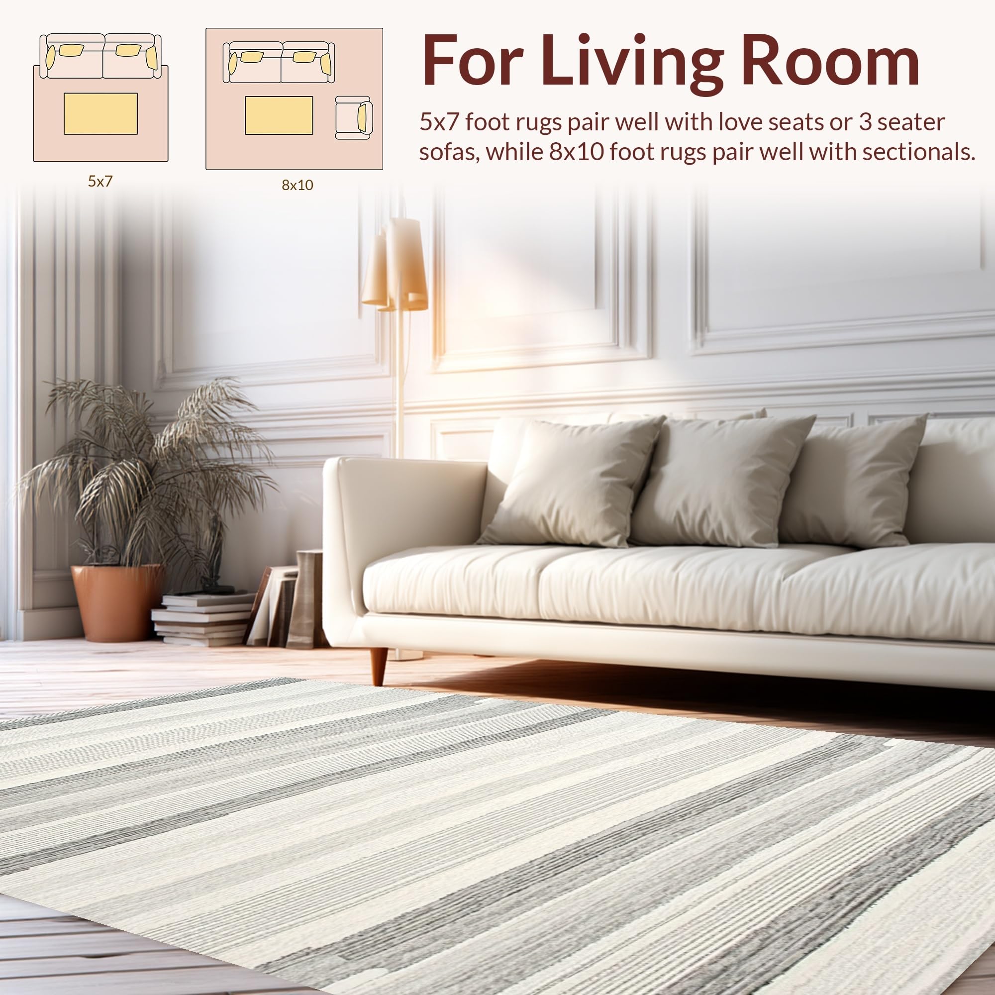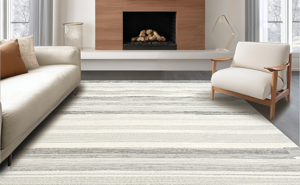 Ultra Soft Area Rug, Non Slip, Stain Resistant, Washable Area Rugs for Living Room, Bedroom, Stylish Minimalist Striped Embellishment(Gray) Overview: