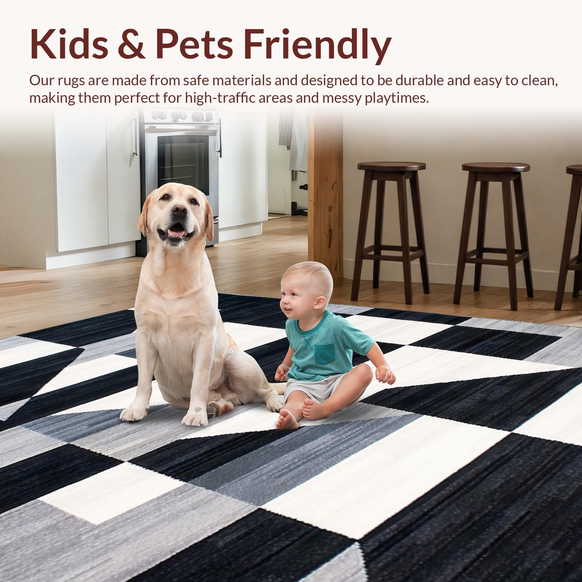 Ultra Soft Area Rug, Non Slip, Stain Resistant, Washable Area Rugs for Living Room, Bedroom, Stylish Minimalist Tiled Arrangement(Gray) Overview:
