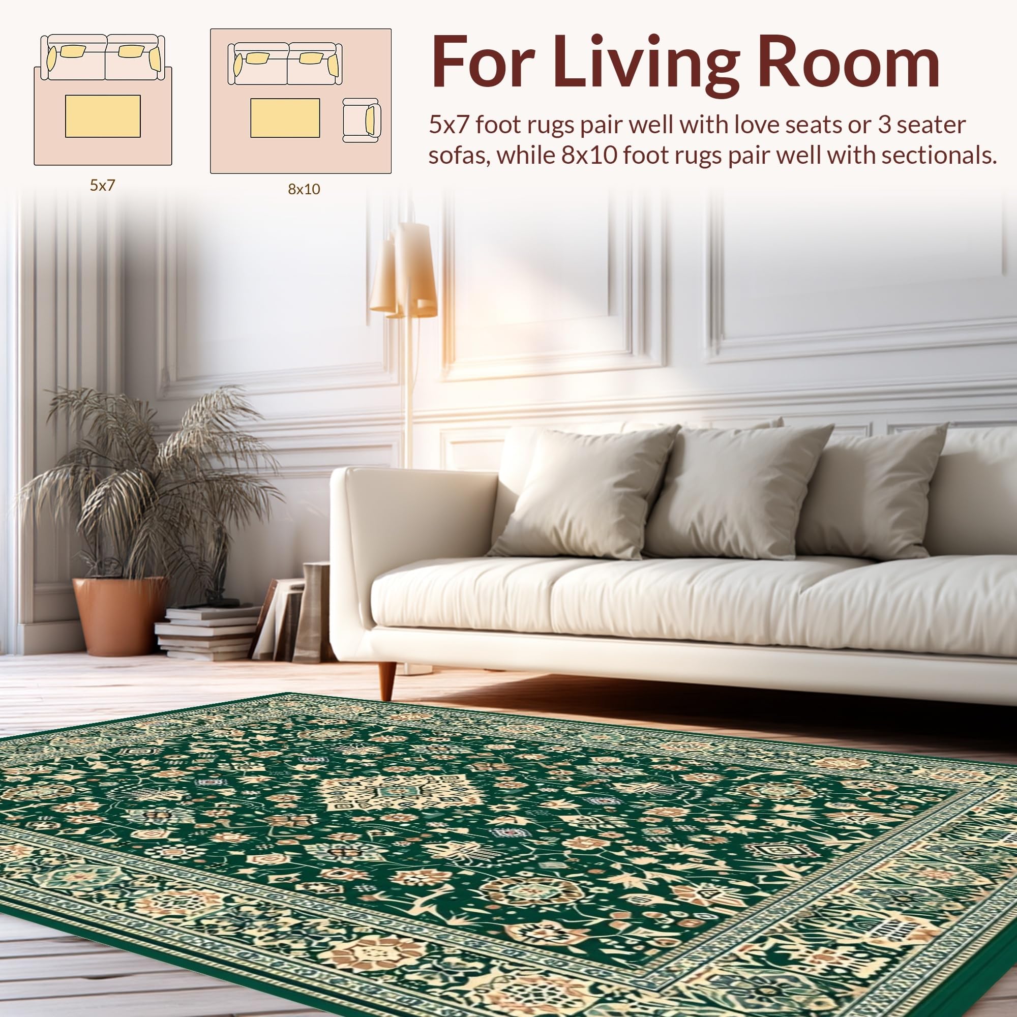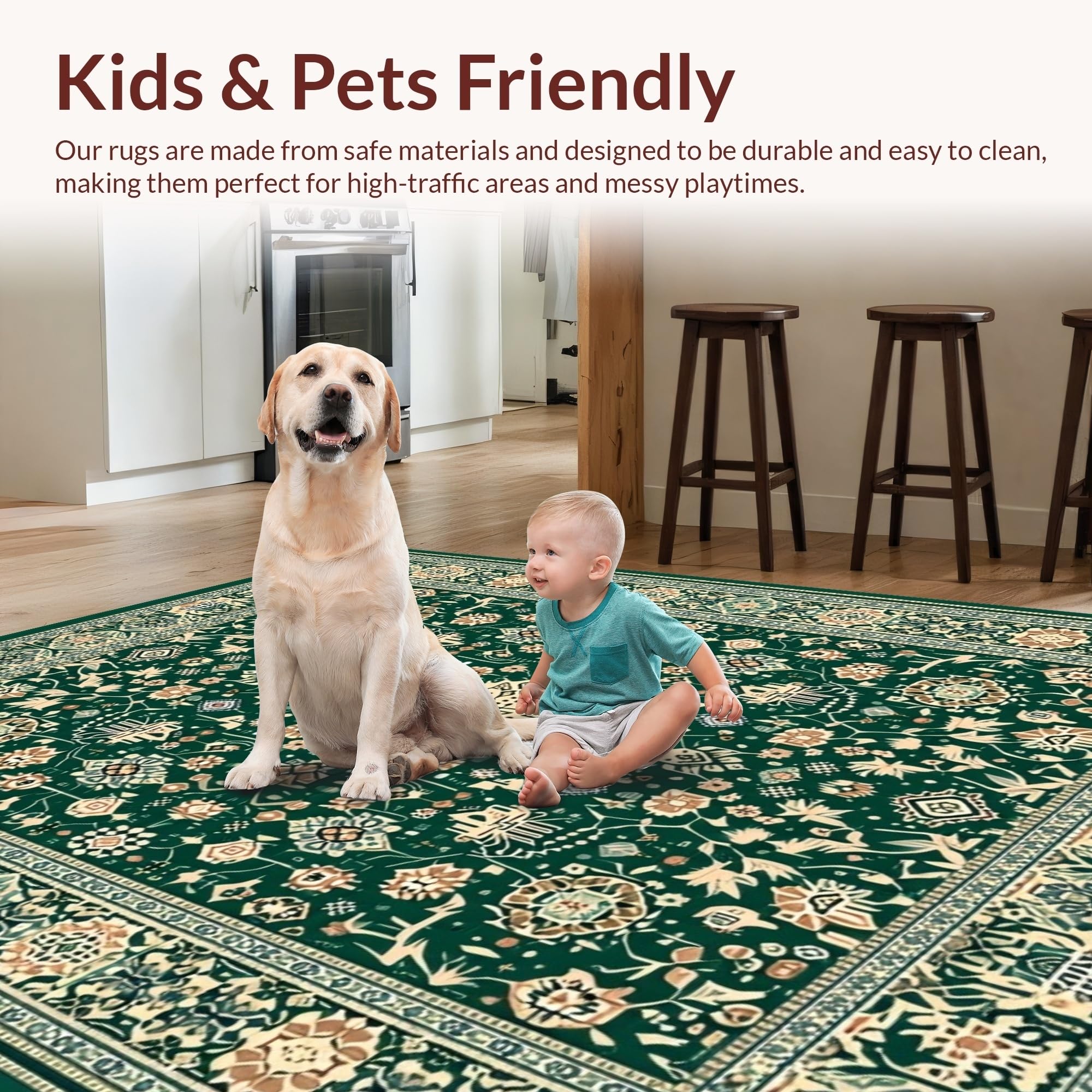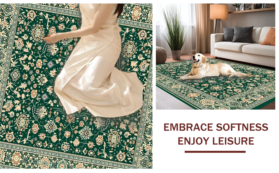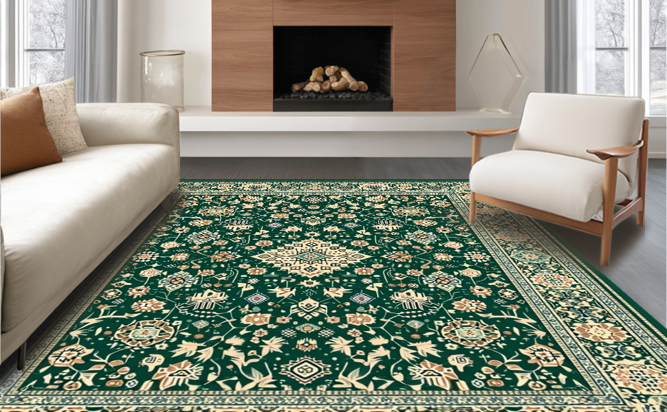Ultra Soft Area Rug, Non Slip, Stain Resistant, Washable Area Rugs for Living Room, Bedroom, Stylish Minimalist Trellis Aesthetic(Green) Overview:
