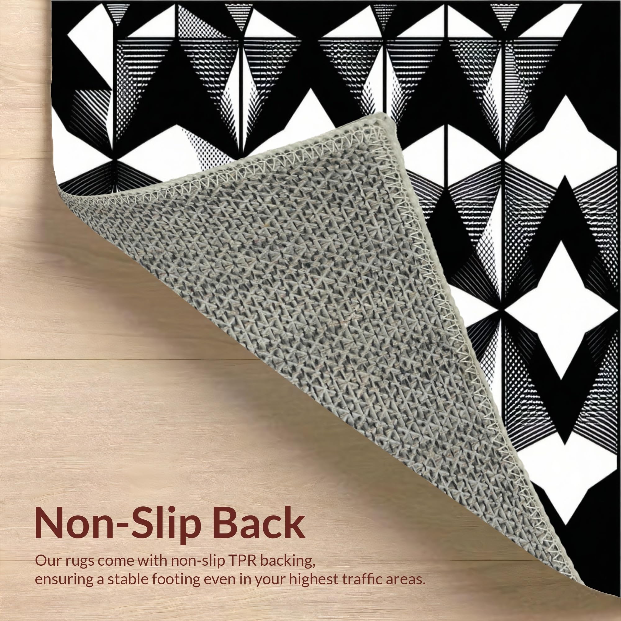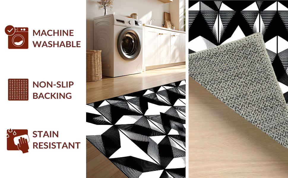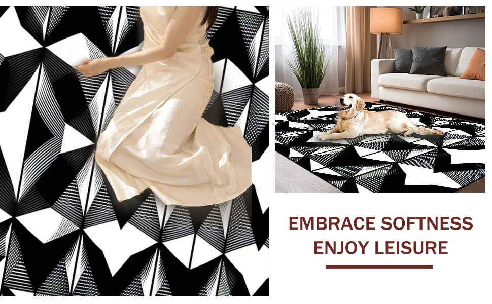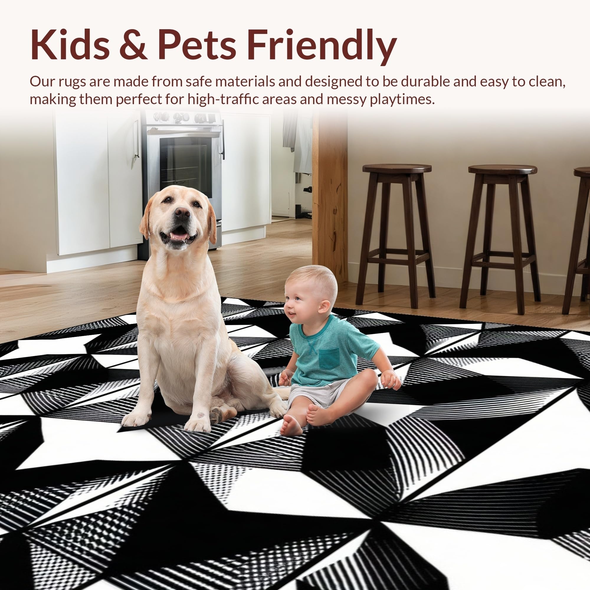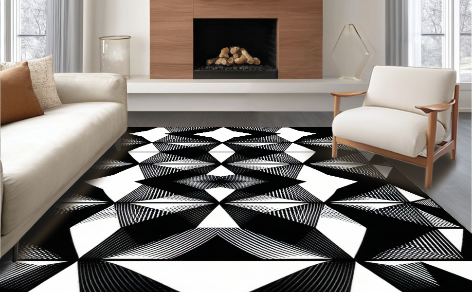 Ultra Soft Area Rug, Non Slip, Stain Resistant, Washable Area Rugs for Living Room, Bedroom, Stylish Modern Abstract Arrangement(Black) Overview: