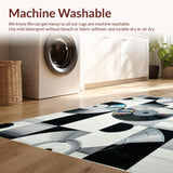 Ultra Soft Area Rug, Non Slip, Stain Resistant, Washable Area Rugs for Living Room, Bedroom, Stylish Modern Disc Aesthetic(Black) Overview: