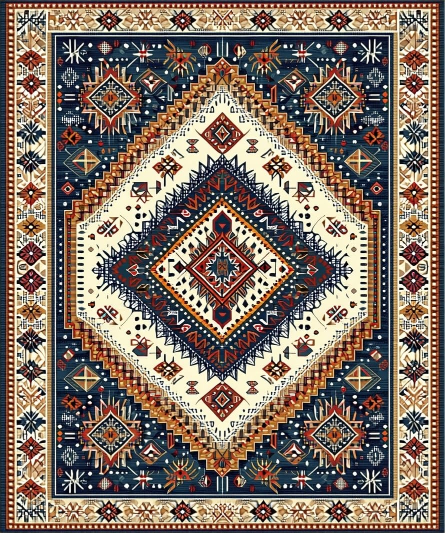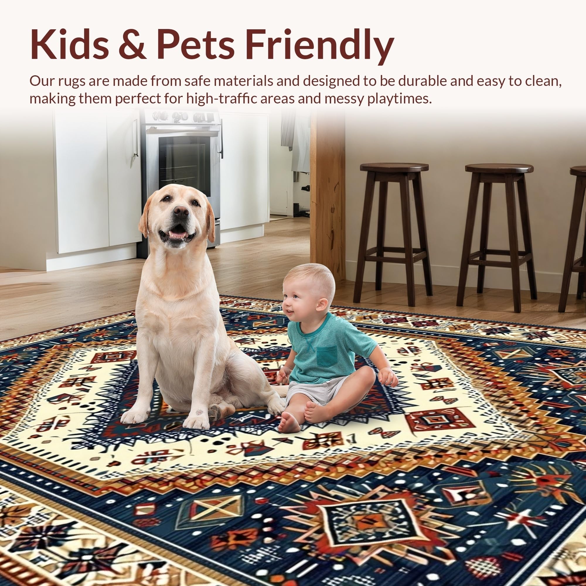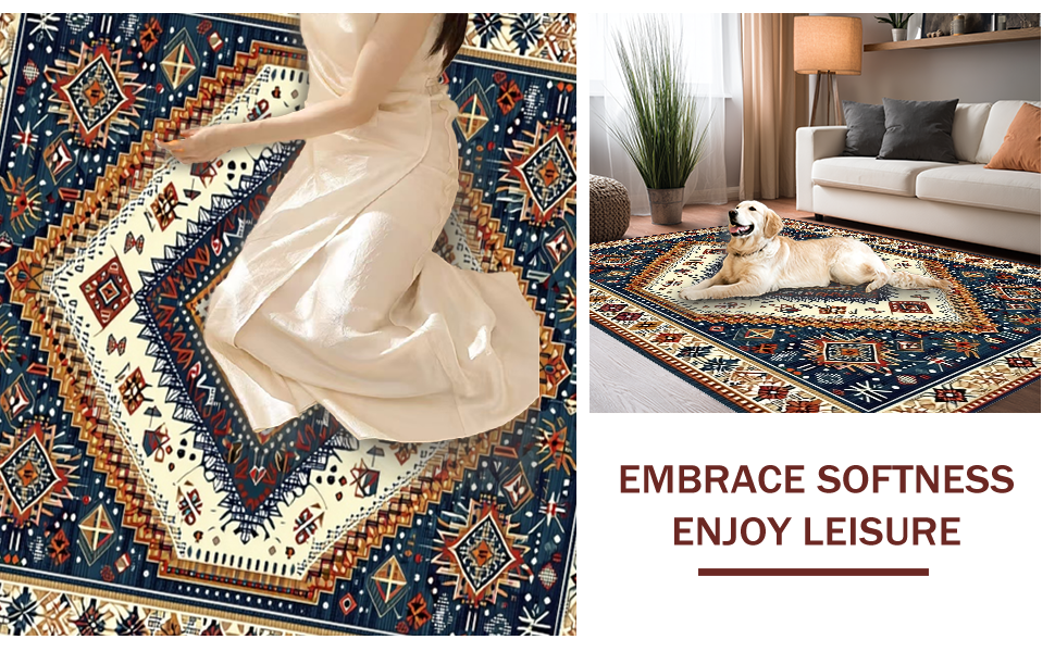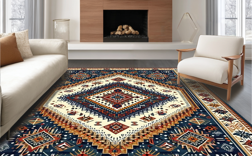 Ultra Soft Area Rug, Non Slip, Stain Resistant, Washable Area Rugs for Living Room, Bedroom, Stylish Modern Patterned Composition(Blue) Overview: