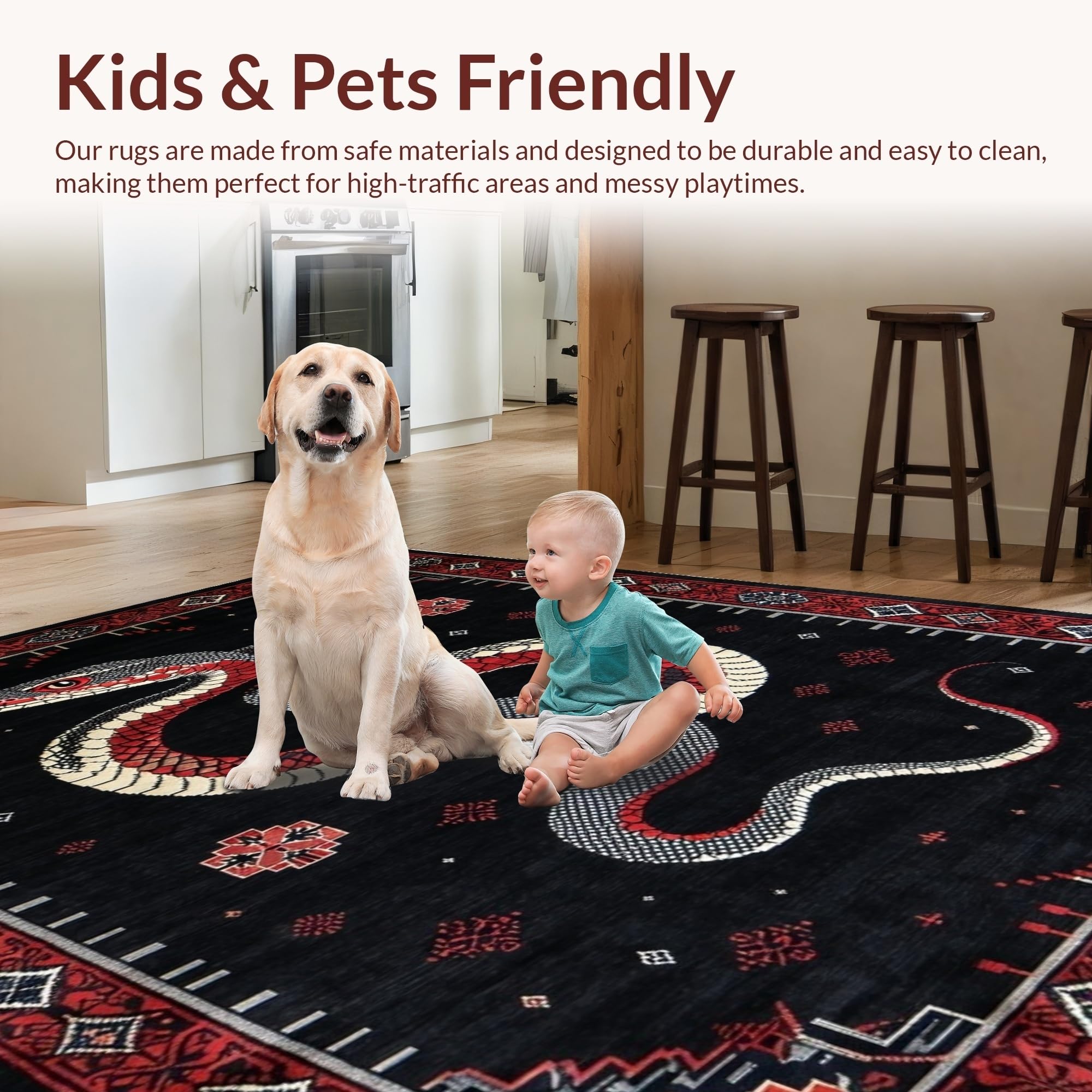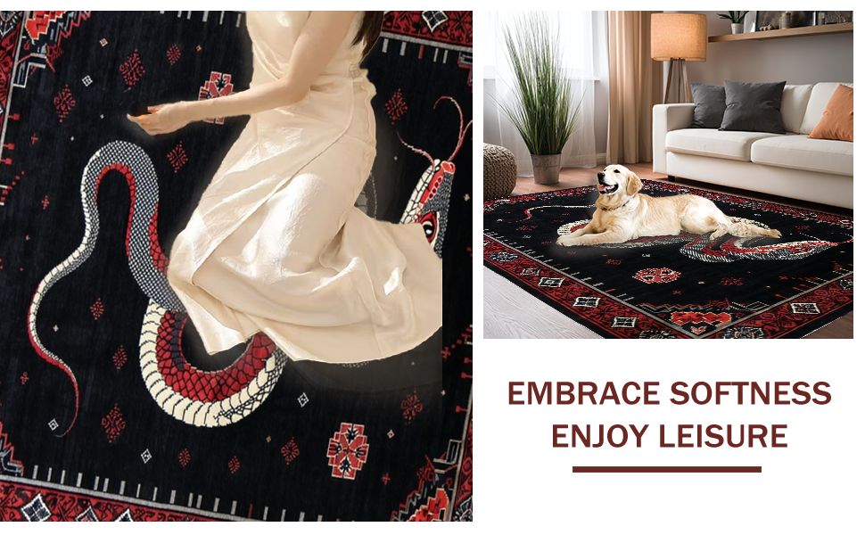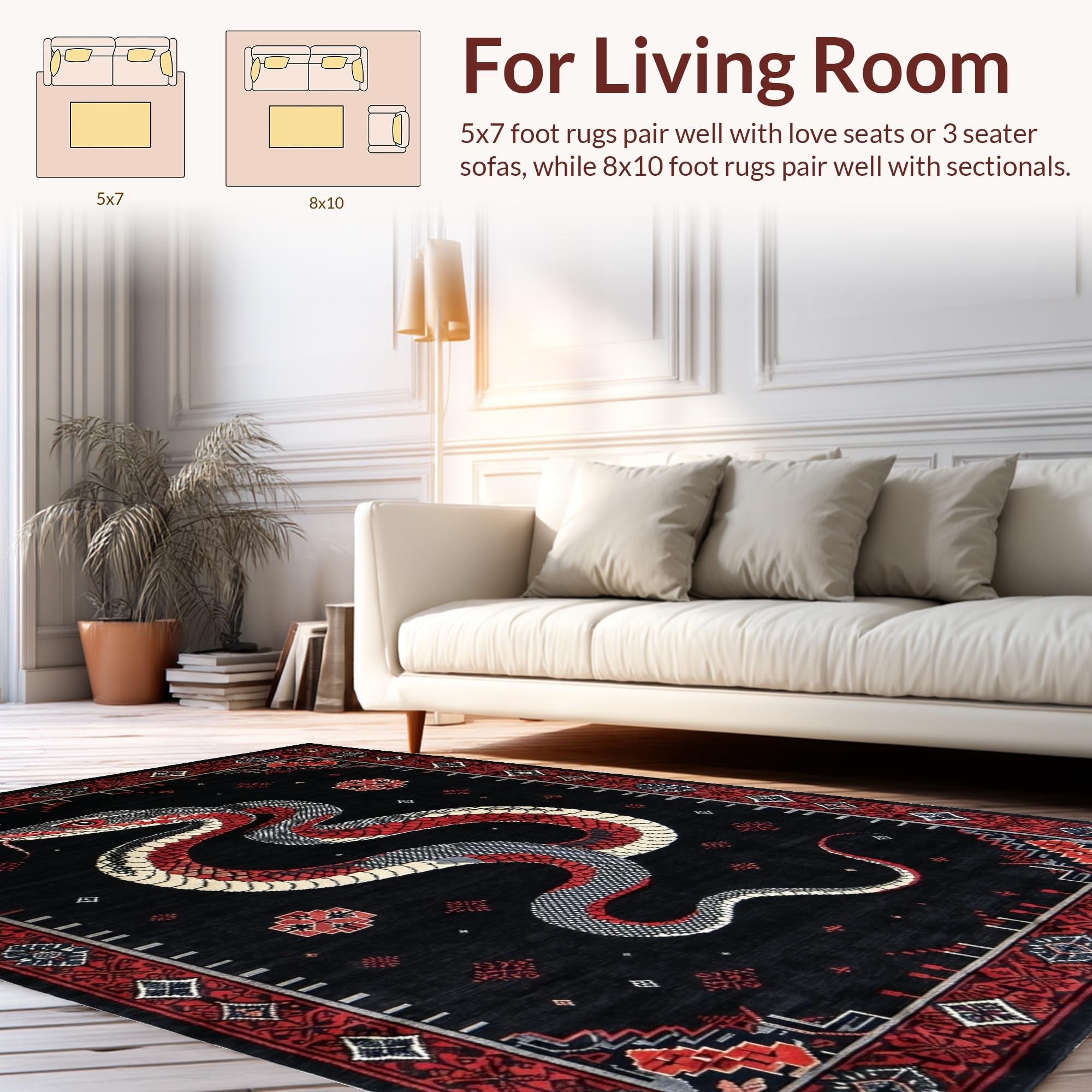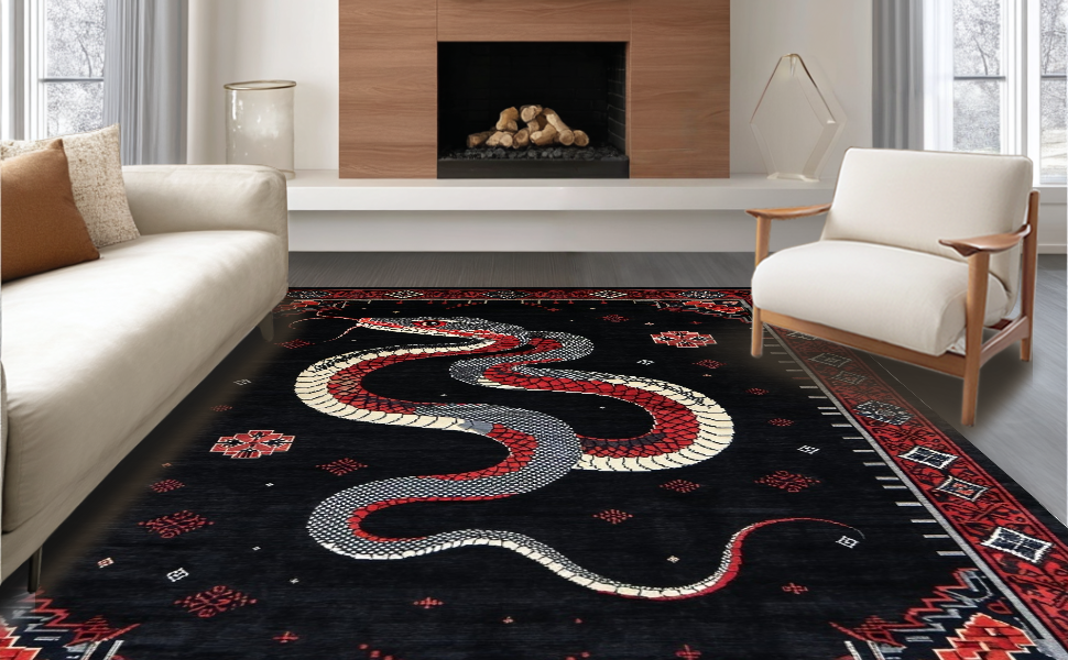 Ultra Soft Area Rug, Non Slip, Stain Resistant, Washable Area Rugs for Living Room, Bedroom, Stylish Modern Snake Graphic(Black) Overview: